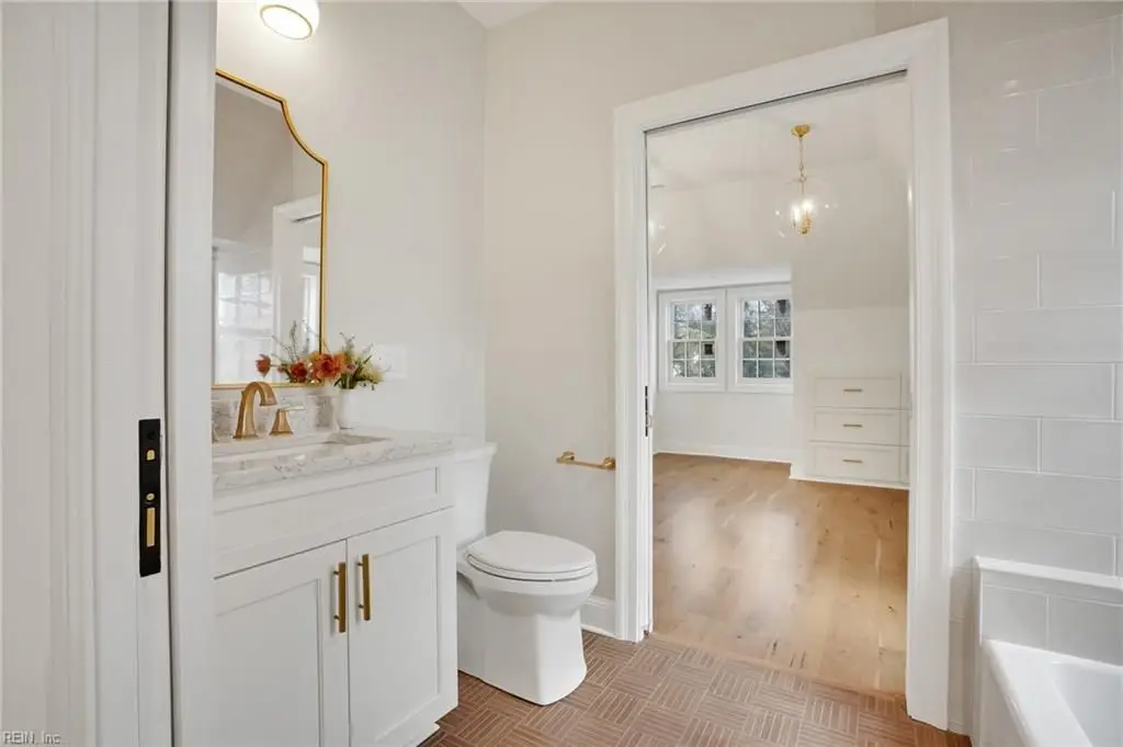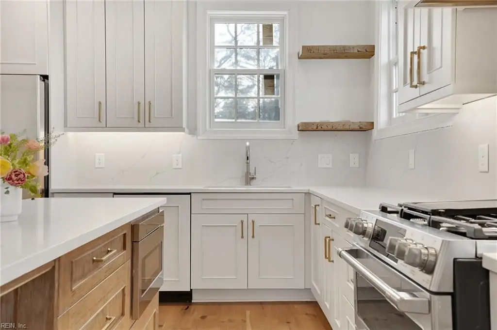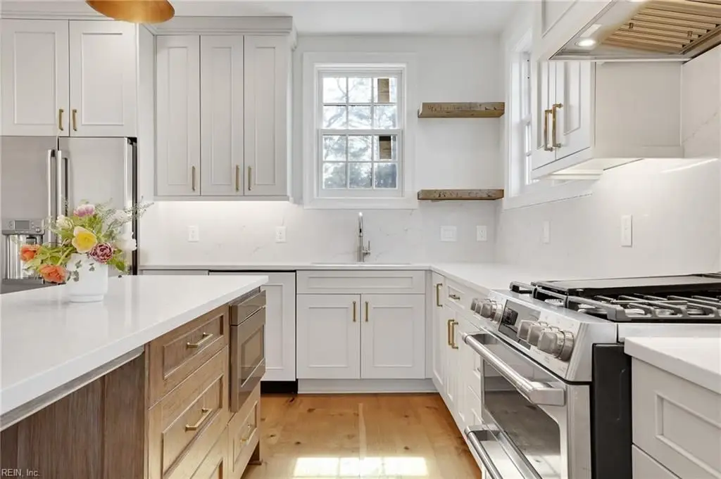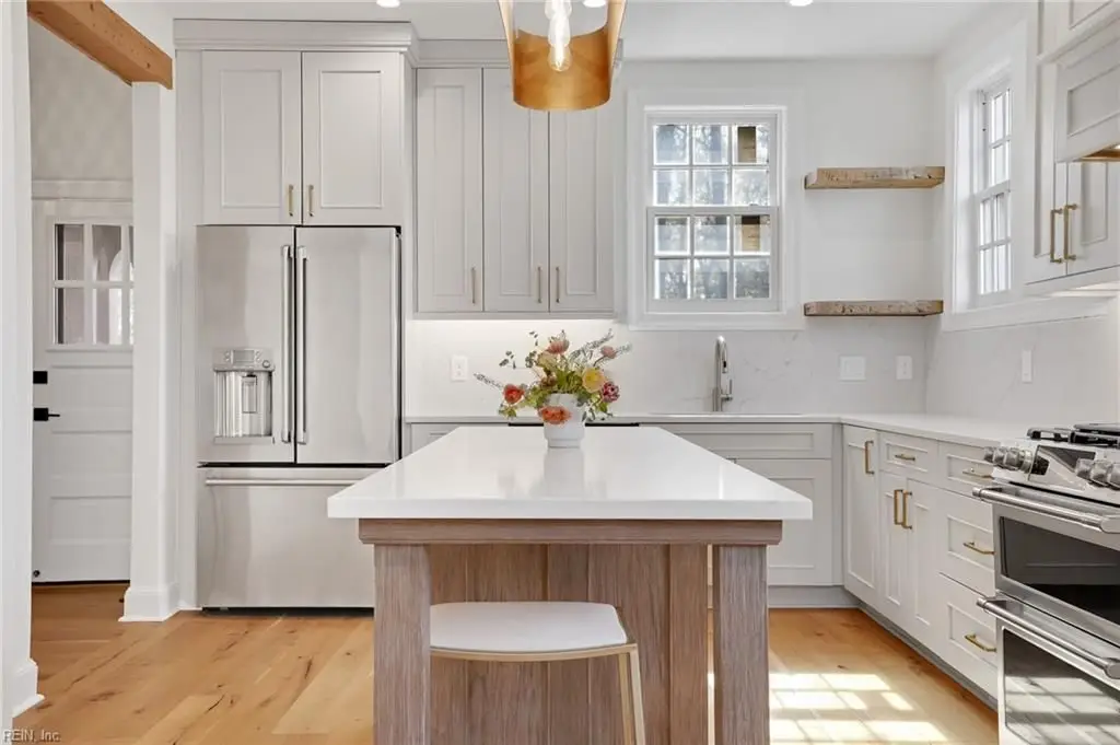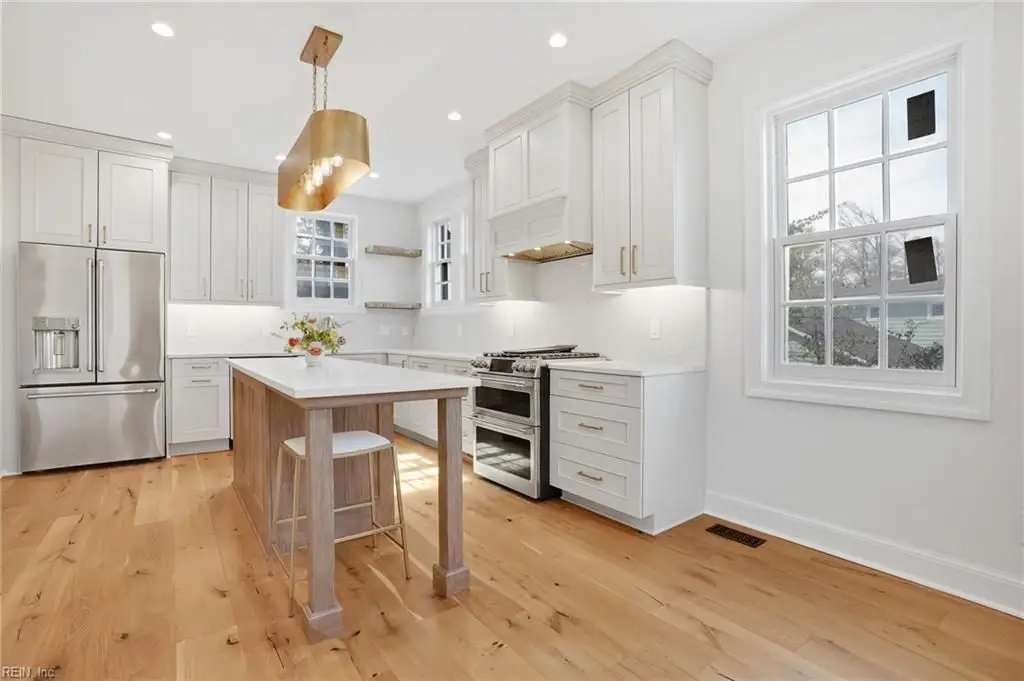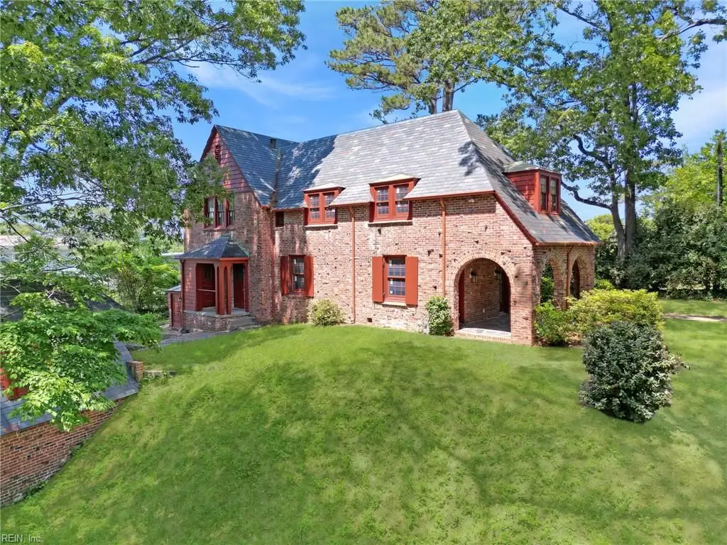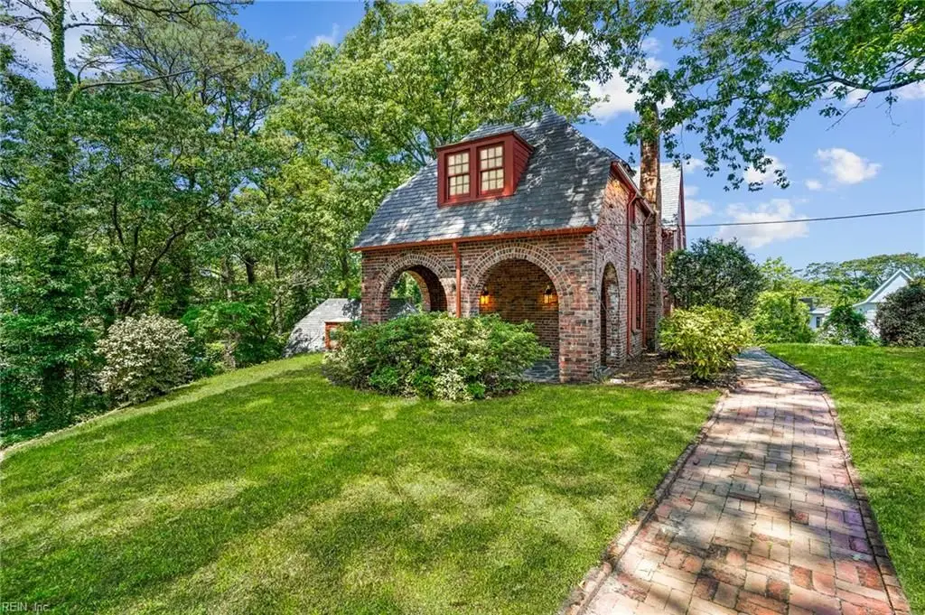 Own a piece of Virginia Beach history! The iconic red brick house on the hill has been fully renovated and restored blending modern luxury with historic charm. Now selling the main house only which is 3 bedrooms and 2.5 bathrooms with an option to purchase adjacent lot with garage apt. Perched on one of the highest elevations in Bay Colony, this home is a classic focal point while offering tons of privacy and natural light. Complete restoration of both interiors was finished in 2023 and includes a timeless design with all new appliances, custom cabinets, quartz countertops, wide plank wood floors throughout, wood accent beams on ceiling and mantle, custom spiral wood staircase, all new bathrooms, lighting, door hardware, all new plumbing and electrical, new windows, HVAC, tankless water heater, finished basement w/ laundry and quartz countertop plus sink combined with the gorgeous original brickwork on siding and 2 interior fireplaces, slate roofs and copper flashing. Just WOW!