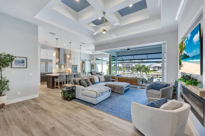 Nestled in the picturesque city of Punta Gorda, this waterfront haven offers direct Gulf access and a lifestyle of unparalleled luxury. Imagine stepping into a world where the views and outdoor spaces effortlessly blend into one stunning panorama: a saltwater pool and spa adorned with handcrafted marble pavers invites you to unwind, while an expansive outdoor kitchen sets the stage for al fresco dining under the stars. Enjoy effortless peace of mind with hurricane impact resistance windows, a remote-controlled hurricane protection screens and no-see-um screens, all while savoring the canal view. A 13,500 lb. boat lift beckons boating enthusiasts, with a boat available for purchase separately for those eager to explore the sparkling waters. Inside, discover the elegance of Thermador appliances in a kitchen that boasts a grand island, perfect for family gatherings and entertaining. Marvel at the soaring ceilings and the modern allure of porcelain tile throughout, complemented by an electric fireplace that exudes warmth and ambiance on those cool nights. The home's design features 10' zero corner pocket sliders, seamlessly blending the indoors with the outdoors. Conveniently located just minutes from downtown Punta Gorda and Fisherman's Village, with easy access to an array of amenities, and only 10 minutes by boat to the beautiful Charlotte Harbor, this property is a sanctuary of style and convenience, offering a slice of paradise tailored to your dreams.
