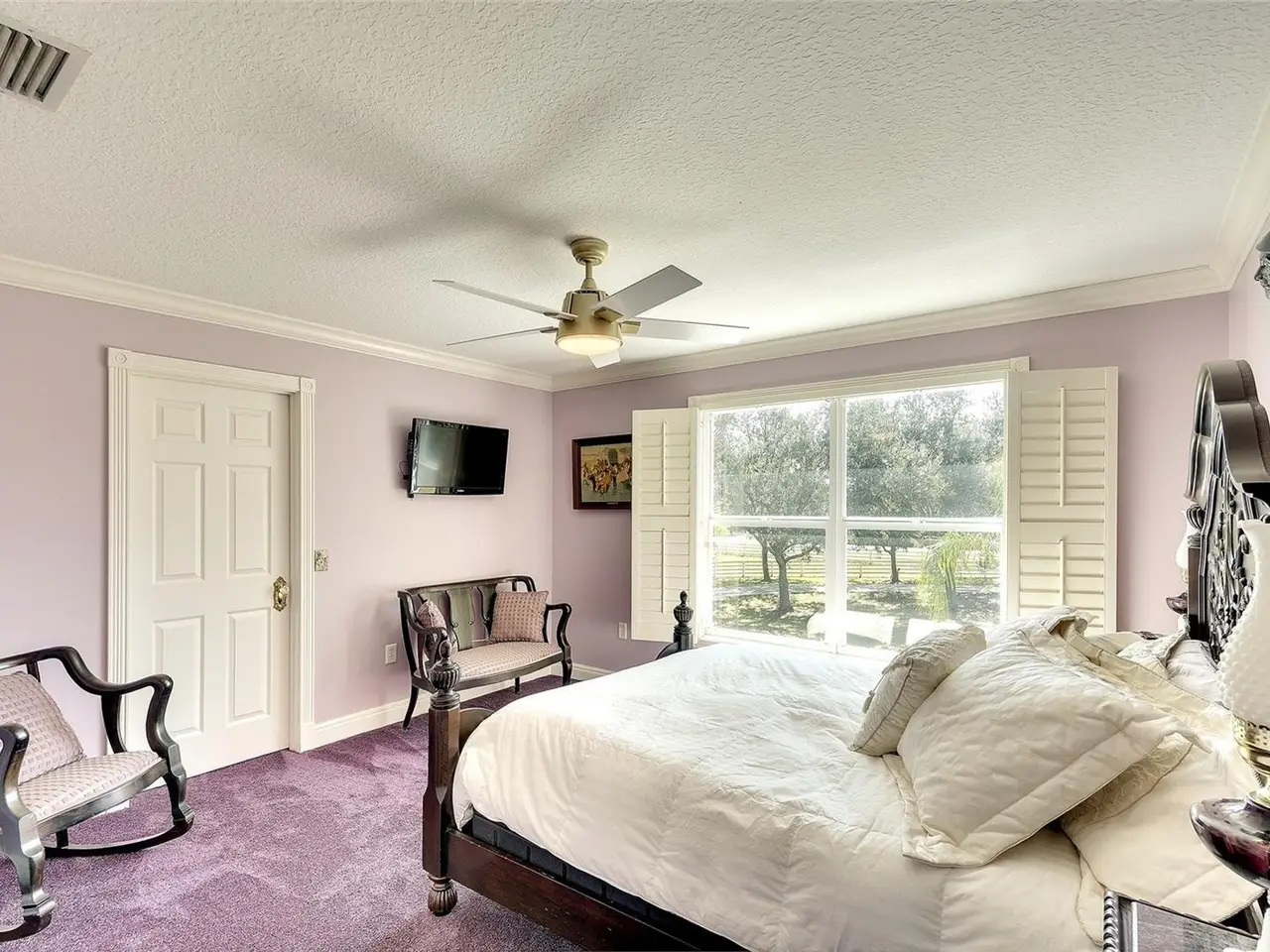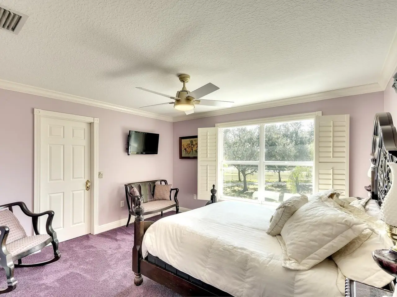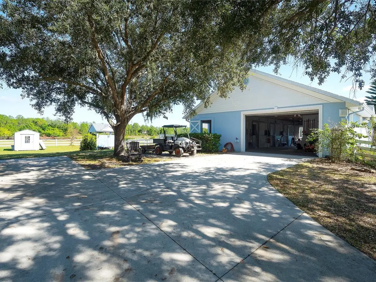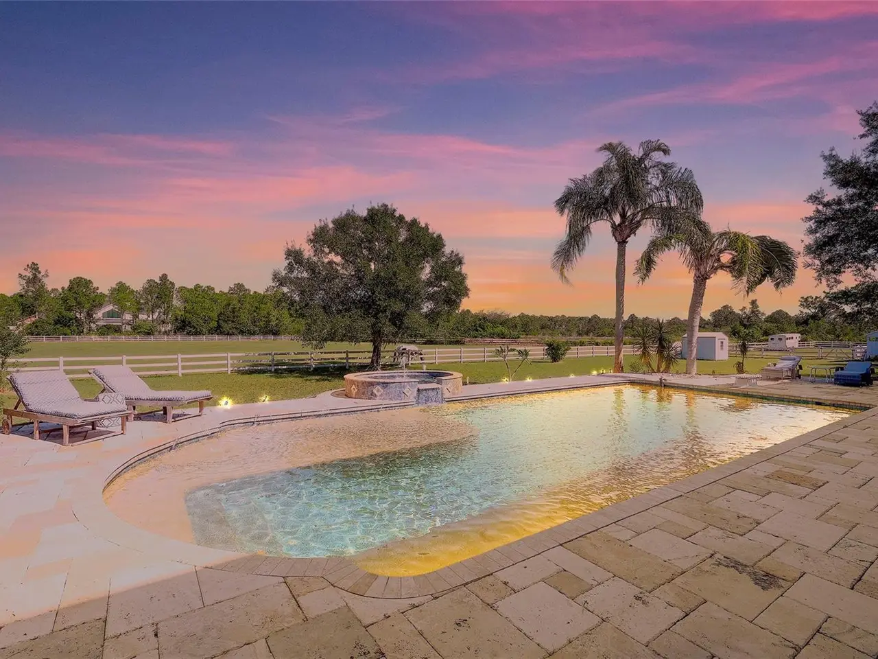 Gated and completely fenced, this elegant traditional home is in the highly sought after neighborhood of Foxwood in Panther Ridge. Its storm ready and perfectly positioned in Zone X, sitting high and dry, with no flood insurance required. Adding to your peace of mind, the house and barn have new roofs in 2025, each with a transferrable warranty. This country estate offers enduring craftmanship. Arrive through the automatic gate to the oak tree lined driveway. The view of pasture and block barn on right and pond on left make for beautiful curbside appeal. Step onto front porch and enter the marble foyer. Once inside you will find an impressive gourmet kitchen with cherry cabinetry, Cambria quarts, a 6 burned DACOR gas range, Sub-Zero refrigerator, Miele dishwasher-ideal for those who love to cook. The kitchen is light and airy with breakfast bar and plenty of room for table to view the saltwater pool with Baha shelf. The first-floor primary suite features a gas fireplace, spa-inspired bath with Mr. Steam shower and brass clawfoot tub, and custom closets with locking cabinetry. The great room has 20-foot ceilings, gas fireplace, marble floors and poplar built-ins open to a screened lanai with an automatic shade for effortless indoor-outdoor living. Additional rooms on first floor are spacious dining room, office, and private bedroom with ensuite bath. Featured upstairs is a large bonus room with bar connecting to a TREX deck overlooking pool with generous travertine surround. Two additional bedrooms and bathroom complete the second floor. The block barn designed with 4 stalls, individual turnouts, automatic fly system, fans, tack room, feed room, wash racks, and RV outlets. The barn offers infinite flexibility and could be converted into a guest house, workshop, or space for a car collector. Both the home and barn feature Miami-Dade hurricane rated windows and doors. For year-round comfort and security, a 30KW Generac generator and Martin garage doors have been installed. It is important to note that Panther Ridge offers miles of groomed private trails with bridges, oak hammocks, pine forests. Horseback riding, hiking and biking are allowed with no motorized vehicles to disturb the beauty of Mother Nature. Panther Ridge is a prime location for the Florida country living lifestyle. The serene setting and proximity to hospitals, schools, shopping, sports parks and only 8 miles from I-75. Bordering on the West side of the community is The Concession Golf Club designed by Jack Nicklaus and Gary Player. Don't miss the opportunity to live and enjoy this home in a unique setting. Places like this are not being built with everything this extraordinary home and property have to offer.