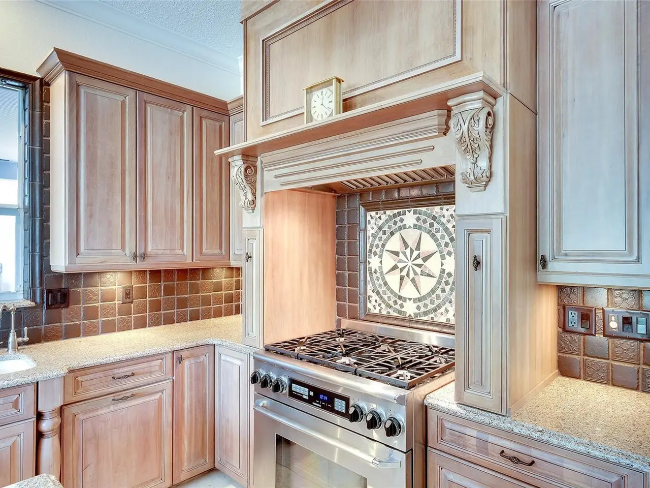 Gourmet kitchen with cherry cabinetry