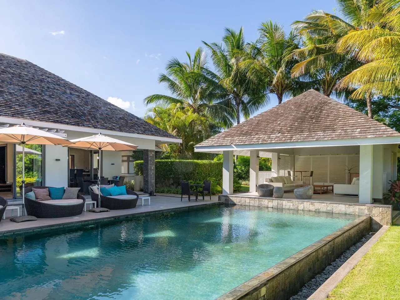 Nestled in the heart of the prestigious Lunea Neighbourhood within Anahita, this expansive 544m² villa offers a perfect blend of space, luxury, and privacy. Designed with both comfort and style in mind, the villa boasts 6 spacious bedrooms, creating a peaceful retreat that feels like home. The villa's tastefully designed interiors feature an open-concept layout that flows seamlessly, making it perfect for both relaxation and entertaining. Large windows invite natural light, while the contemporary design enhances the overall sense of tranquility. Step outside to discover a stunning overflow pool, ideal for leisurely swims, set against a lush, well-maintained garden for added privacy and charm. As a resident of Anahita, you'll have full access to the resort's 5-star services and amenities, including gourmet restaurants and chic bars, state-of-the-art tennis courts, and a well-equipped fitness center. The resort also offers round-the-clock security and concierge services, ensuring comfort and peace of mind. Buyers will enjoy permanent residency in Mauritius upon purchase, offering the ultimate combination of luxury living and long-term stability in one of the most sought-after destinations in the Indian Ocean. Additionally, purchasers will receive 2 lifetime memberships to the renowned Anahita Golf Club, providing exclusive access to world-class golf facilities, along with 2 golf carts for added convenience. Plus, you’ll benefit from private access to the secluded beach on Île aux Cerfs, elevating your lifestyle to a level of exclusivity few can experience. Please note that furniture is not included in the sales price.