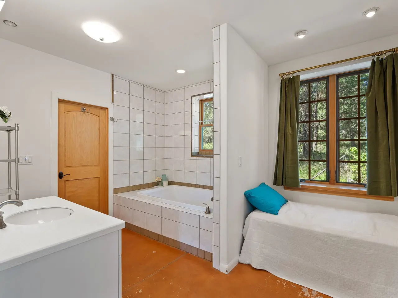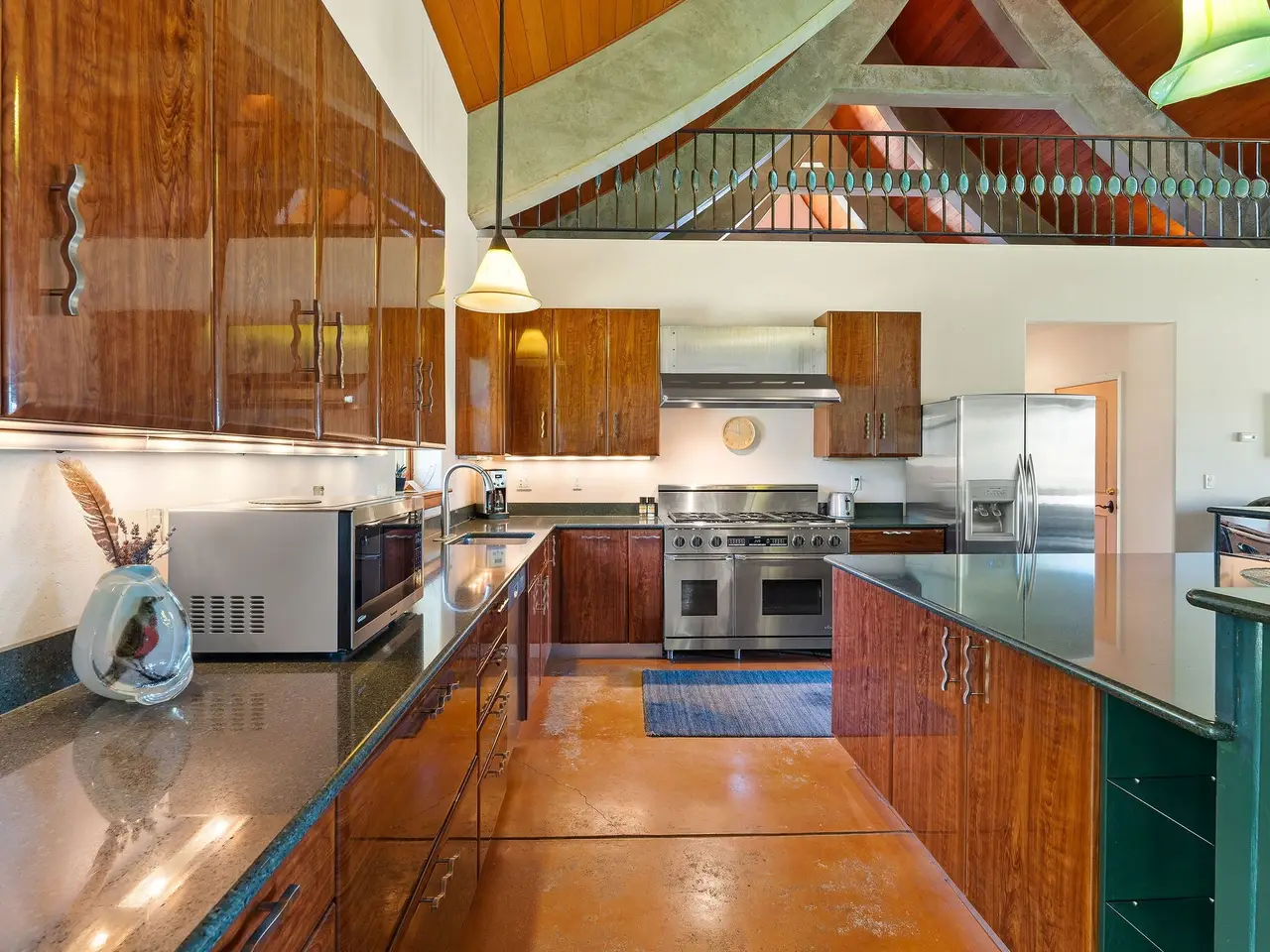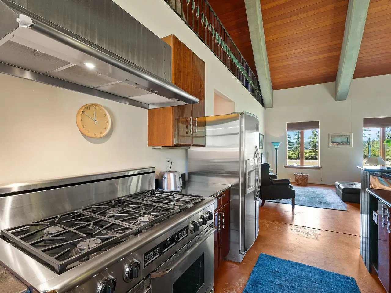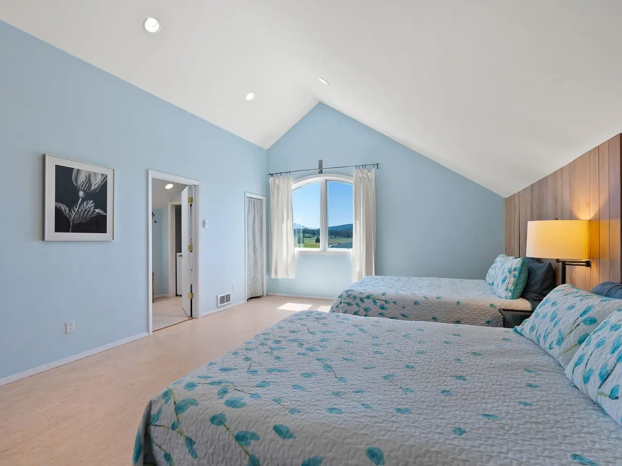 This stunning concrete tilt-up home is set on a breathtaking 20-acre meadow property, offering a serene and tranquil atmosphere just minutes from downtown Bigfork. The exceptional architectural design features magnificent arched concrete beams that support the unique structure. Inside, the spacious great room includes three luxurious bedroom suites and two distinctive lofts, all showcasing spectacular views of the surrounding meadow and mountain range. A guest suite above the garage adds a fourth bedroom, complete with a full bath, mini kitchen and gas fireplace. Additional rooms on the ground floor provide versatile options for various uses. The property also boasts a fully functional 2,120-square-foot workshop garage, currently serving as a working artist studio. This one-of-a-kind home is truly a masterpiece.