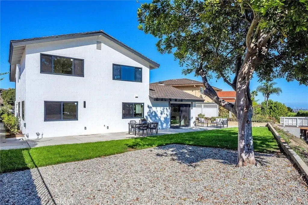 Welcome to this beautifully updated & remodeled 4-bedroom, 3-bathroom home, spanning approximately 2,450 square feet on a generous 7,481-square-foot lot with one bedroom and bathroom located on the first floor. Thoughtfully transformed from its original state, this home has been upgraded with modern, high-end finishes, while maintaining an inviting, timeless appeal. The open-concept design downstairs seamlessly connects the living, dining, & kitchen spaces, making it perfect for both entertaining & family living. Upstairs, the enlarged primary bath offers a spa-like retreat, complete with luxurious finishes & a modern touch. Nestled in a prestigious, peaceful cul-de-sac within the highly sought-after Rancho Palos Verdes neighborhood, this home is part of one of the top school districts in the nation, offering the best in education & community. The home features new 6" luxury Bologna vinyl plank flooring, oak & maple cabinetry, Quartz Koville Calacatta Serene countertops that bring a sleek, contemporary style throughout. A brand-new air conditioning & heating system ensures optimal comfort year-round, while the upgraded electrical panel & double-pane windows offer enhanced energy efficiency. Kohler fixtures add a touch of elegance to the kitchen, and sleek black fixtures enhance the bathrooms, complemented by dimmable LED vanity mirrors with an anti-fog feature. The stunning new cedar front door, concrete roof tiles, and fresh landscaping enhance the home’s curb appeal. A new concrete driveway and patio create a welcoming entry, and the home’s Swiss Coffee interior paint, paired with Pure White exterior paint and black trim, gives it a fresh, modern look. The kitchen is a chef’s dream, featuring brand-new stainless steel appliances, ample counter space, and a layout that's perfect for both cooking and entertaining. The primary suite offers a spacious retreat, complete with an enormous closet with built-in storage. All bathrooms have been meticulously remodeled with high-end finishes, and the home also boasts a beautifully remodeled chimney. Outside, the backyard offers breathtaking views of the Palos Verdes Hill, providing the perfect setting for relaxation or entertaining guests. This home blends modern design with traditional charm, offering a truly remarkable space for its new owner. Don’t miss out on the opportunity to make this stunning property your own!