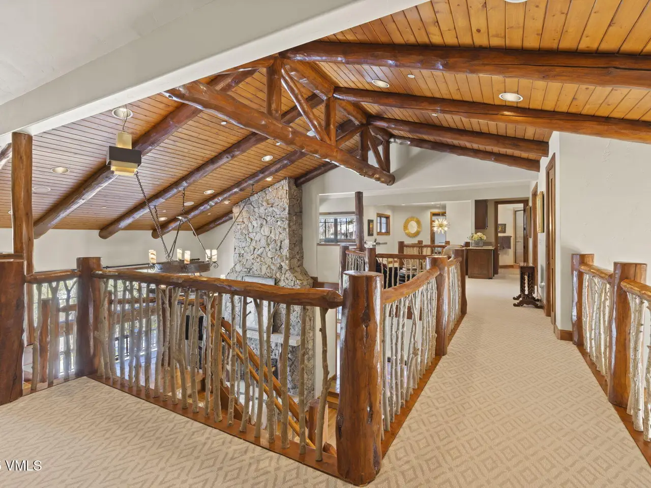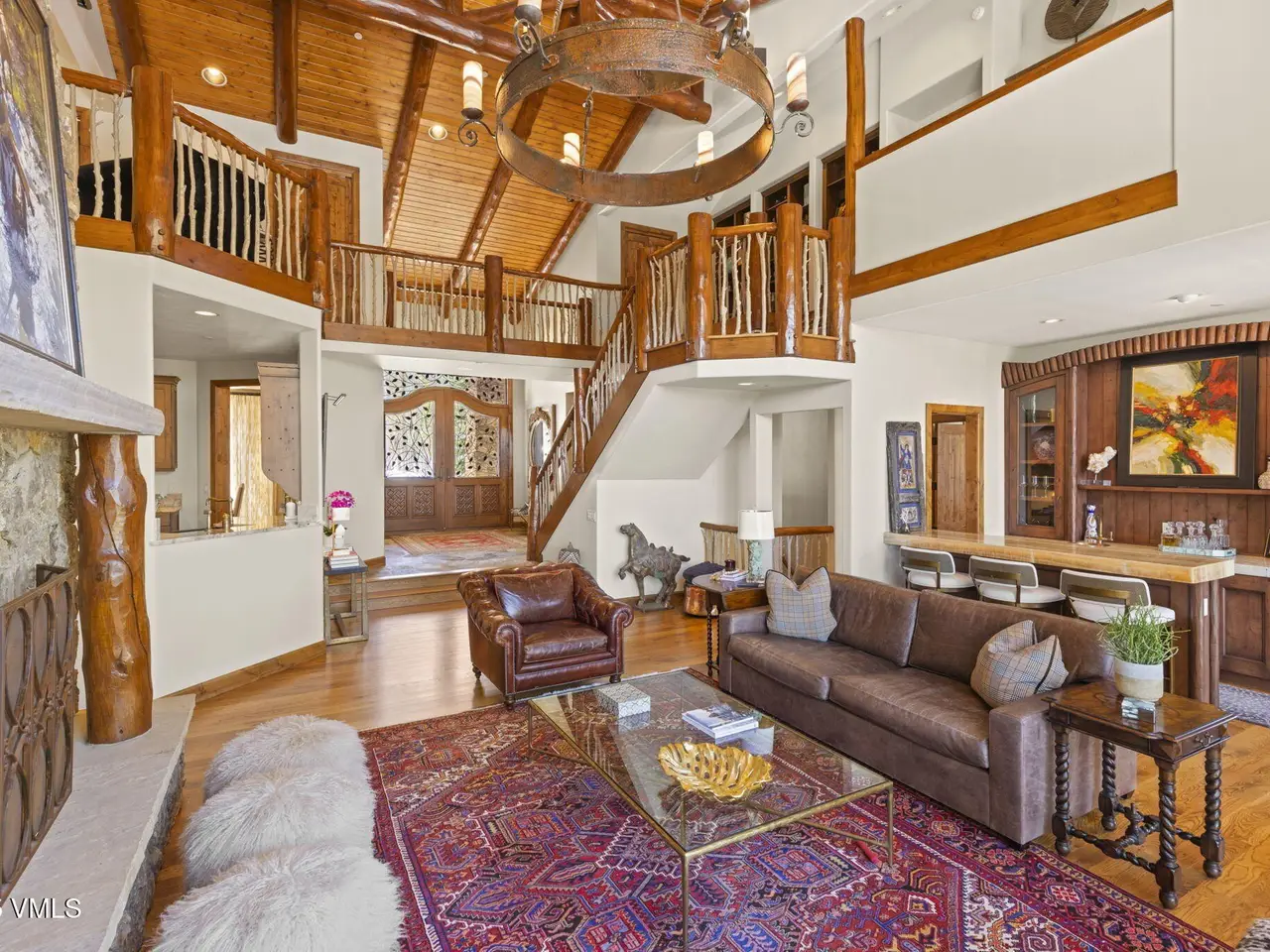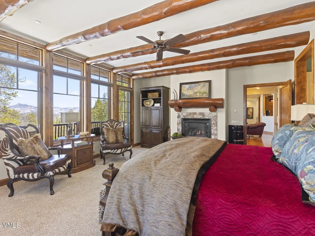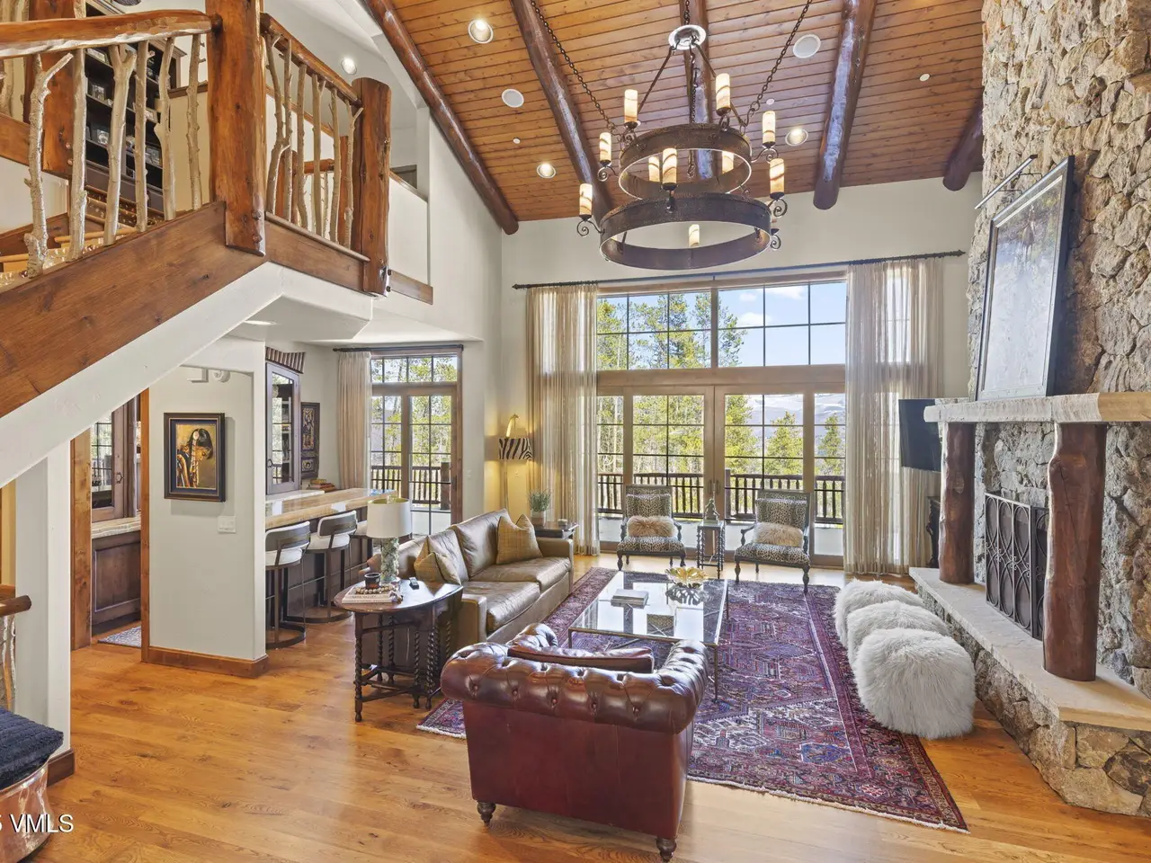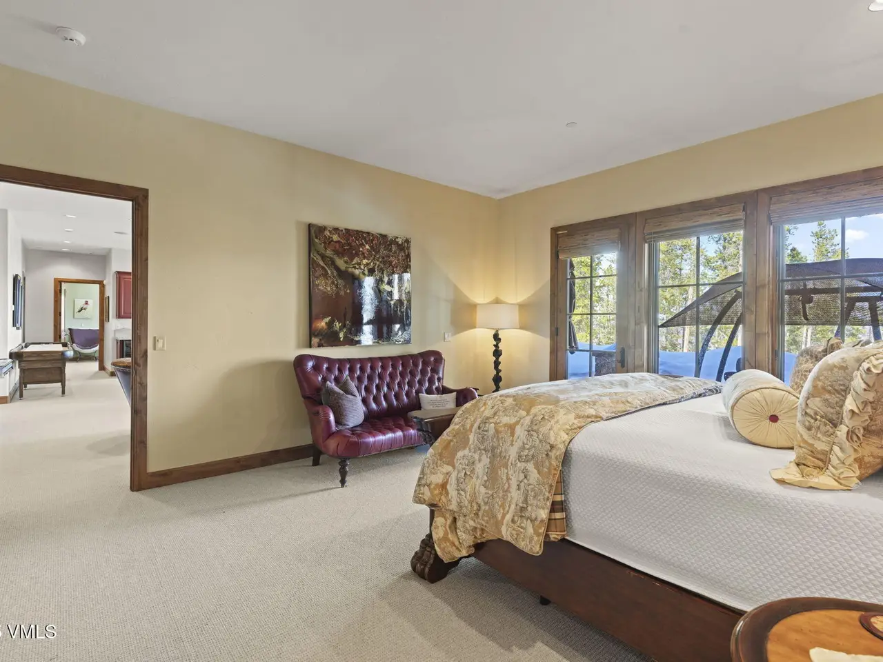 Perched on a premier, elevated site just beyond the gates of The Ranch, this remarkable mountain estate embodies the spirit of Colorado living. Crafted with massive hand-peeled log accents and warm, natural materials throughout, the home blends rustic elegance with thoughtful, sophisticated design. Inside, expansive living spaces are tailored for both grand entertaining and quiet retreat, featuring dedicated areas for movie nights, fitness, soaking under the stars in the outdoor hot tub, game days, billiards and a well appointed wine tasting enclave. The heart of the home is a beautiful chef's kitchen, complete with high-end appliances and an adjacent morning room filled with natural light-the perfect place to start your day. For those who work remotely or need a quiet place to create, there are two private offices. The layout includes two luxurious primary suites, four additional guest suites, and a custom-built bunk room that can comfortably sleep a crowd. Panoramic views stretch out to the Gore Range, completing this one-of-a-kind alpine retreat.