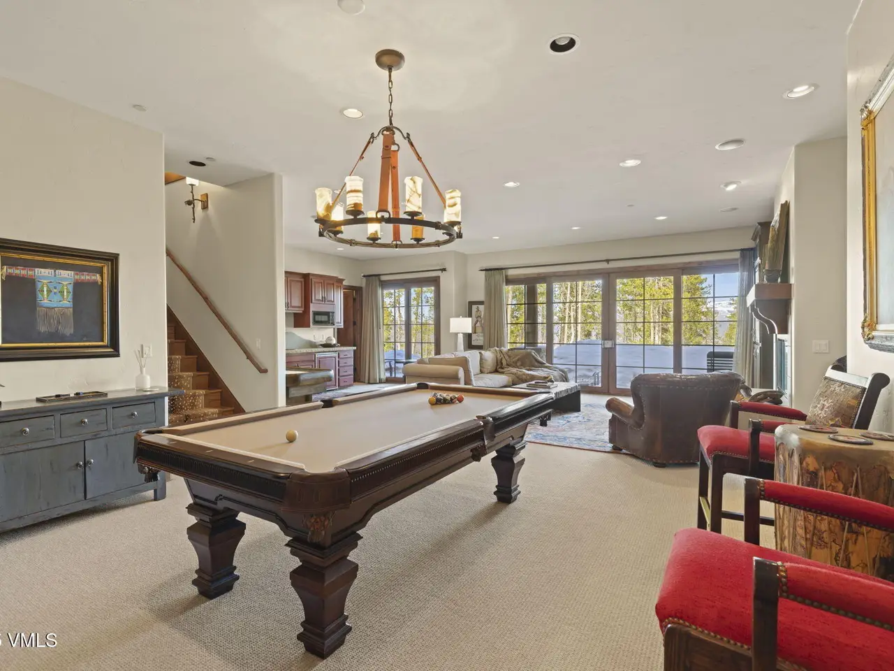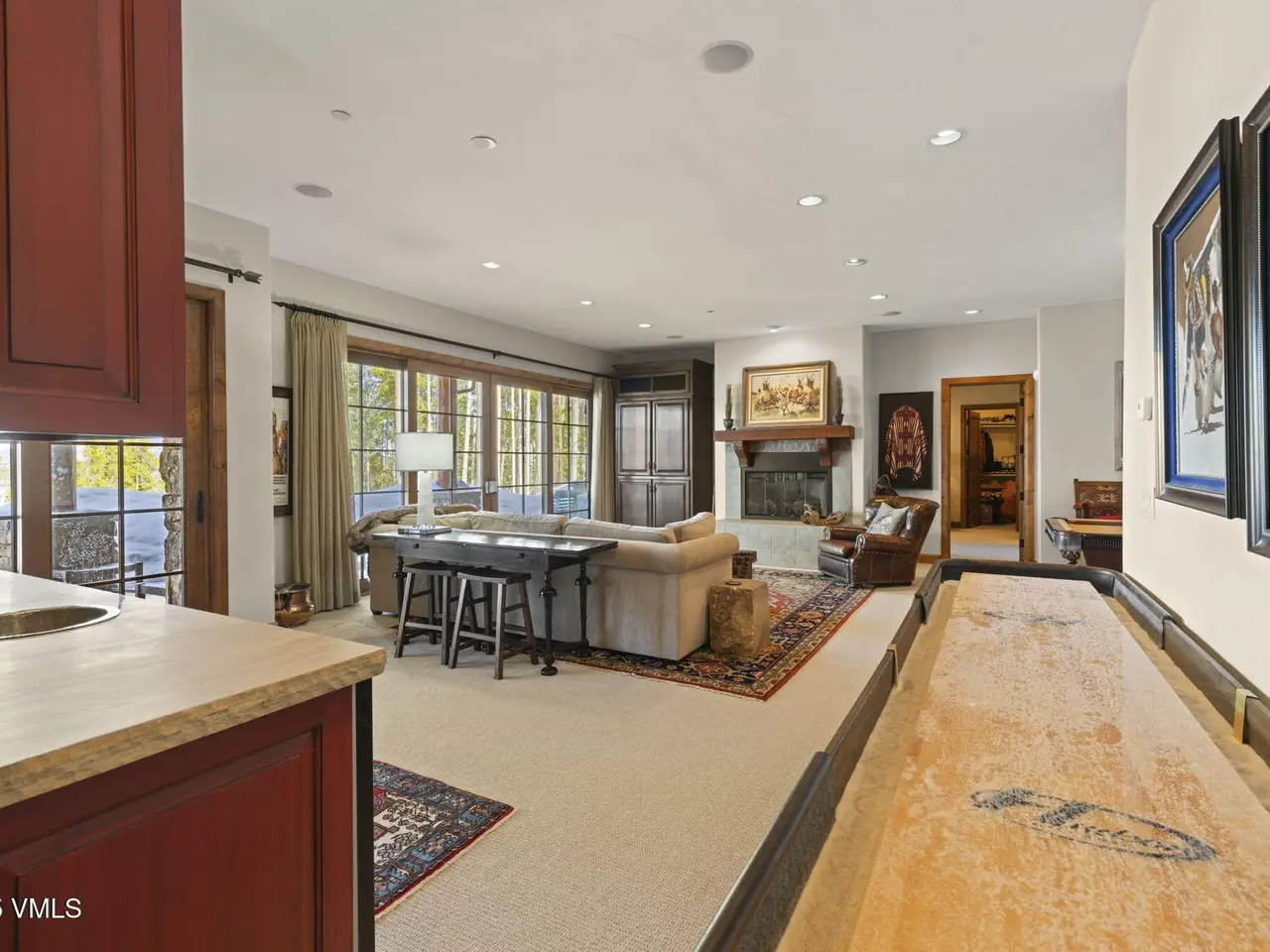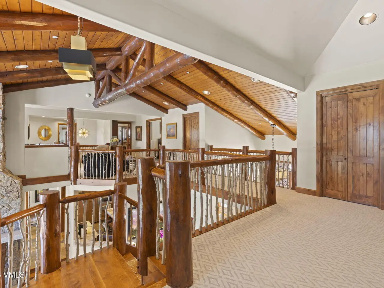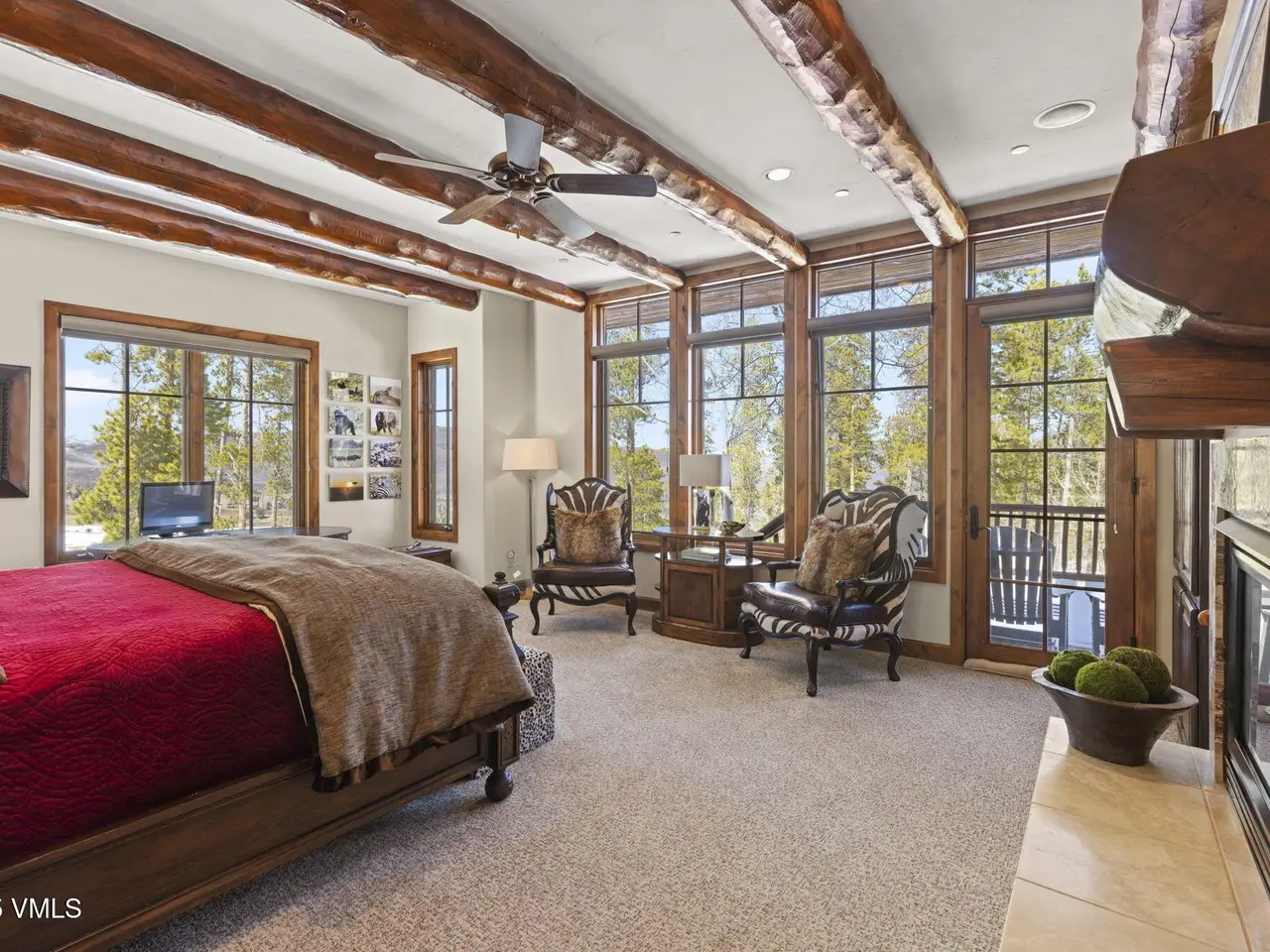 Perched on a premier, elevated site just beyond the gates of The Ranch, this remarkable mountain estate embodies the spirit of Colorado living. Crafted with massive hand-peeled log accents and warm, natural materials throughout, the home blends rustic elegance with thoughtful, sophisticated design. Inside, expansive living spaces are tailored for both grand entertaining and quiet retreat, featuring dedicated areas for movie nights, fitness, soaking under the stars in the outdoor hot tub, game days, billiards and a well appointed wine tasting enclave. The heart of the home is a beautiful chef's kitchen, complete with high-end appliances and an adjacent morning room filled with natural light-the perfect place to start your day. For those who work remotely or need a quiet place to create, there are two private offices. The layout includes two luxurious primary suites, four additional guest suites, and a custom-built bunk room that can comfortably sleep a crowd. Panoramic views stretch out to the Gore Range, completing this one-of-a-kind alpine retreat.