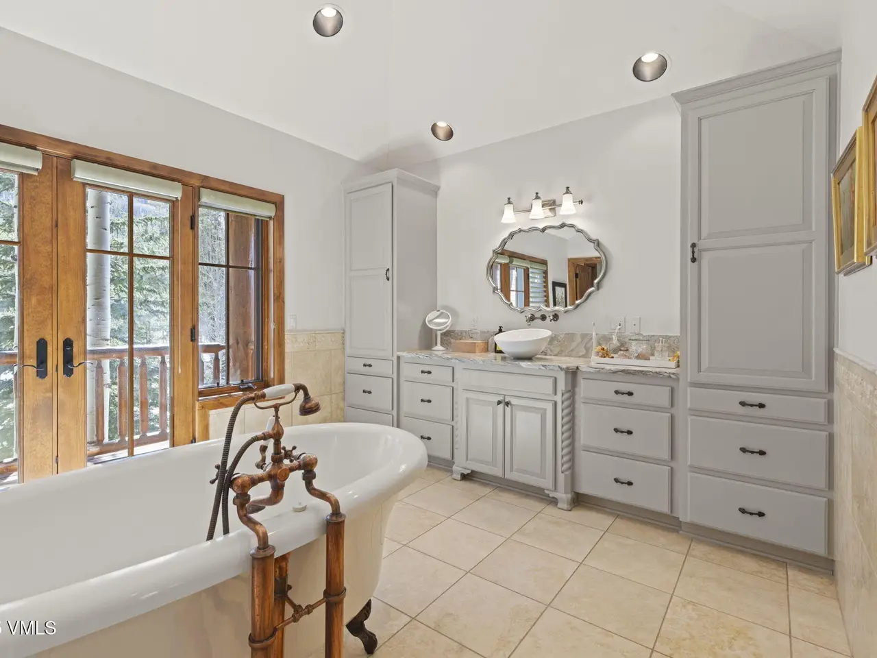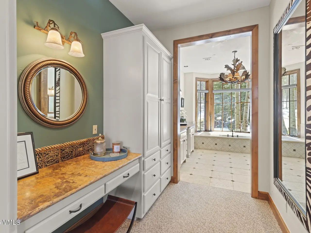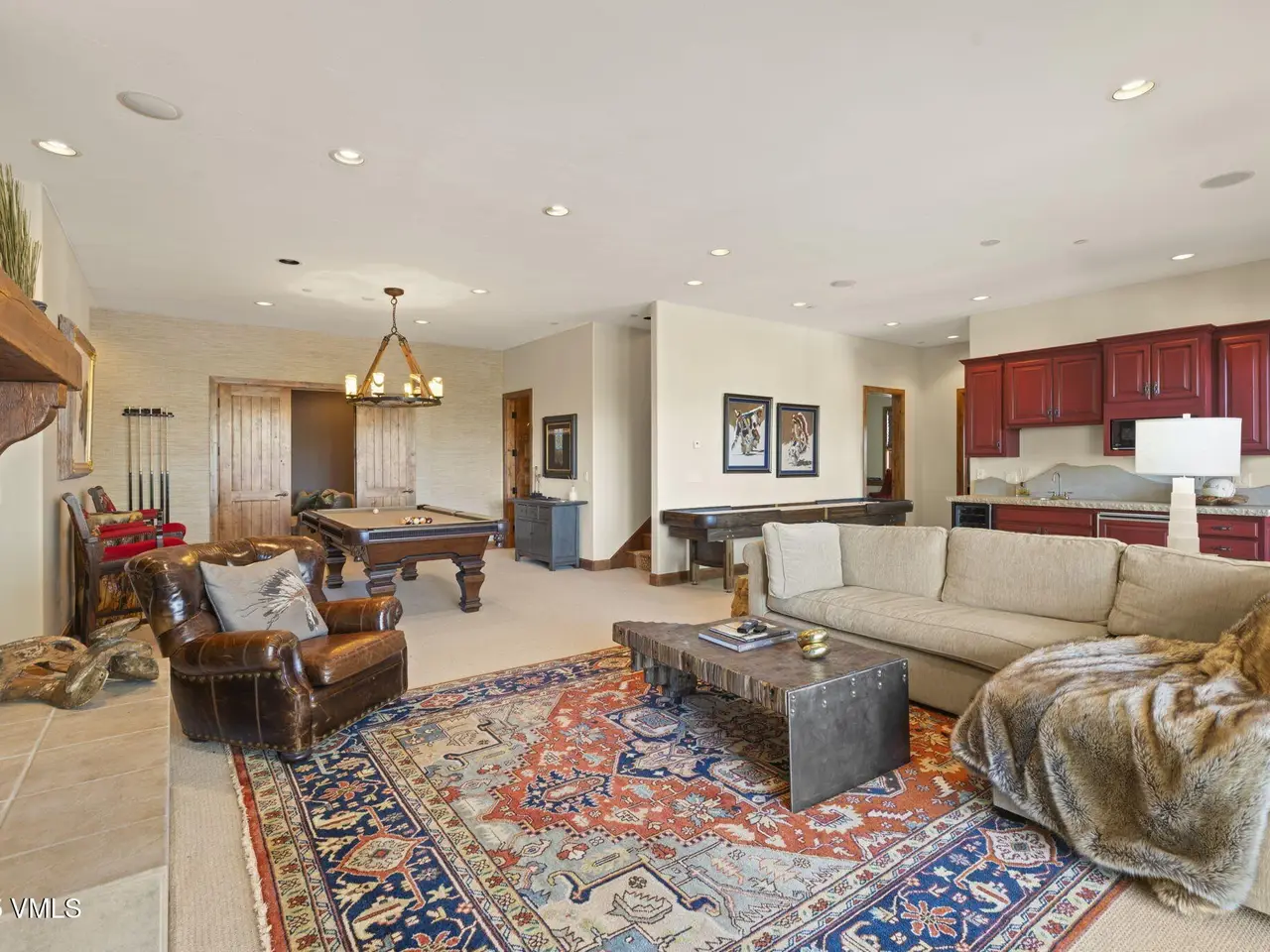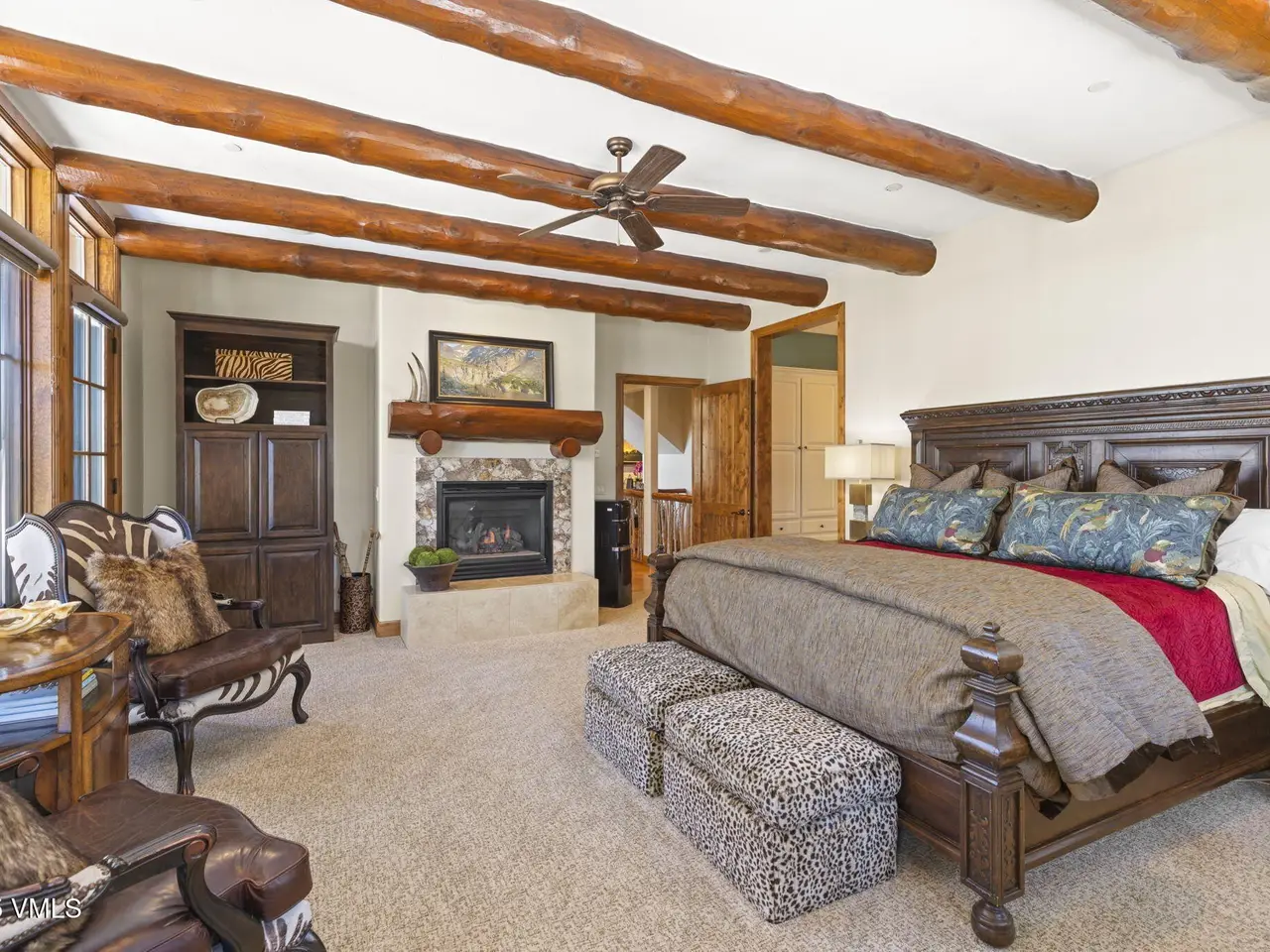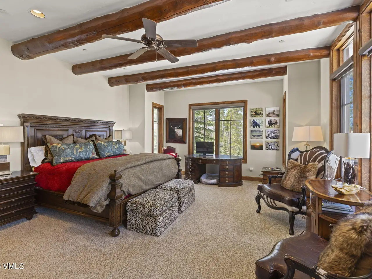 Perched on a premier, elevated site just beyond the gates of The Ranch, this remarkable mountain estate embodies the spirit of Colorado living. Crafted with massive hand-peeled log accents and warm, natural materials throughout, the home blends rustic elegance with thoughtful, sophisticated design. Inside, expansive living spaces are tailored for both grand entertaining and quiet retreat, featuring dedicated areas for movie nights, fitness, soaking under the stars in the outdoor hot tub, game days, billiards and a well appointed wine tasting enclave. The heart of the home is a beautiful chef's kitchen, complete with high-end appliances and an adjacent morning room filled with natural light-the perfect place to start your day. For those who work remotely or need a quiet place to create, there are two private offices. The layout includes two luxurious primary suites, four additional guest suites, and a custom-built bunk room that can comfortably sleep a crowd. Panoramic views stretch out to the Gore Range, completing this one-of-a-kind alpine retreat.