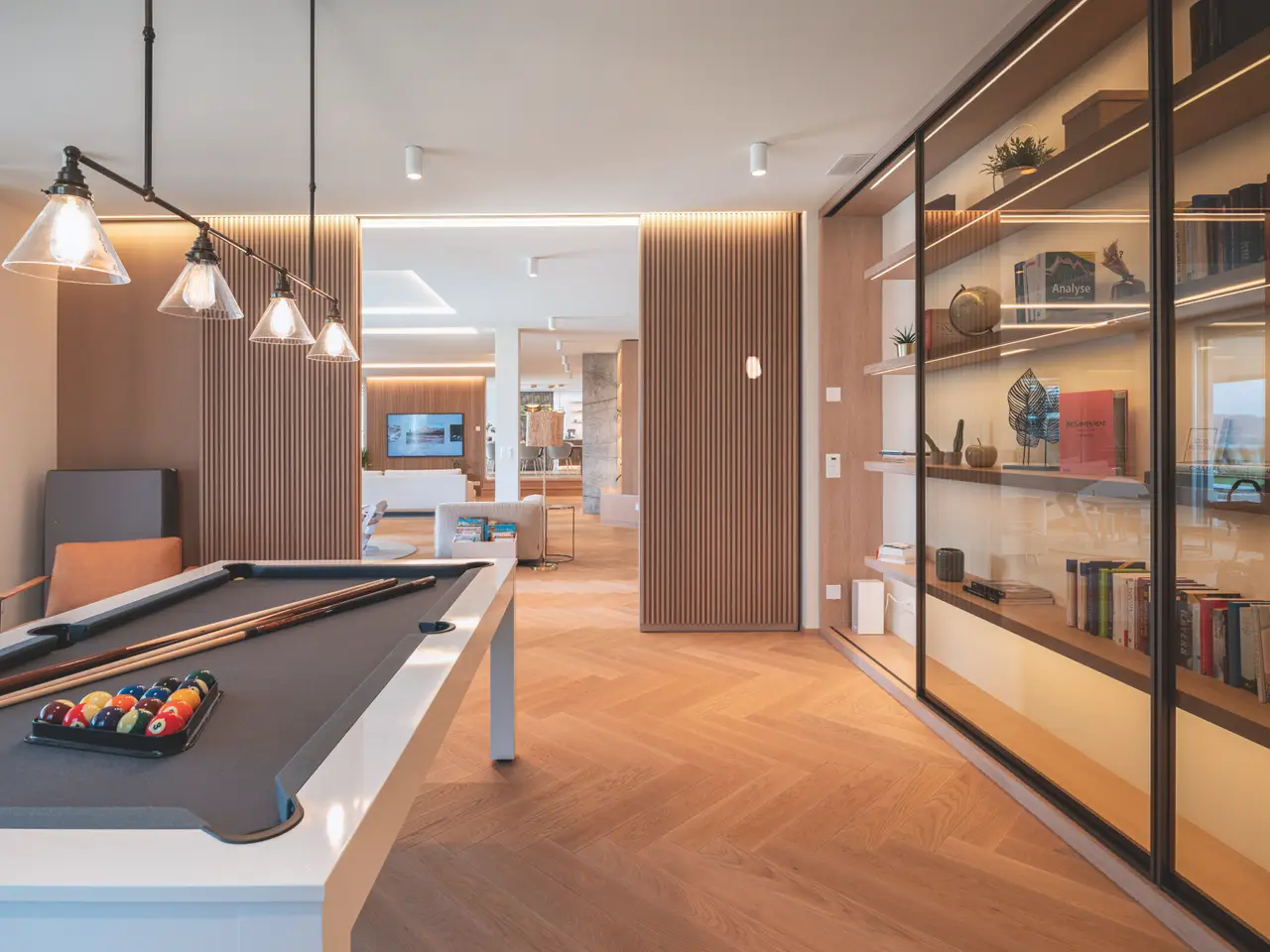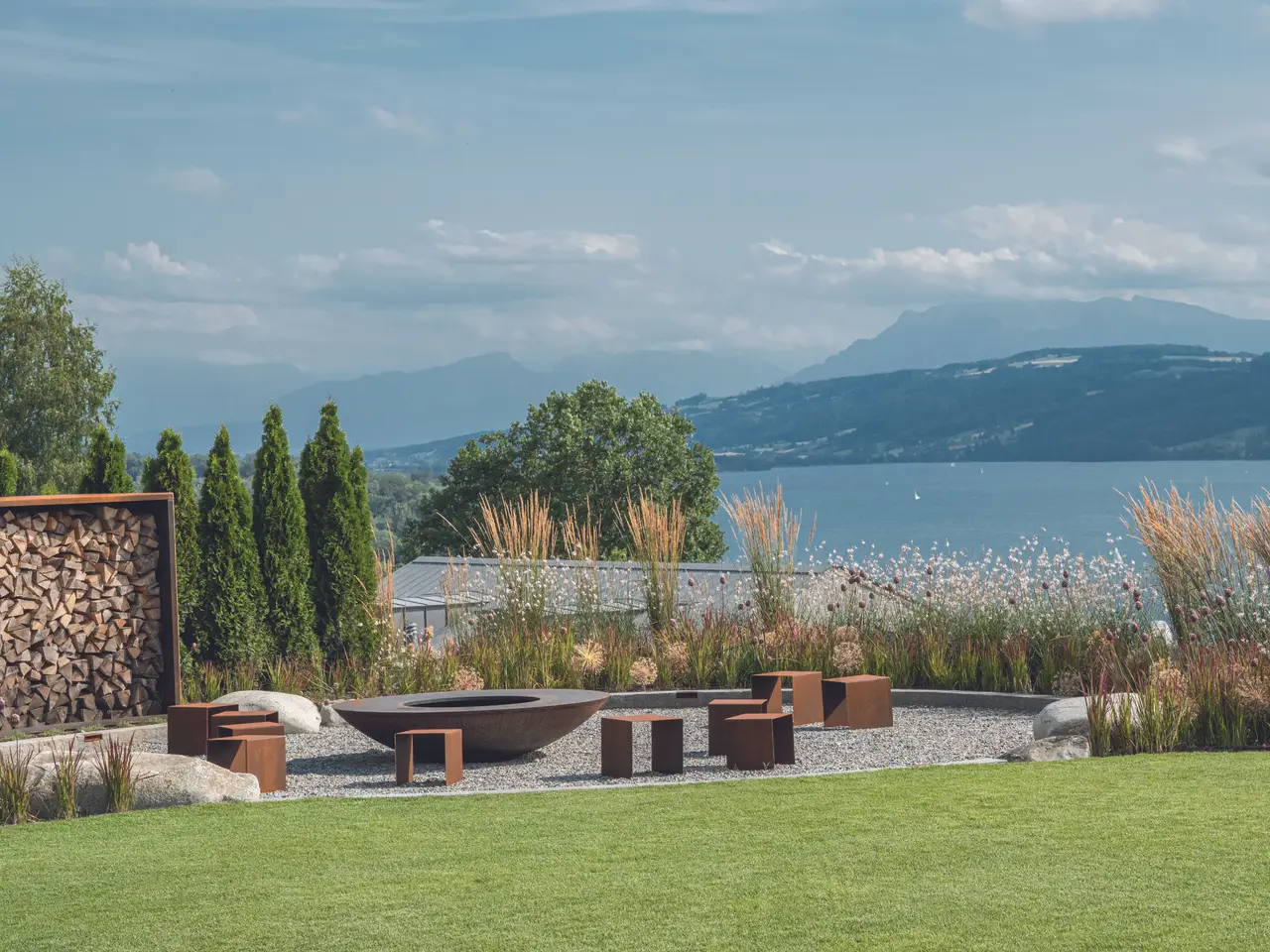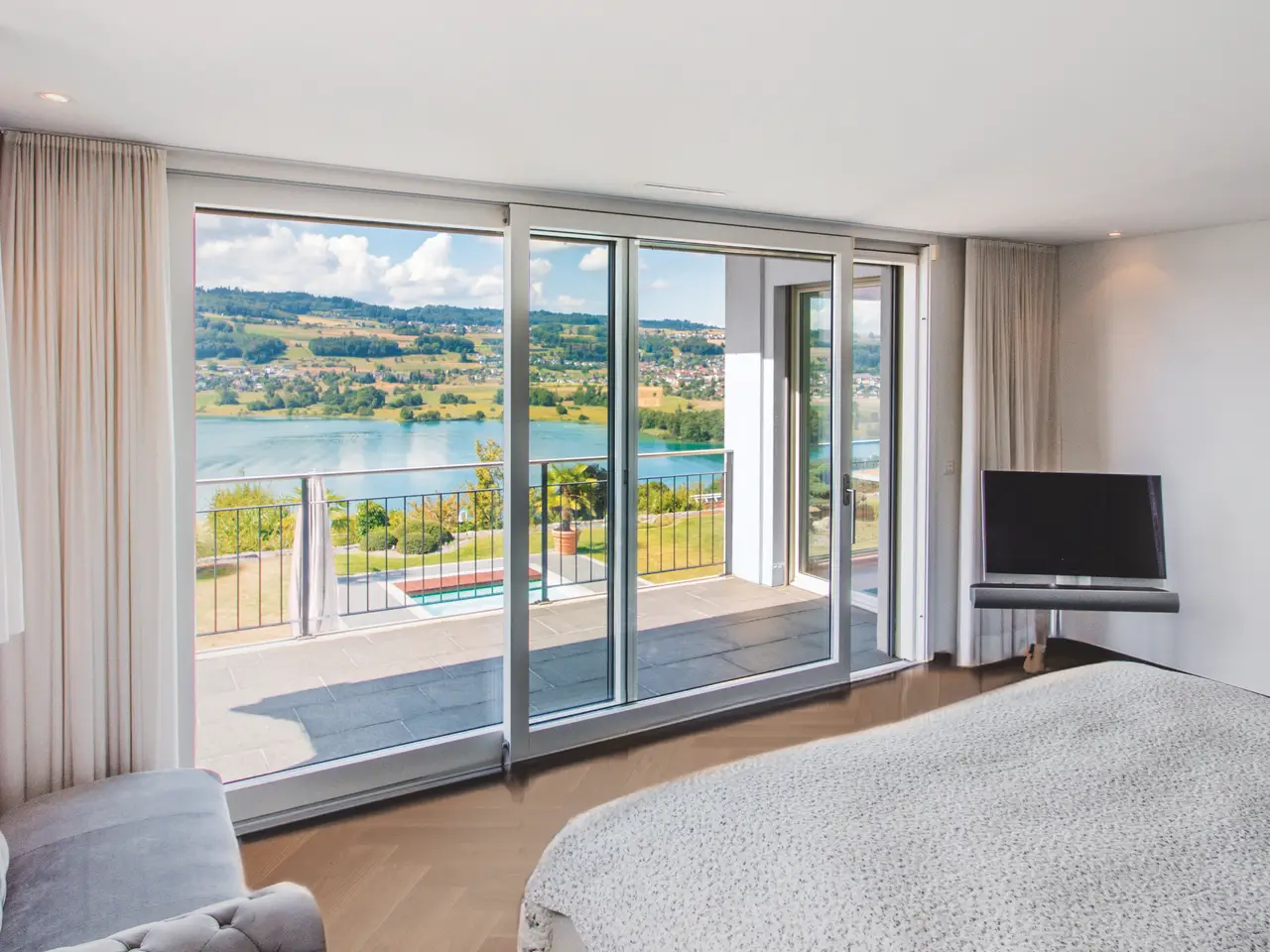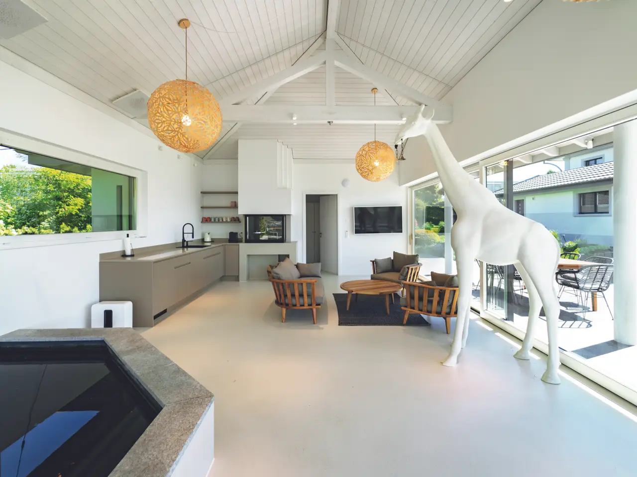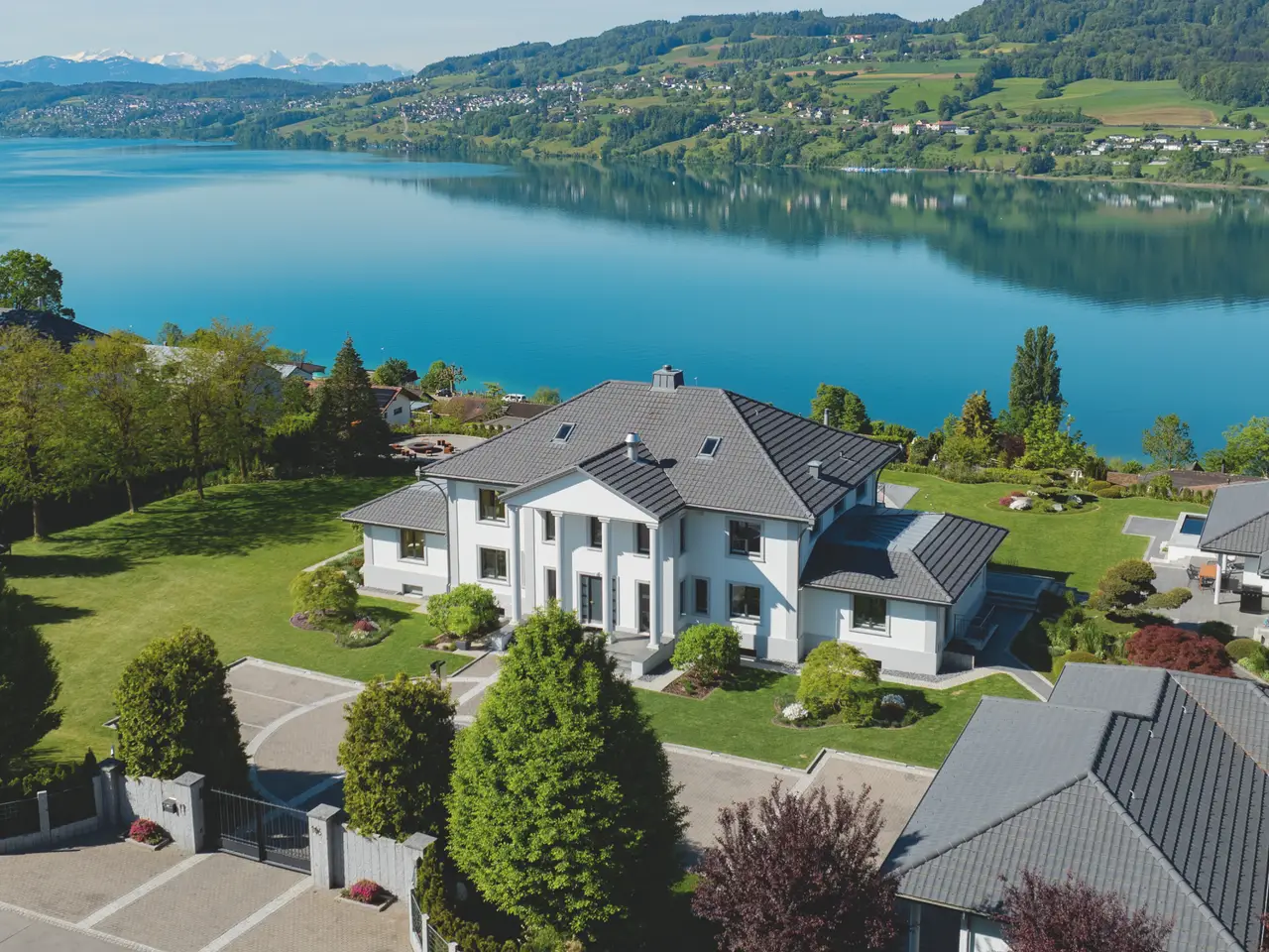 »Villa Palladia« showcases the magnificent views in every possible direction. In the extensive garden, a heated pool and a stylish pavilion with a grill, kitchenette, fireplace, and a fascinating Koi pond invite you to celebrate in style. The interior impresses with high-quality details and a sophisticated lighting concept. A heat pump and geothermal probe ensure that the home's technology is resource-efficient. And what would this luxurious villa be without the offerings for relaxation and wellness in the basement! An extravagant home theater, an air-conditioned wine cellar, and a beautufl spa with a steam bath and whirlpool enhance gray rainy days. We would be delighted to show you this apartment in person. If you have any questions or would like to arrange a viewing, please do not hesitate to contact us.