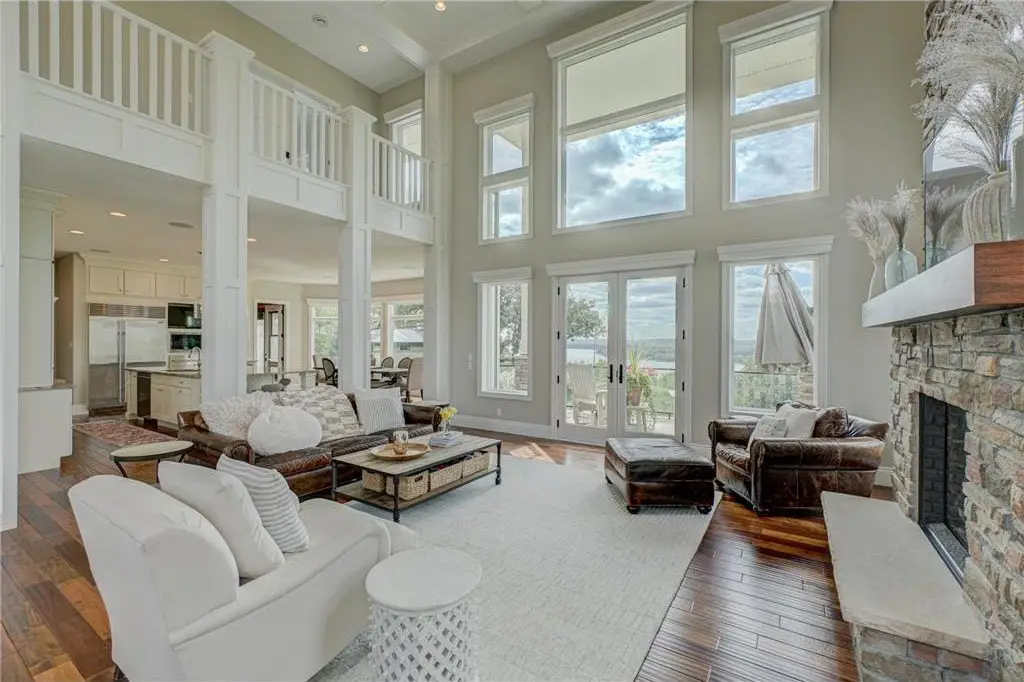 This extraordinary estate combines timeless elegance with modern luxury, offering an unmatched lifestyle overlooking the breathtaking St. Croix River. With over 6,000 square feet of living space, every detail has been thoughtfully curated with designer fixtures, finishes, and architectural features that exude sophistication and refinement. Step inside to soaring ceilings, rich hardwood floors, and walls of massive windows that bathe the home in natural light while framing sweeping western-facing river views from nearly every angle. The dramatic two-story great room is the heart of the home, showcasing a striking stone fireplace, coffered ceilings, and an open balcony overlook to the second level. Whole-home audio wiring with a Sonos system enhances every living space with effortless ambiance, perfect for entertaining or relaxing. French doors lead to a spacious composite deck, perfect for outdoor entertaining against the backdrop of the river. The gourmet kitchen is both expansive and elegant, anchored by a grand center island featuring granite countertops. Professional-grade appliances, including a Sub Zero fridge & Wolf range, elevate the space while the sleek tile backsplash, coffee bar with drink fridge, walk-in pantry, and adjacent dining area enhance both everyday living and effortless entertaining. Off the kitchen, a four-season porch with its own stone fireplace offers a cozy retreat with year-round views. The primary suite is a private sanctuary adorned with a tray ceiling, cozy fireplace, and a private deck showcasing sweeping river views. The spa-inspired primary bath features a luxurious soaking tub, a walk-in steam shower, dual granite vanities, and dual walk-in closets with custom built-ins. A dedicated laundry room with cabinets and sink adds everyday convenience. The finished walkout lower level is designed for entertaining, complete with a beautiful kitchen and bar, a luxe wine cellar, sleek stone fireplace, and expansive windows. From here, step out to the covered patio and embrace seamless indoor-outdoor living with panoramic river and sunset views, complete with a relaxing hot tub perfectly positioned to take in the scenery. This level also includes a hobby/craft room, a huge recreation area perfect for a gym, additional bedrooms, and abundant storage. Beyond the home, the exterior was freshly repainted last year, highlighting the property’s excellent curb appeal and the immaculate landscaping that frames the grounds. Geothermal heating ensures energy-efficient comfort year-round, perfectly complementing the home’s modern amenities and luxurious finishes. The oversized four-car garage features a Spancrete design with heated epoxy floors, and a mirrored tuck-under storage below (nearly 500 sqft), offering exceptional space for vehicles, recreational equipment, and more. Situated in an inviting neighborhood, this property boasts an unrivaled location just moments from downtown Hudson, the marina, and I-94. Enjoy the convenience of in-town living with scenic St. Croix River views and close proximity to restaurants, shops, and parks—all within walking distance. This is more than a home—it’s a lifestyle defined by elegance, comfort, and unparalleled river views. Don’t miss this incredible opportunity.