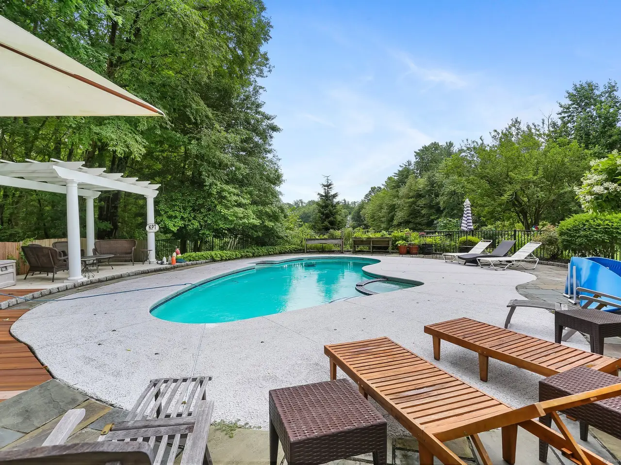 "A Premier Waterfront Sanctuary"! Please view the fabulous virtual tour of this property at (101goldenhill.com) for spectacular drone imaging here on tranquil "Dogwood Lake", (spring fed) in historic "Nichols" & the award winning "Booth Hill School District". Resort styled living inside & out w/established perennial & raised bed vegetable gardens, level lawn spaces, (irrigated) stretching out to the water. For added outdoor enjoyment the I/G gunite pool w/pergola, charming storage shed, custom designed fieldstone patio, barbecue w/outdoor range & pizza oven enhance waterside entertaining. Plus an architecturally designed, stand alone accessory barn w/garage/workshop, perfect use as a private studio, work from home office or family/guest retreat. Inside, all major rooms overlook this serene setting. The chef's kitchen has been re-designed w/entertaining & convivial ease in mind along with the adjacent great room, built in entertainment center and walls of glass overlooking this private oasis. Also from this level, four separate doors, (including a 16' slider) offer access to the upper deck balcony for waterfowl viewing, (egrets, mallards, osprey) and shimmery lake gazing... All 5 second level bedrooms are generous in size w/the primary and family/hall baths recently updated. Bonus!!, the walkout lower level with wood-burning FP includes an efficient stove insert for winter weather comfort...Relax and enjoy this very special one of a kind offering, truly a "Paradise in Nichols Please view the virtual tour at 101goldenhill.com for amazing overhead imaging of this special waterfront property here on "Dogwood Lake!