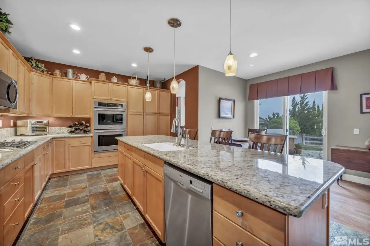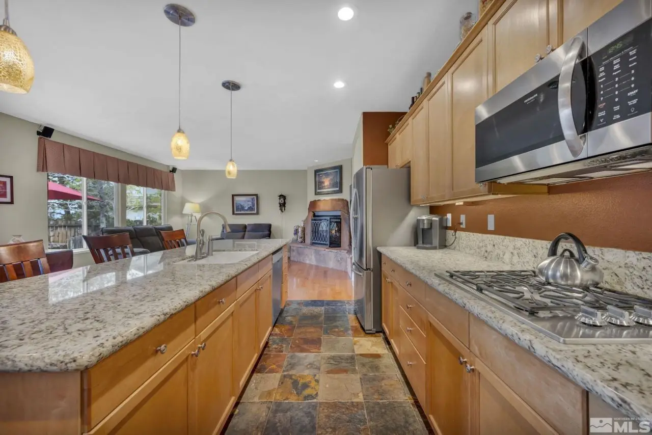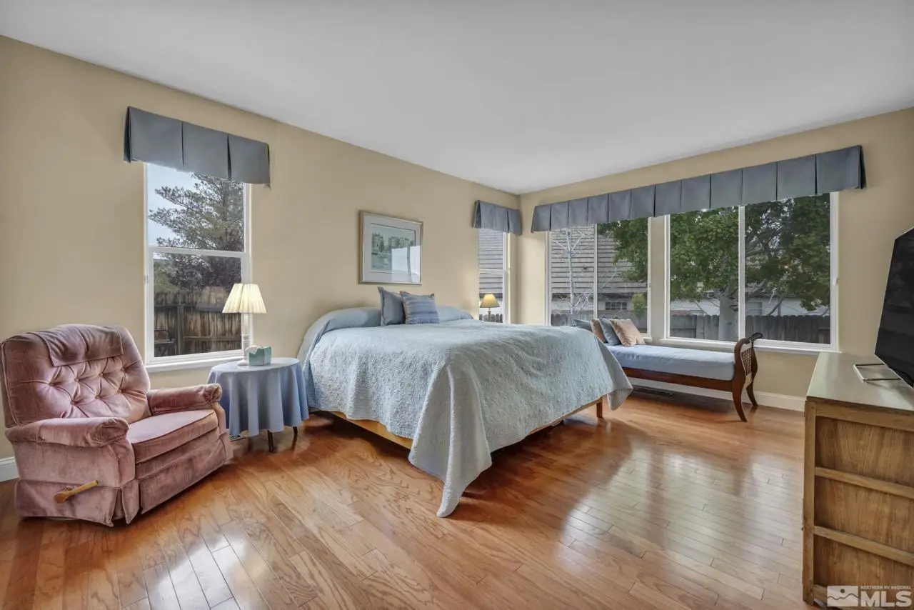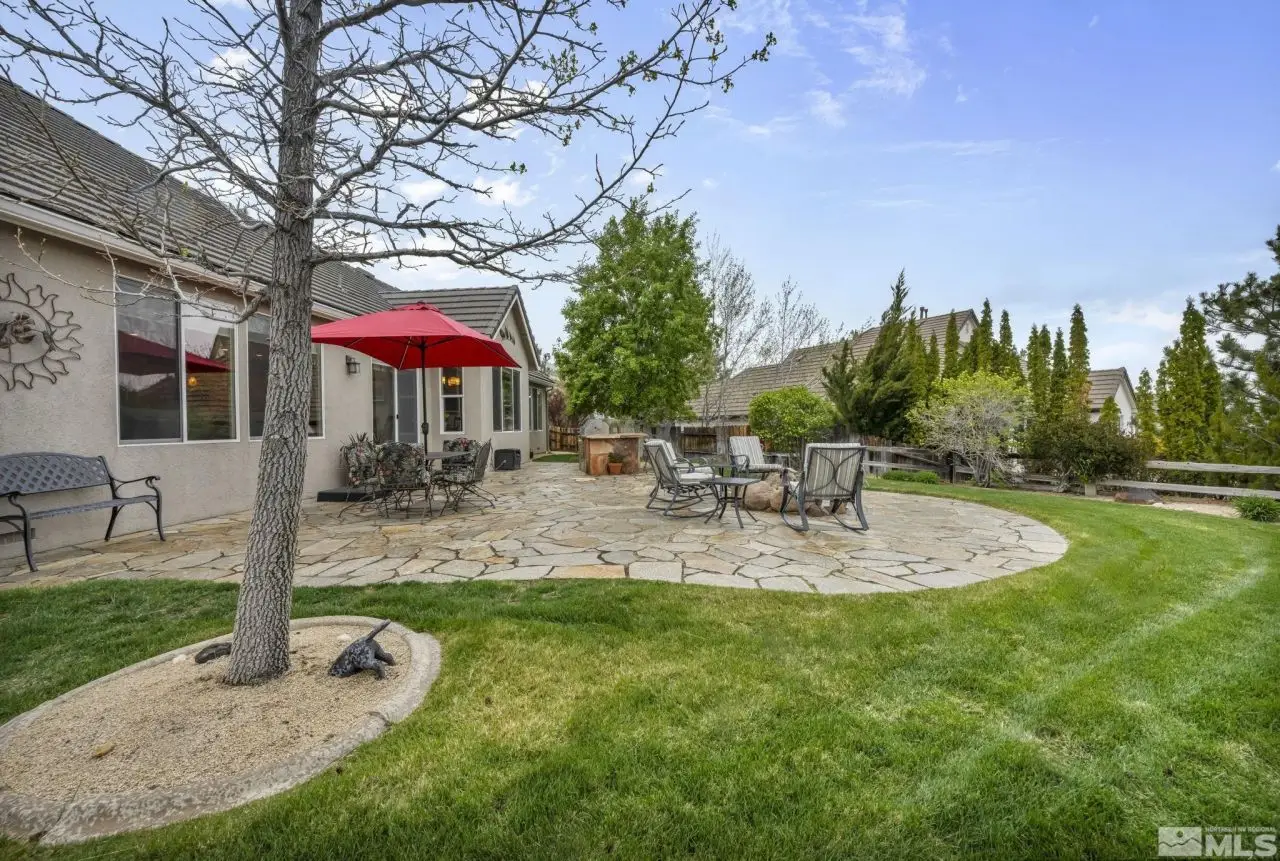Welcome to the prestigious ArrowCreek Golf Community! This well-maintained home offers great views of the Reno valley's city lights and awesome sunrises & sunsets. The spacious floor plan features single-level living, including a primary suite with sunrise views, two guest bedrooms, a den, formal living and dining rooms, and a family room. As a bonus, there is a 400 sq ft bdrm suite upstairs with built-in desks and a private bathroom, ideal for a home office or guest suite. The primary suite includes a large walk-in closet and an updated bathroom, thoughtfully separated from the guest wing for added privacy. The kitchen and primary suite have been updated with granite countertops, and hardwood flooring extends through most of the living areas. The backyard is built for entertaining, with a built-in gas BBQ island, a fire pit, and stunning valley views. There are raised garden beds for summer gardening. The garage features 220 power (ideal for EV charging), ample storage, and an epoxy floor finish. Major systems - furnace, A/C, and water heater - were replaced between 2018-2019. Washer, dryer, and both refrigerators are included. Golf cart and snow blower are negotiable. ~~~ArrowCreek residents enjoy a 24/7 manned security gate, scenic walking and hiking trails, and the Residents Club offers three swimming pools, spa, tennis/pickleball courts, basketball court, park, picnic area, meeting room, and a fitness center, along with a Bocce ball court. ~~~ Optional membership is available at The Club at ArrowCreek, an exquisitely renovated private golf club featuring two courses, multiple dining venues, an outdoor pool complex, state-of-the-art fitness center, indoor pickleball facility, pro shop, and indoor golf performance center. Located just minutes from Reno, Lake Tahoe, and Mount Rose Ski Resort -and with no state income tax in Nevada - this is an outstanding opportunity to enjoy a premier lifestyle.