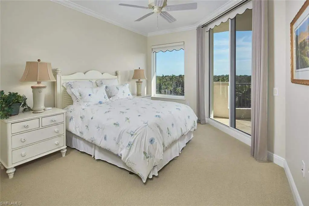 Full Colony Golf Membership available to purchase with this exquisite luxury corner residence on the 4th floor of Florencia, showcasing breathtaking panoramic views that capture the stunning sunrises and sunsets over the Gulf of Mexico, Estero Bay, and the Colony Golf Course. Spanning an impressive 2,600+ square feet, this residence is designed for both comfort and sophistication, featuring a private elevator that opens directly into your home. With three spacious bedrooms, a den, two private terraces, and a large screened lanai complete with electric shutters, this home offers an unparalleled living experience. The open layout seamlessly connects the large kitchen and great room, providing impressive opportunities for entertaining guests in style. The kitchen has a SubZero refrigerator and other updated appliances that enhance both functionality and aesthetic appeal. This residence is not just a home; it's a lifestyle that embodies the elegance and opulence that discerning buyers seek. Florencia has a striking main lobby, social room, theater, fitness facility and pool. Two guest suites. Privacy officer to greet you and your guests and live-in management. Two parking spaces in the garage. Colony residents automatically enjoy a host of amenities including The Bay Club on Estero Bay with both casual and elegant private dining with gorgeous water views, a 34-acre private island beach park, 12 tennis courts as well as a host of other court sports including pickle ball and bocce; sailing, canoe and kayaking, as well. Located 1.5 miles west of the Coconut Mall, excellent dining and a swift trip to the airport.