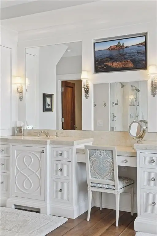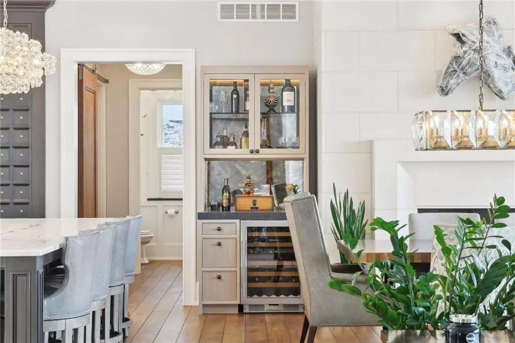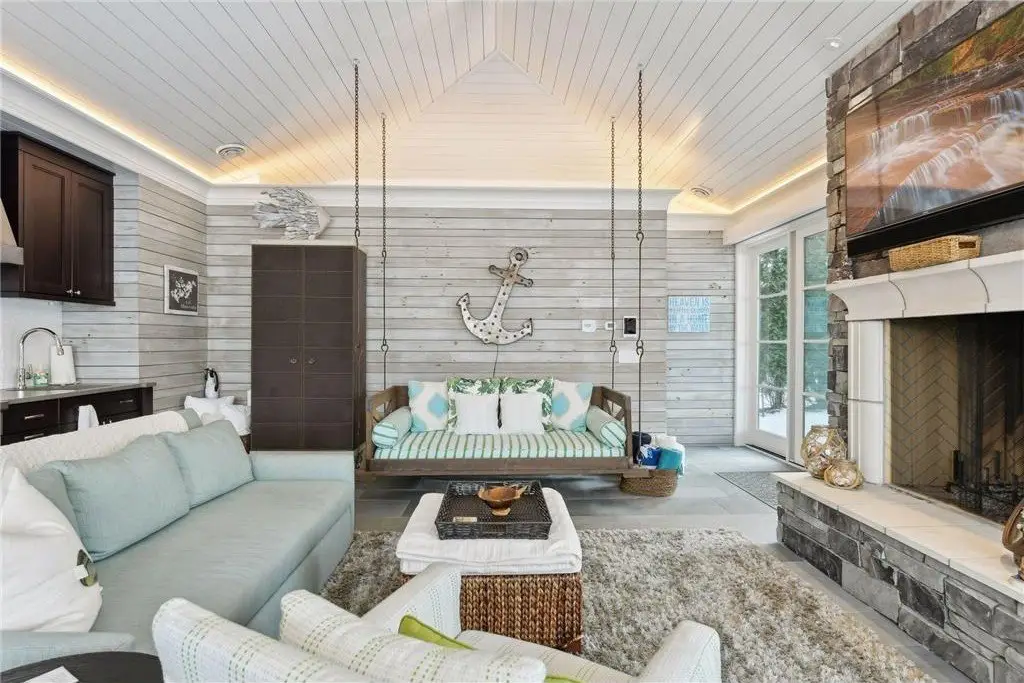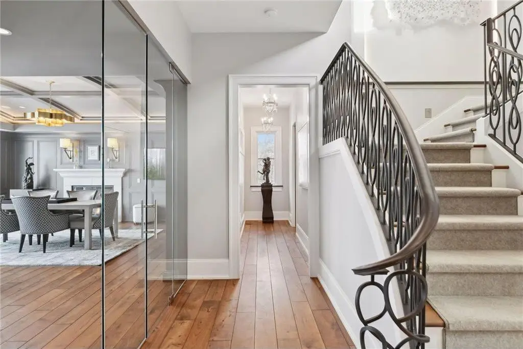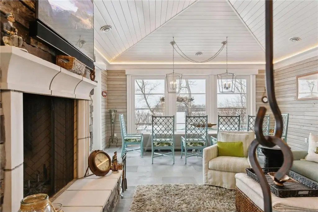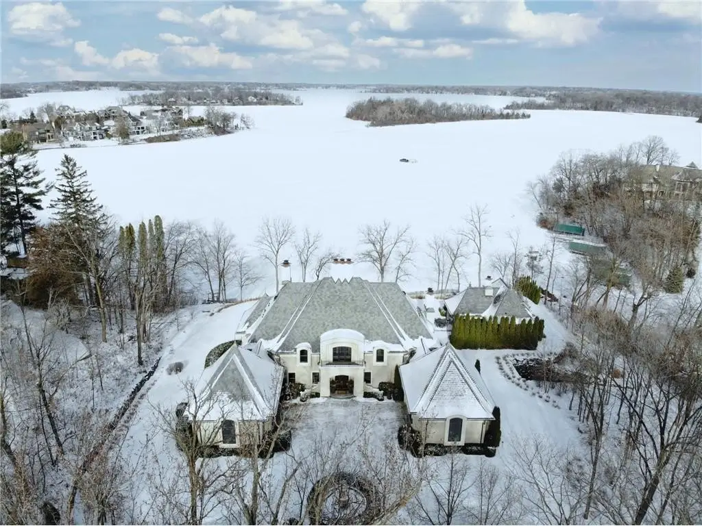 Resting on the grounds of the original Van Dusen summer cottage on the shores of Lake Minnetonka, the Forever Estate blends French provincial charm with countryside cottage allure, creating a truly distinctive masterpiece designed to stand the test of time. Set within the private Baycliffe gated community, this remarkable 8,297-square-foot residence offers a harmonious balance of modern luxury and historic character. Encompassing 1.22 acres and boasting 210 feet of pristine sandy shoreline, the property presents unparalleled lakefront living with breathtaking views of the private cove adjacent to Smithtown Bay from nearly every vantage point. Every inch of this home has been meticulously crafted, featuring a seamless blend of natural materials like marble, black walnut flooring, and mother-of-pearl mosaics, while also incorporating the modern luxury of a fully integrated Savant smart home system. From the open and inviting great room with its 24-foot retractable glass wall to the gourmet kitchen adorned with honed marble and shimmering mother-of-pearl tile, no detail has been overlooked. Textiles and finishes have been thoughtfully curated to exude warmth and romance throughout. A stunning owner’s suite on the upper level showcases a private balcony with panoramic lake views, a dramatic tufted velvet wall, gas fireplace, and a luxurious ensuite with double steam showers, jetted tub, and a coffee bar. The suite leads to a walk-in closet featuring unparalleled organization systems. Other highlights include a glass-encased music and office space with coffered ceilings, a mirrored workout room, and an elevator providing access to all three levels. The exterior offers a seamless extension of the interior’s elegance, with a stately architectural design, a paver driveway with a fountain, and uplighting to enhance its grandeur. Resort-style amenities include a heated pool, hot tub, expansive patio, and a fully appointed pool house with fireplace and outdoor covered dining area—all perfectly positioned to capture the elevated lake views. With a 10+ car garage spanning three separate spaces, this estate provides unmatched functionality alongside its opulent design. Residents also enjoy exclusive community amenities such as tennis, pickleball, basketball courts, and shuffleboard. The Forever Estate is not just a home; it is a rare legacy property offering unparalleled luxury and a lifestyle of timeless elegance.