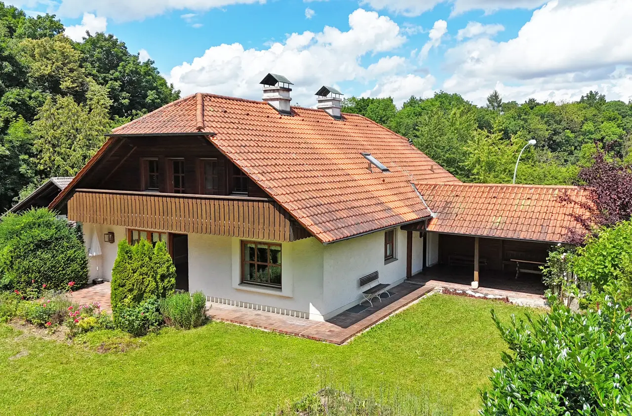 This spacious detached house on the popular Birkenberg in Landshut offers you and your family a living environment that combines freedom, security and many perspectives. On a park-like, beautifully ingrown plot of over 1,160 m², you can enjoy plenty of privacy, sunny retreats and space for your individual ideas. The house impresses as soon as you enter with its alpine character and the striking crippled hipped roof, which stylishly underlines the rural charm. On three floors and around 250 m² of living space, there are eight rooms that can be used flexibly - as a spacious family area, space for guests or your personal home office. Thanks to the separate granny apartment, multi-generational living, a care home or the combination of living and working under one roof can also be easily implemented. A special highlight is the cozy living/dining area with tiled stove, which provides warmth on cold days. The property features a fitted kitchen, several bathrooms, a guest WC, two terraces and a balcony - so everyone can find their favorite spot. The partial basement offers additional storage and usable space. The house is in a well-kept condition, but also offers potential that you can develop according to your own ideas. With a manageable amount of modernization work, you can create a contemporary home that combines tradition and comfort in a unique way. The solid construction, a mixture of stove, electric and underfloor heating, high-quality parquet and tiled floors and the large garden area create the best conditions for a cozy lifestyle. Two garages and two further parking spaces round off the offer. The location speaks for itself: close to the city center yet quiet, you can reach shopping facilities, sports centers, schools and local recreation areas in just a few minutes. Thanks to good connections, the A92 freeway, the airport and Munich city center are also within easy reach. This house is a real collector's item - spacious, versatile and full of possibilities for families looking for a special home. Be inspired by its charm during a viewing.