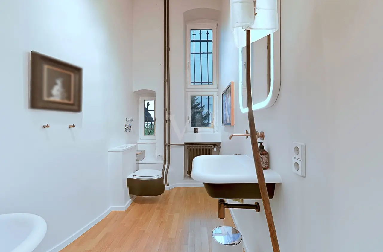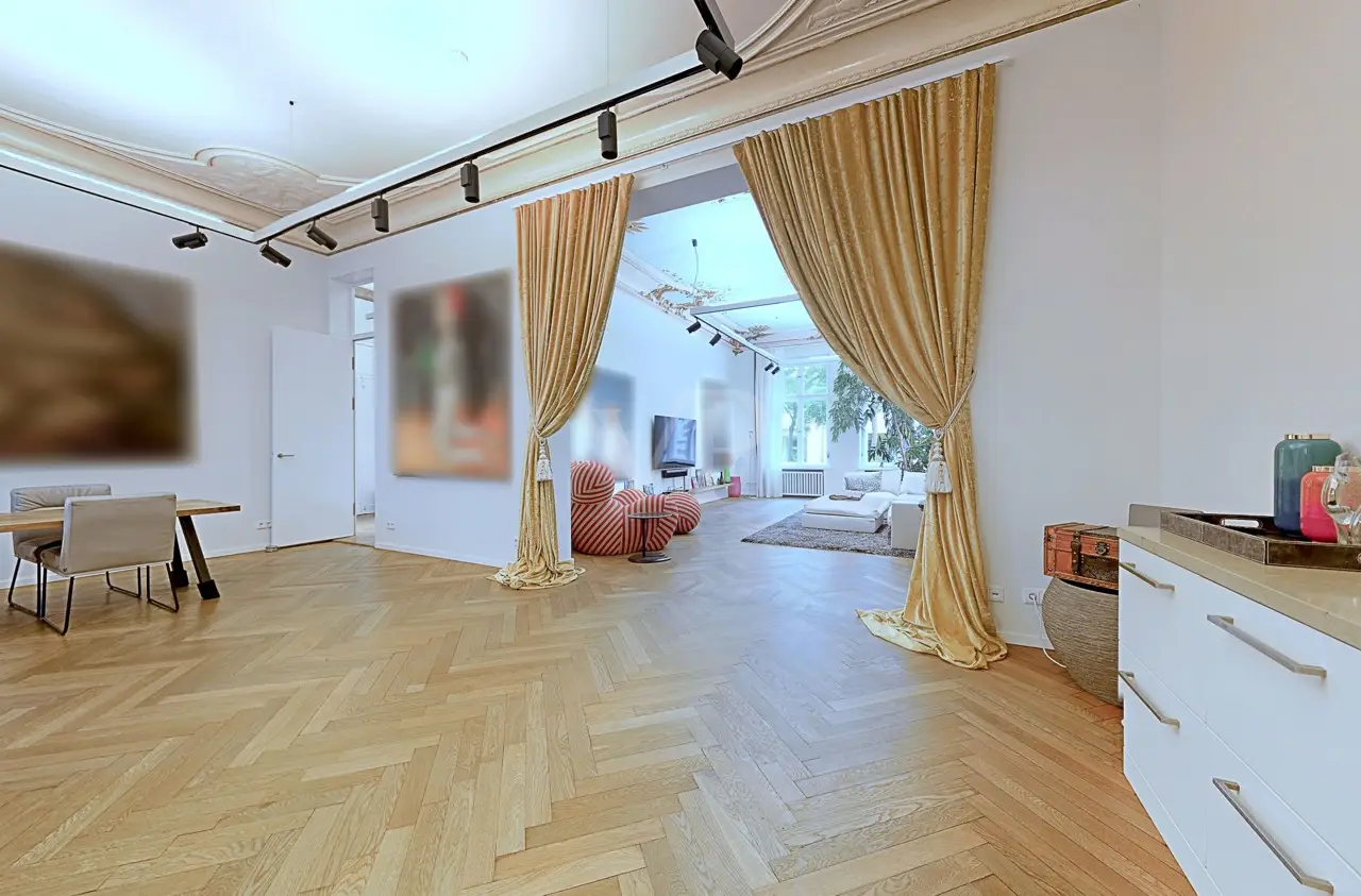 This exclusive bel étage with basement and private front garden, located in a historic old building from 1898, offers a comfortable and elegant living experience with a generous living space of approx. 250 m². The well-kept property was last modernized in 2018 and impresses with high-quality furnishings that leave nothing to be desired. The apartment extends over two floors - a kind of maisonette - and offers a total of five rooms, two of which can be used as cozy bedrooms. The two modern bathrooms are fitted with high-quality materials and offer a high level of comfort. The room layout ensures a clear separation of living and sleeping areas, guaranteeing privacy and functionality. The property is characterized by its extravagant interior design, which harmoniously combines the historic charm of the old building with modern elements. High-quality parquet flooring runs throughout the apartment, underlining the exclusive furnishings and giving the rooms a warm and inviting atmosphere. The materials used and the quality of workmanship meet the highest standards. A particular highlight is the front garden, which invites you to relax and linger and offers a welcome change from the urban environment. The apartment also has two separate entrances, one of which leads directly to the basement. This separate entrance offers additional flexibility in the use and layout of the living space. The property is heated by a central heating system, which ensures a pleasant living atmosphere even in colder months. The modernization work carried out in 2018 not only included visual and technical renovations, but also energy-related improvements that further increase living comfort. This exclusive property is in a sought-after location that offers both excellent connections to the urban infrastructure and proximity to recreational areas. Shopping facilities, schools and public transport are just a few minutes away, making everyday life much easier. This property is aimed at buyers who value a stylish living ambience in a historic setting and at the same time appreciate the convenience of modern facilities. A viewing is well worthwhile to get to know the numerous advantages and the special atmosphere of this apartment in person.