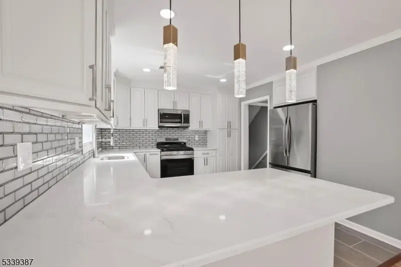 Welcome to this beautifully updated 4-bedroom, 2.5-bathroom split-level home in the heart of West Caldwell. The home features modern, high-quality finishes, offering a seamless blend of style and functionality and a New Roof (2025). The spacious kitchen is a true highlight, with sleek white cabinetry, gray tile flooring, quartz countertops, garbage disposal, and a glass backsplash that adds a touch of elegance. New stainless steel appliances complete the kitchen, which is open to the living room and dining area, creating a perfect space for entertaining. Hardwood floors flow throughout the main living areas, offering warmth and sophistication, except for the kitchen and bathrooms, which are tastefully tiled. The home has been freshly painted in a neutral gray tone, providing a modern canvas for your personal touch. Upstairs, the primary bedroom features a luxurious ensuite bathroom, offering privacy and comfort. Additionally, the home includes a versatile third-floor office space and a large family/media room that can be customized to suit your needs. Step outside to the deck off the living room, perfect for relaxing or outdoor dining. With nothing left to do but move in, this home is ready for you to make it your own! Plus LOW TAXES!!!