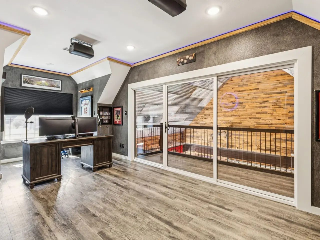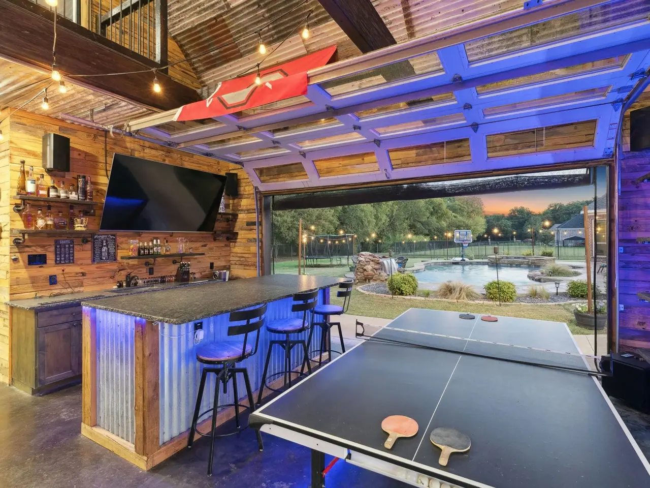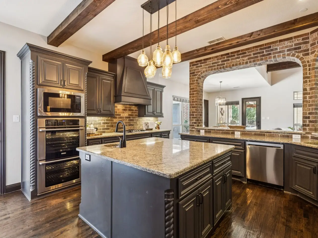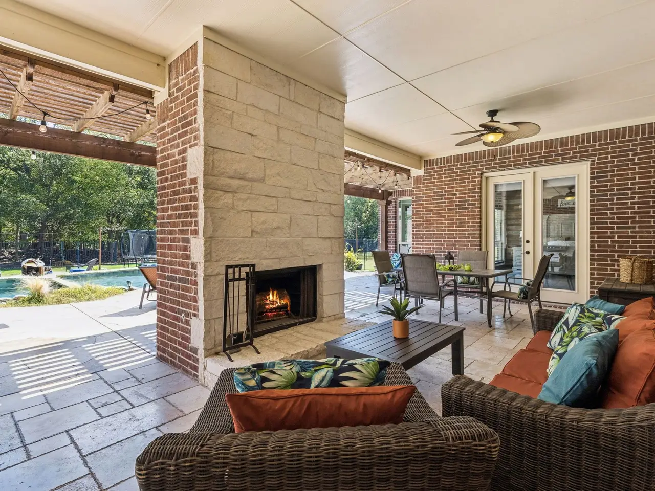 Welcome to your private retreat - an EXTRAORDINARY FAMILY ESTATE OFFERING NEARLY 8000sqft OF COMBINED LIVING SPACE which incl the primary residence plus GUEST HOUSE & ULTIMATE MAN CAVE all nestled on 2.65 acres backing to a serene wooded creek. From the moment you arrive, the striking brick and stone architecture, turret detail, and expansive landscaping set the tone for something truly special. Step inside to soaring vaulted ceilings with wood beams, warm wood floors and brick wall accents. The chef's kitchen is a dream with Electrolux appliances, dbl ovens, granite counters, prep sink, RO water system and abundant cabinetry. Entertain with ease in the oversized living areas, game room & media room with Sony projector, speakers, wet bar and wine fridge. Every detail has been carefully planned from the whole-home water softener and filtration system to the thoughtful layout. Downstairs, the luxurious primary suite awaitsfeaturing a sitting area, spa-inspired bath with stone walls, earthy textures and a multi-head rain shower. The private downstairs in-law suite with full bath is perfect for guests. Upstairs the secondary bedrooms are generously sized. Don't miss the closets that can double as study or hang out spaces! Outdoor resort-style living can be enjoyed year-round amidst twinkling Edison lights. The covered patio and pergola feature a built-in kitchen and FP with plenty of room for dining and lounging. The sparkling pool incl a spa and waterfalls with firepit nearby for cool evenings. The separate guest house not only features a fitness and sports enthusiasts ideal man cave complete with industrial finishes, but also a home office and private guest suite. Amenities include a bar, island, home gym, hardwiring for media and CAT7 for hi-speed network. Parking is abundant with two 2-car garages and porte cochere. This property blends comfort, sophistication, and functionality in a way that's rare to find. Don't miss the chance to experience all it has to offer.