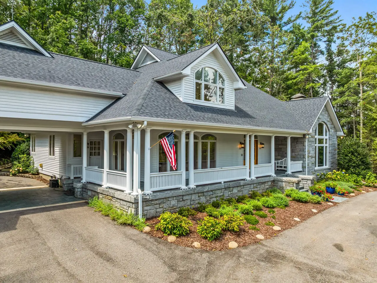 Unique opportunity to own a completely renovated custom home of the highest quality. Built of granite and wood with slate terraces on a 1.59 acre lot with a mountain view, you can easily bike to Carolina Day or take your golf cart to the membership Biltmore Forest Country Club. Attention to detail and tasteful neutral finishes will set the scene for your new lifestyle. Very spacious open vaulted rooms will entertain with aplomb. A lock off but connected upper-level apartment features its own full kitchen and breakfast area, a studio bedroom/sitting room, a full bath and a laundry closet and exterior entrance. Walk to trails and a bass pond. Centrally located deep within the community this home offers peace, privacy and convenience. Truly one of a kind.