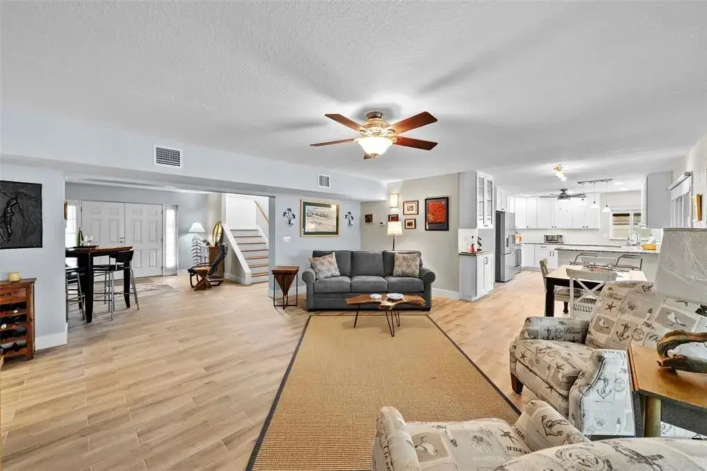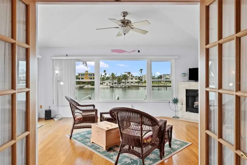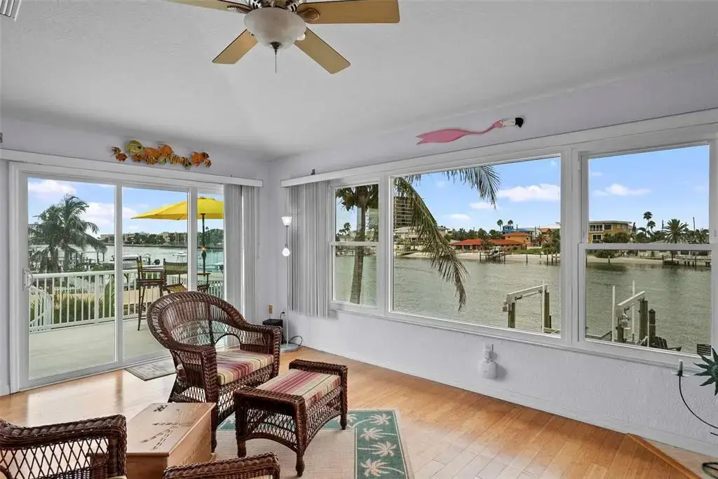 Waterfront home on sailboat water with no bridges to the Gulf of Mexico, located in desirable St. Pete Beach. This well-maintained residence features a 2023 elevated dock and 10,000 lb remote-controlled boat lift with electric and water, offering direct access to open water within minutes. The interior offers an open-concept layout filled with natural light. The updated kitchen with new appliances connects to spacious dining and living areas. The first floor includes a primary en suite bedroom and a second bedroom. The second-floor addition (2000) provides an additional en suite bedroom, office, and bonus room with water views and access to a private balcony. Additional features include newer windows, and hurricane shutters for all openings. Outdoor amenities include a circular paved driveway, xeriscaped yard, enclosed lanai, backyard fire pit, wine garden, and a side yard suitable for boat or golf cart storage. The property is located at the entrance of a cul-de-sac for added privacy. No HOA. Enjoy the ultimate Florida lifestyle just minutes from the white, sandy beaches, dining, and shopping. Move-in ready and built for peace of mind—schedule your private showing today!