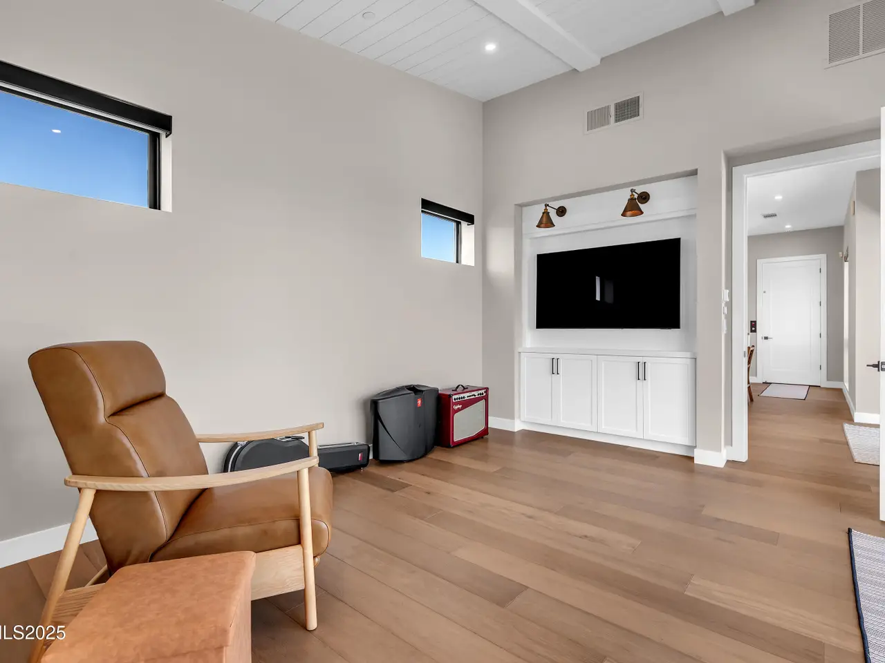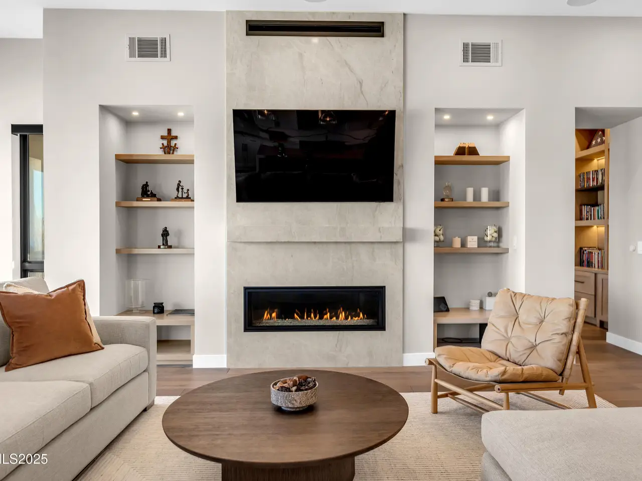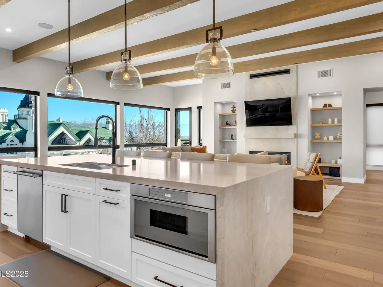 Welcome to The Villas at Rancharrah! Reno's premier gated luxury community offering an unmatched resort lifestyle. Enjoy exclusive access to The Club at Rancharrah, featuring the Nineteen 57 Restaurant & Bar, Pool, Spa and Nail salon, State-of-the-art Fitness Center, Multi-purpose room, Pickleball and Bocce courts, Curated member social events, and off-site access to three nearby Duncan 18-hole championship golf courses. The community offers 24-hour guard-gated security and is centrally located adjacent to Reno's newest hotspot, The Village, filled with Dining, Health, and Shopping options. This exceptional Villa offers a rare penthouse location just steps from the Pickleball courts, Restaurant, and Clubhouse. The two-level floor plan includes a Private elevator and a stunning Bison deck Rooftop Terrace with panoramic views of the Sierra Nevada and the historic Bill Harrah’s estate and mansion. Designed for both elegance and convenience, this virtually new home boasts an open-concept layout with soaring 10' ceilings, Gourmet kitchen with Thermador appliances, Double waterfall edge island, Quartz countertops, and under cabinet lighting. The expansive great room is perfect for entertaining and includes a sleek linear gas fireplace. Additional luxury features include, RH Machinist Glass Cloche Pendants, Built-in cabinetry & lighting in guest suite, 3rd floor tech space, Roof top trellis, Bison deck covered patios, Audio/video media cabinet, ceiling speakers, 4 wall mounted flatscreens, Smart home tech, Custom cabinet hardware, Hunter Douglas custom remote control motorized window coverings, Wood plank ceiling, Decor beamed ceiling, New LG front load washer/dryer with pedestals, and a Wi-Fi-enabled wine fridge. The home offers three bedrooms—each with full en-suite baths and walk-in closets. The dedicated office with built-in cabinetry & lighting is ideal for working from home or creative pursuits. This property was thoughtfully upgraded with high-end finishes throughout, including Kohler Purist matte black fixtures, Extended tile set entry wall, Extended tile bath walls, Epoxy-finished garage flooring, Pure Water System, and Smart home security. With low-maintenance living and world-class amenities just steps away, this home is more than just a residence—it's a lifestyle. Don't miss your chance to own one of the last premier penthouse Villas in this exclusive community. Call today to schedule your private showing!