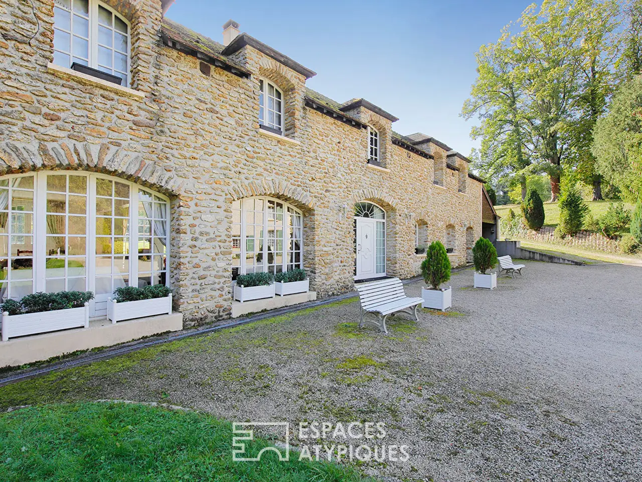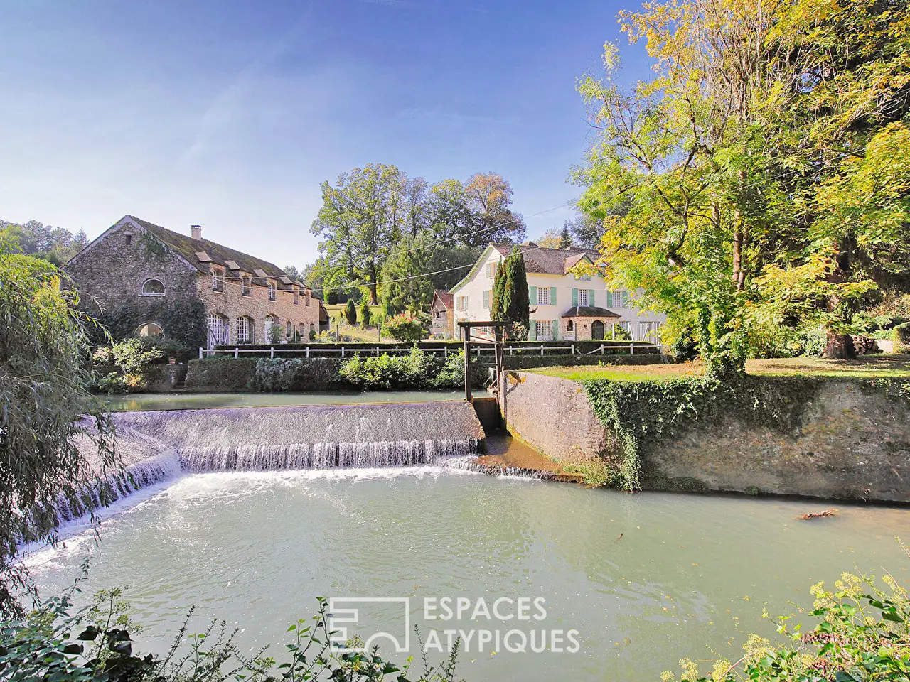 Near Coulommiers, this former 17th century Brie mill built at the foot of the Grand Morin, of more than 1000m2, is located on preserved land of 5.5 hectares made up of woods and pastures, a large part of which remains buildable. 6 buildings are spread across the estate: In a completely renovated old barn, the main residence, with an area of 360m2, is made up as follows: - on the ground floor, the entrance then the living room with cathedral ceiling decorated with an insert fireplace and a large rounded bay window overlooking the river, an open kitchen with access to the terrace. On the night side, there is a bedroom, an office (or bedroom) with its exposed stone wall, a bathroom and two shower rooms and a laundry room. - on the 1st floor, we discover the paneled triple exposure mezzanine serves as an office and library and overlooks the living room, 3 bedrooms with exposed beams and frames, 2 bathrooms and a large through room of 35m2 currently converted into a dojo. - on the 2nd floor, accessible by a Japanese staircase, are the paneled attic which still allows for beautiful fittings. A door at the back leads to a roof staircase which leads to the garden. The summer palace, vast and beautiful 150m2 courtyard, can accommodate very beautiful outdoor receptions. The other buildings require renovation and refreshing work. The old mill, with an area of 715m2, was a retirement home for a time and then allowed the hosting of seminars or events. The ground floor is made up of a large hall which serves on the left a conference or training room with a shower room and toilets, on the right and adjoining a restaurant room decorated with cabochon slabs and exposed beams, and a large reception room of 65 sqm with its 30m2 mezzanine with a cathedral ceiling with an imposing fireplace and a bar. Basically, a semi-professional kitchen requires updating to current standards. At the end of the hall, the elegant staircase in cream stone and artistic ironwork leads to two floors in which 16 bedrooms are distributed with shower rooms and toilets. The small 50m2 house is made up of a main room with water point, a bathroom, toilets and a mezzanine. The former house of the barrier guard of a disused railway line, probable future greenway, of 75m2 is composed on the ground floor of a bathroom, a kitchenette, a living room, on the 1st floor of 2 bedrooms and on the 2nd floor of converted attic. It requires renovation work. Passing the gate, we are struck by the beauty and serenity of the place. The property is accessed by a very pretty bridge separating the river from the reach. The environment is bucolic, charming and romantic with its river, its banks, its woods and its landscaped garden planted with apple trees, weeping willows on the banks, chestnut trees, walnut trees, cherry trees, etc. Around 2 hectares of land are buildable provided there is a specific tourist or residential project. It is a perfect favorite for a professional activity or a large family property. More photos on request after telephone exchange ENERGY CLASS: D / CLIMATE CLASS: D Amount of annual energy expenditure for standard use established from energy prices indexed as of January 1, 2021 (subscription included) between EUR6,140 and EUR8,360 per year. Contact: Elvire de la MARTINIERE - 06 03 05 05 96 RSAC: 800 930 232 MEAUX REF. SM1087 Additional information * 30 rooms * 21 bedrooms * 2 bathrooms * 13 shower rooms * 3 floors in the building * Outdoor space : 55000 SQM * Property tax : 3 375 € Energy Performance Certificate Primary energy consumption d : 144 kWh/m2.an High performance housing