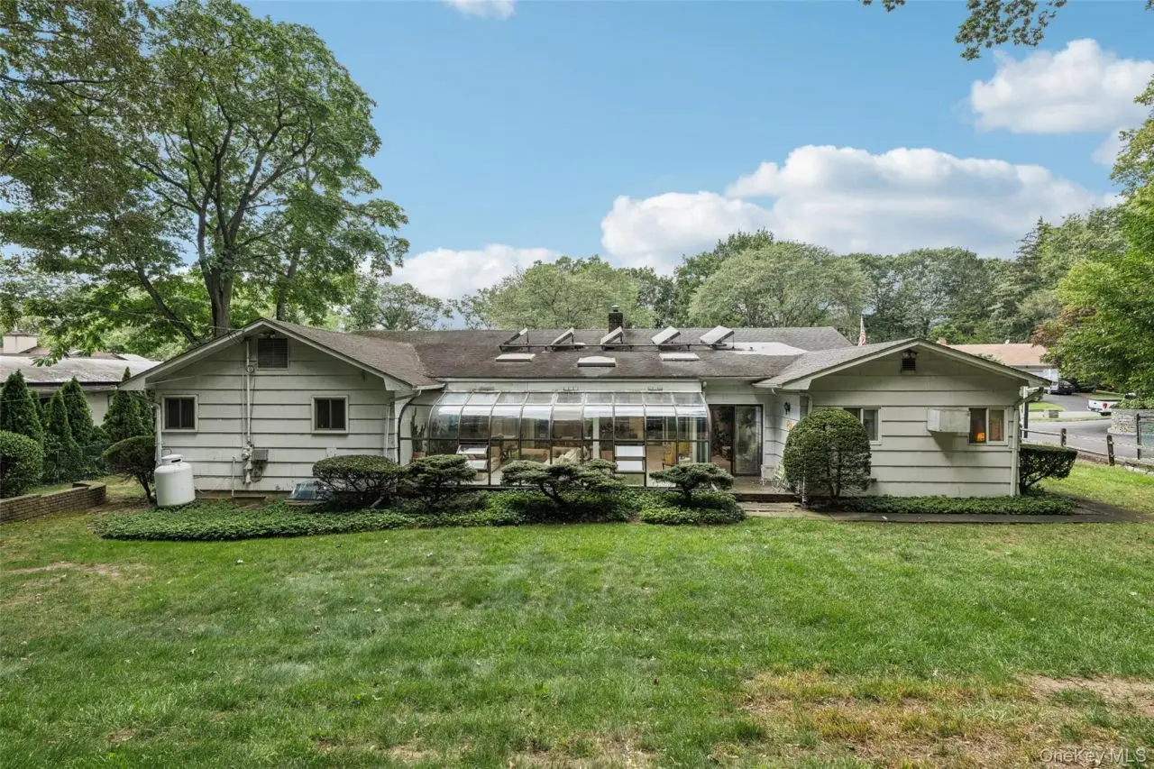 Located in the highly sought-after Country Estates at East Hills, this expanded ranch offers an exceptional opportunity to craft the home of your dreams. With spacious interiors, a versatile layout, and a picturesque setting, this residence is ready to be reimagined. The sun-filled living room, highlighted by a striking picture window, creates a warm and inviting atmosphere. A formal dining room sets the stage for memorable gatherings, while the eat-in kitchen provides plenty of room for casual meals and everyday living. The oversized sunroom is a true standout-flooded with natural light and offering panoramic views, it seamlessly connects the indoors with the outdoors for year-round enjoyment. The primary suite serves as a private retreat with its own ensuite bath, complemented by three additional generously sized bedrooms. Among them is an impressive guest suite featuring a bedroom, sitting room, and office-perfect for extended stays or flexible living arrangements. The finished basement expands the home's possibilities, ideal for a media room, game space, or lounge. Outdoors, nearly three-quarters of an acre of private grounds provide a serene backdrop for entertaining, play, or quiet relaxation. Set within the award-winning Roslyn School District and the vibrant East Hills community, this home represents a rare opportunity to create a custom sanctuary in one of Long Island's most desirable neighborhoods. The potential is endless-bring your vision and make it your own.