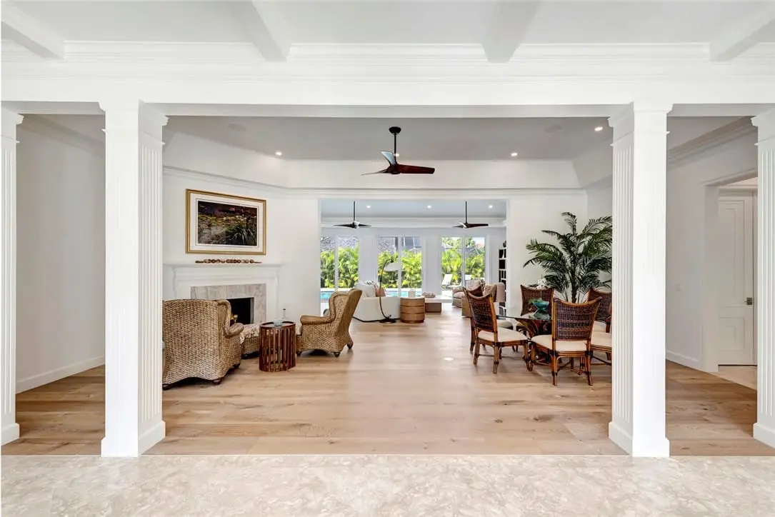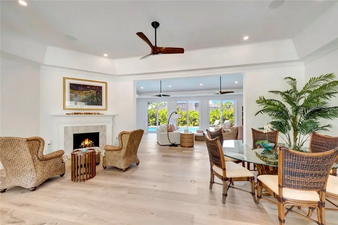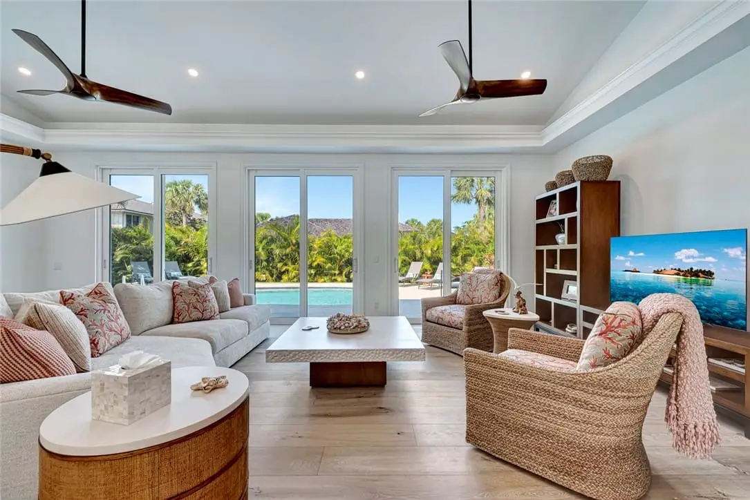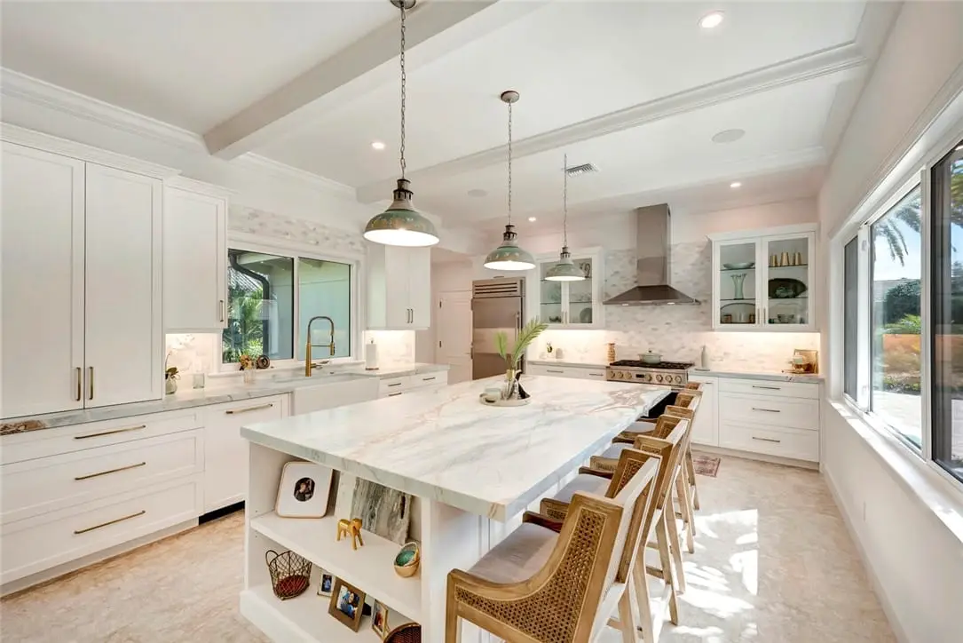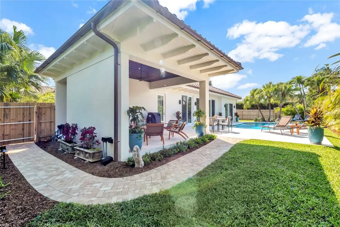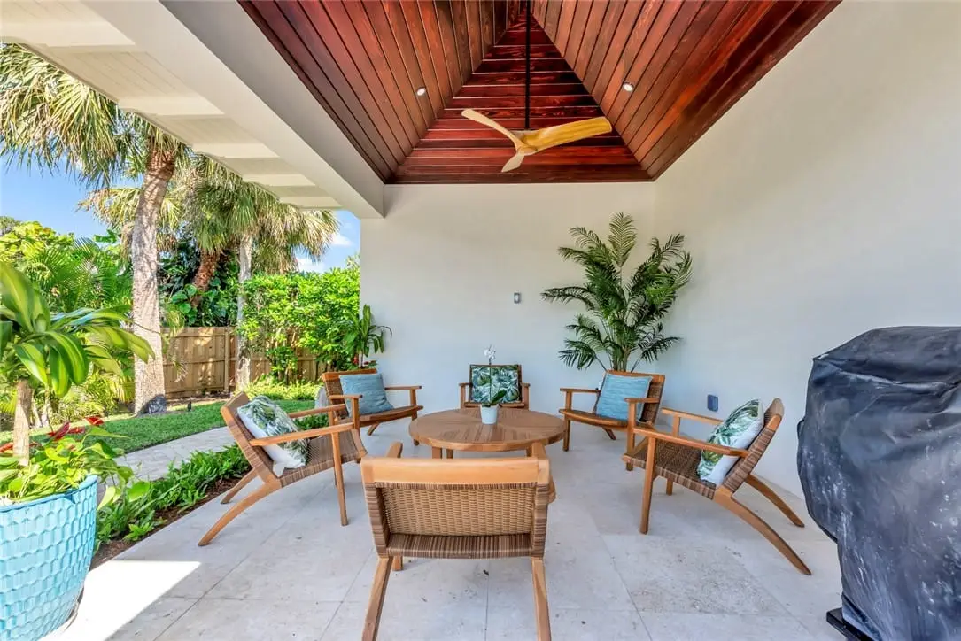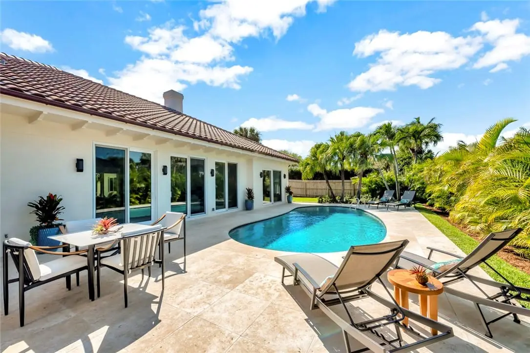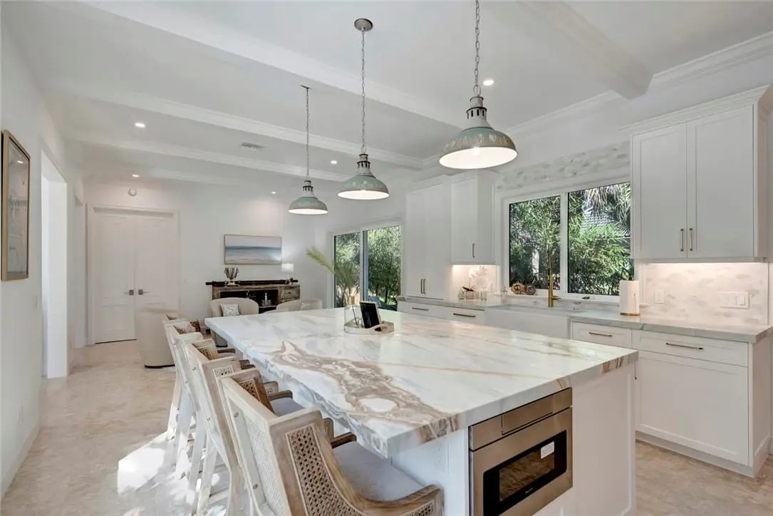 Stunning beachside retreat completely remodeled in 2024. This exquisite home offers modern luxury & coastal charm. Selling fully furnished the home boasts a new tile roof, impact glass & an all-new island kitchen w/Quartzite counters, custom cabinetry & top-tier appliances. Enjoy Spacious living & family rooms, fireplace, stone & engineered wood floors. 3 new full baths plus a powder rm. Outdoor living is redefined with a beautifully renovated saltwater pool, a new covered lanai, lush landscaping & irrigation. Located in a gated community w/private beach access. Sizes approx./subj. to error.