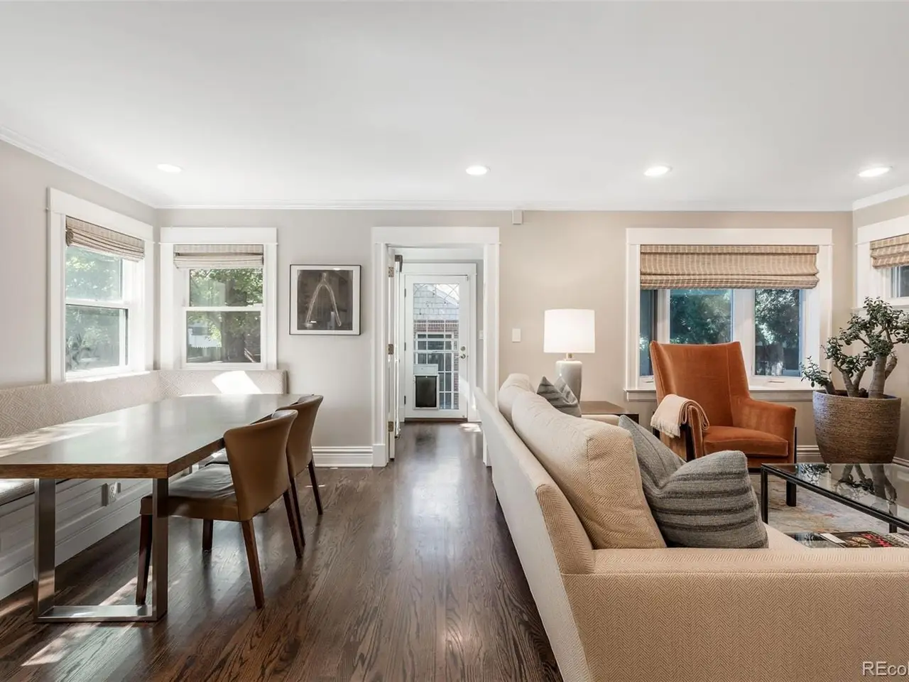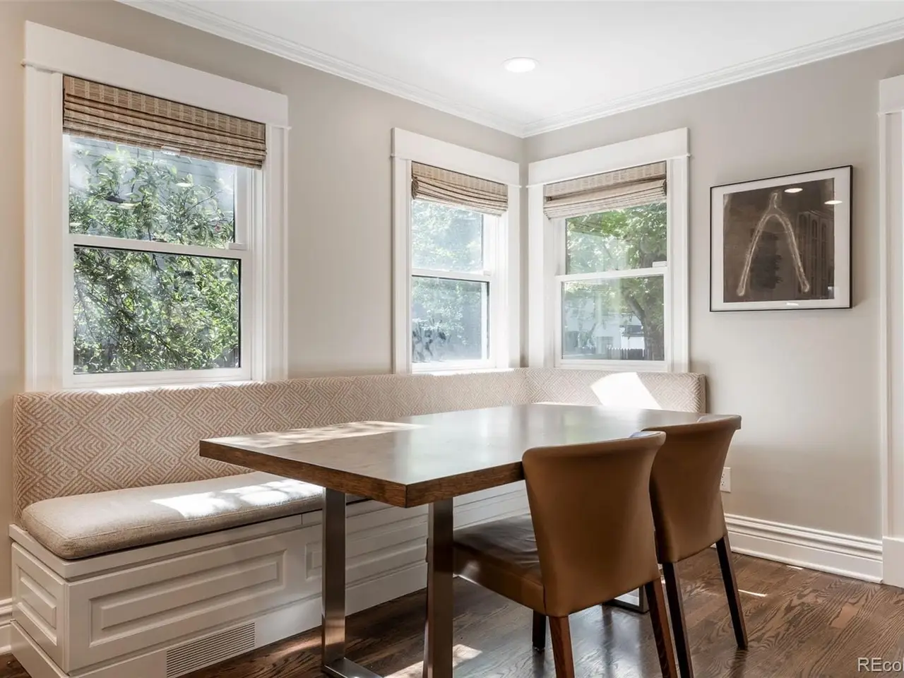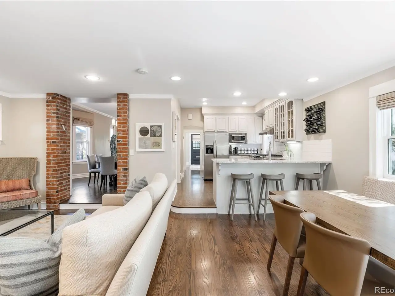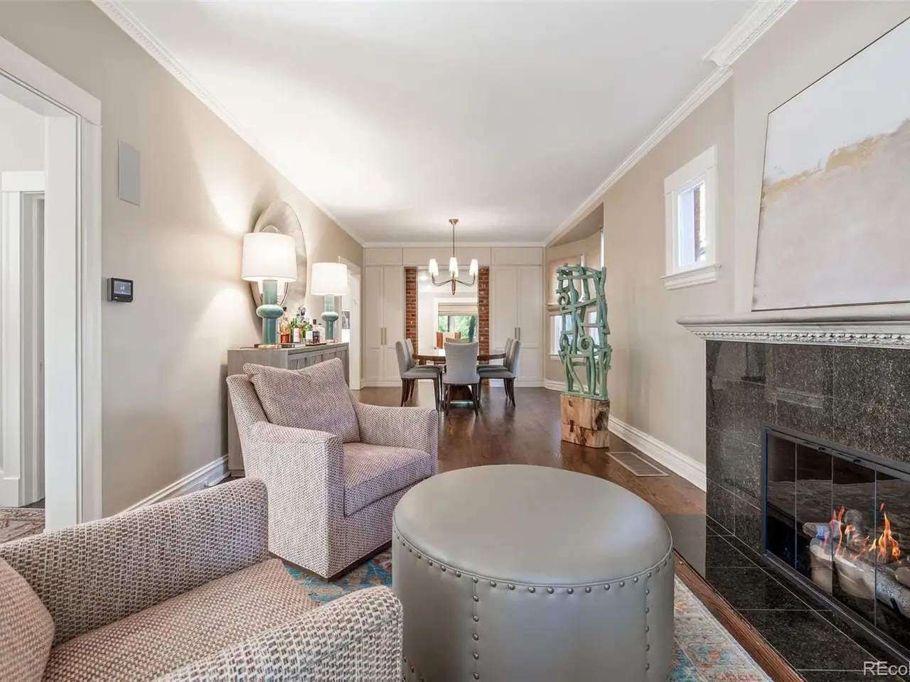 Built in 1913, this updated residence combines historic charm with modern upgrades throughout. Warm and inviting, the front porch opens into a welcoming foyer with a beautiful, classic staircase, a generous living room featuring a gas fireplace, as well as a spacious dining room with bay window. Rich in character with a fresh, modern style, the interior is filled with sunshine and accented by gorgeous hardwood floors, crown molding, high ceilings, plus a new powder room with designer wallpaper on the main level. The heart of the home is the great room, the perfect gathering place where hosting friends and family is a breeze. Open to a well-equipped kitchen, highlighted by attractive white cabinetry, stainless steel appliances, breakfast bar and adjacent breakfast area with built-in banquette seating. The mudroom offers a bench and built-in cabinetry, and leads outdoors to a delightful brick-pavered patio and private, treed backyard. Upstairs, the primary suite is a cozy retreat with a sky-lit vaulted ceiling, private balcony overlooking the yard, walk-in closet and new en suite bath with radiant floor heat. Two additional bedrooms are found on the second floor, each with a walk-in closet, plus a lovely full bath. Huge laundry room and ample storage are located on the lower level. Offering a rare chance to own a piece of Denver's vibrant culture within the East Seventh Avenue Historic District, this home is just minutes to nearby parks, Denver Botanic Gardens, Downtown, as well as the world-class dining and shopping of Cherry Creek.