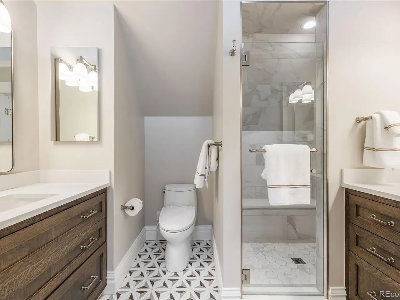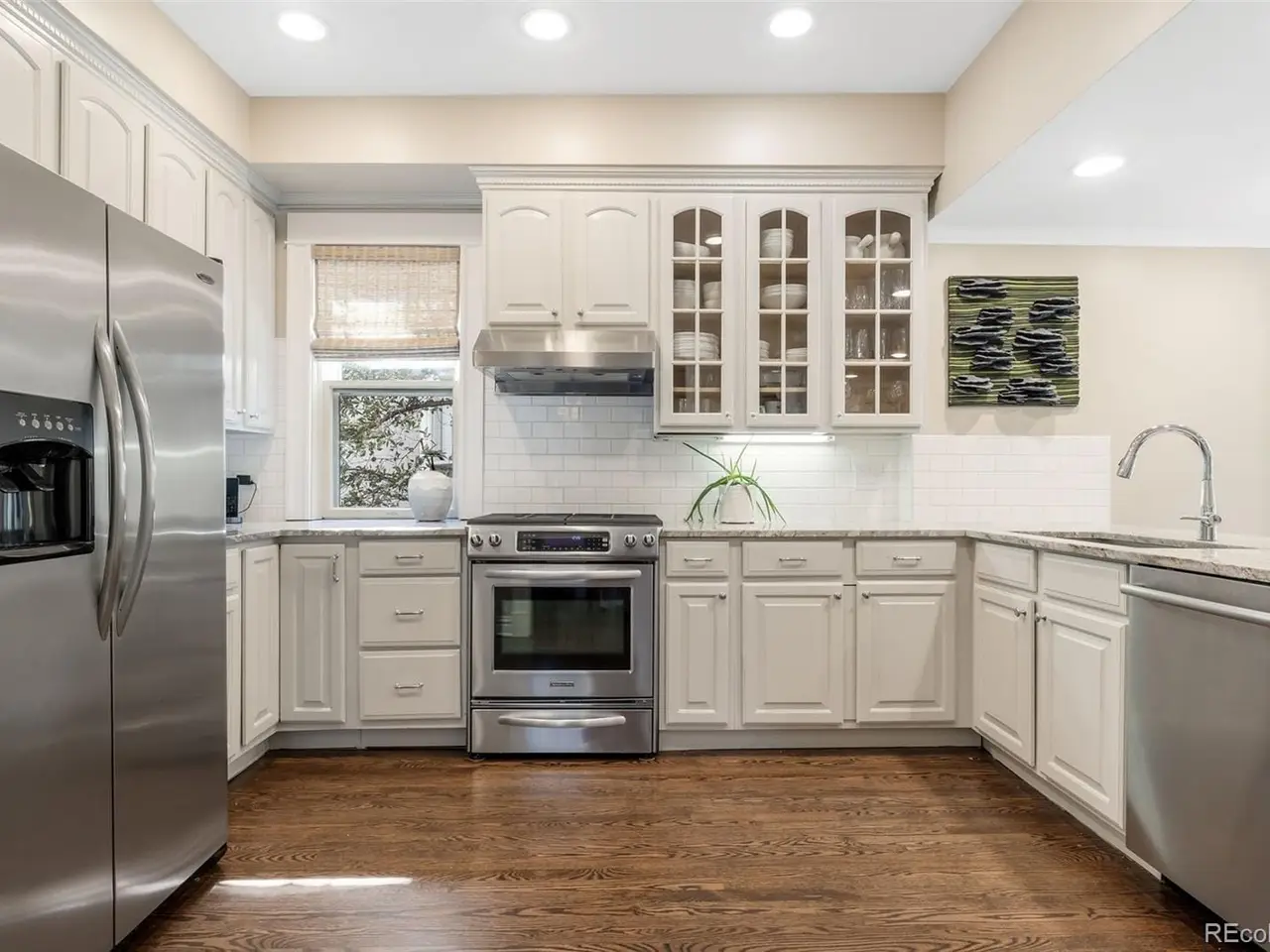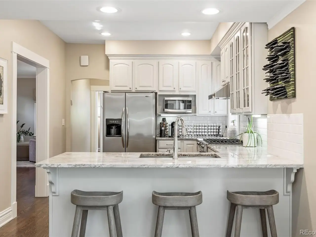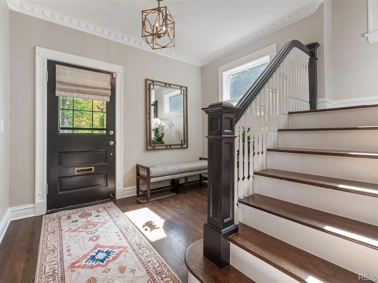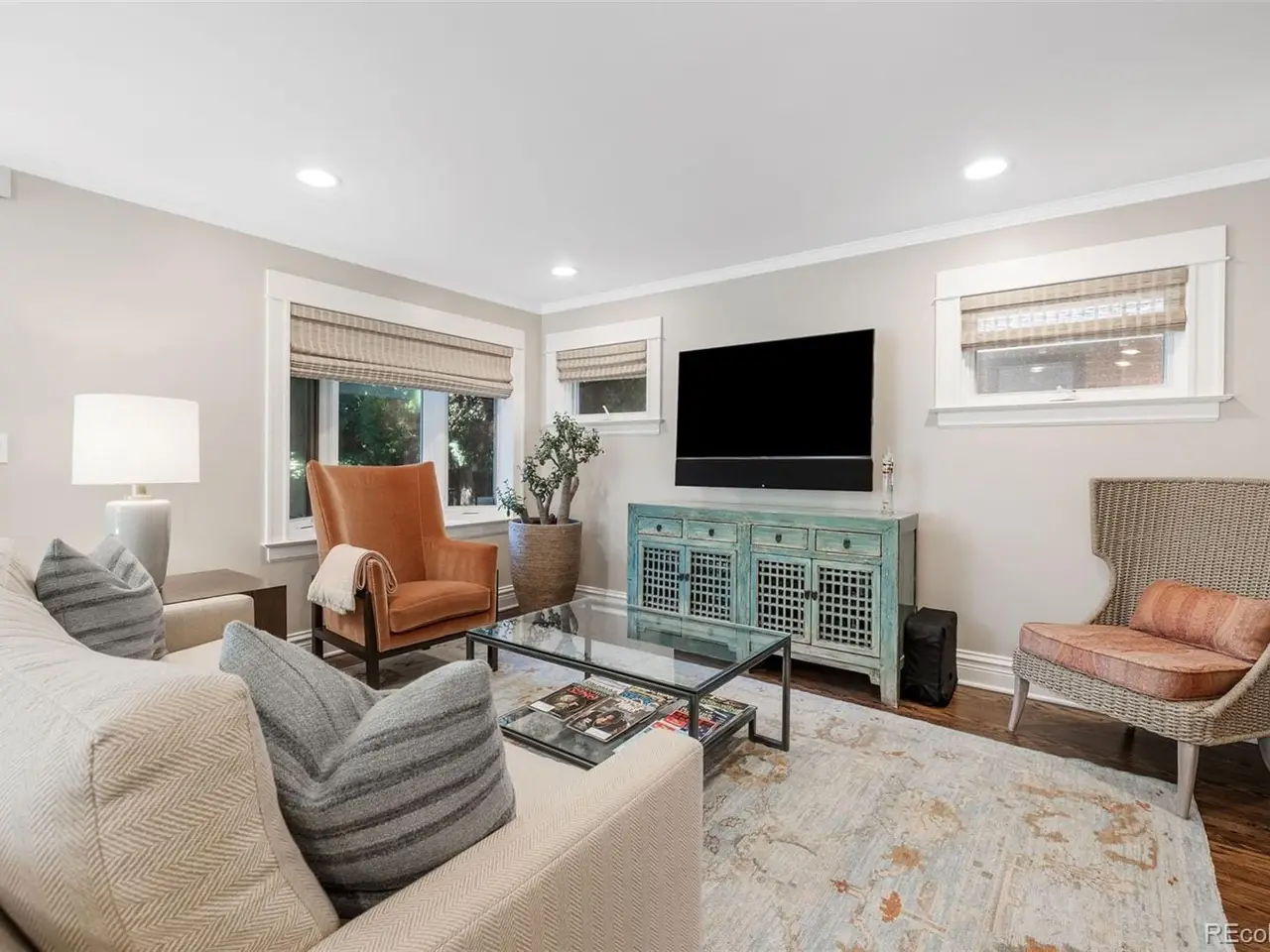 Built in 1913, this updated residence combines historic charm with modern upgrades throughout. Warm and inviting, the front porch opens into a welcoming foyer with a beautiful, classic staircase, a generous living room featuring a gas fireplace, as well as a spacious dining room with bay window. Rich in character with a fresh, modern style, the interior is filled with sunshine and accented by gorgeous hardwood floors, crown molding, high ceilings, plus a new powder room with designer wallpaper on the main level. The heart of the home is the great room, the perfect gathering place where hosting friends and family is a breeze. Open to a well-equipped kitchen, highlighted by attractive white cabinetry, stainless steel appliances, breakfast bar and adjacent breakfast area with built-in banquette seating. The mudroom offers a bench and built-in cabinetry, and leads outdoors to a delightful brick-pavered patio and private, treed backyard. Upstairs, the primary suite is a cozy retreat with a sky-lit vaulted ceiling, private balcony overlooking the yard, walk-in closet and new en suite bath with radiant floor heat. Two additional bedrooms are found on the second floor, each with a walk-in closet, plus a lovely full bath. Huge laundry room and ample storage are located on the lower level. Offering a rare chance to own a piece of Denver's vibrant culture within the East Seventh Avenue Historic District, this home is just minutes to nearby parks, Denver Botanic Gardens, Downtown, as well as the world-class dining and shopping of Cherry Creek.