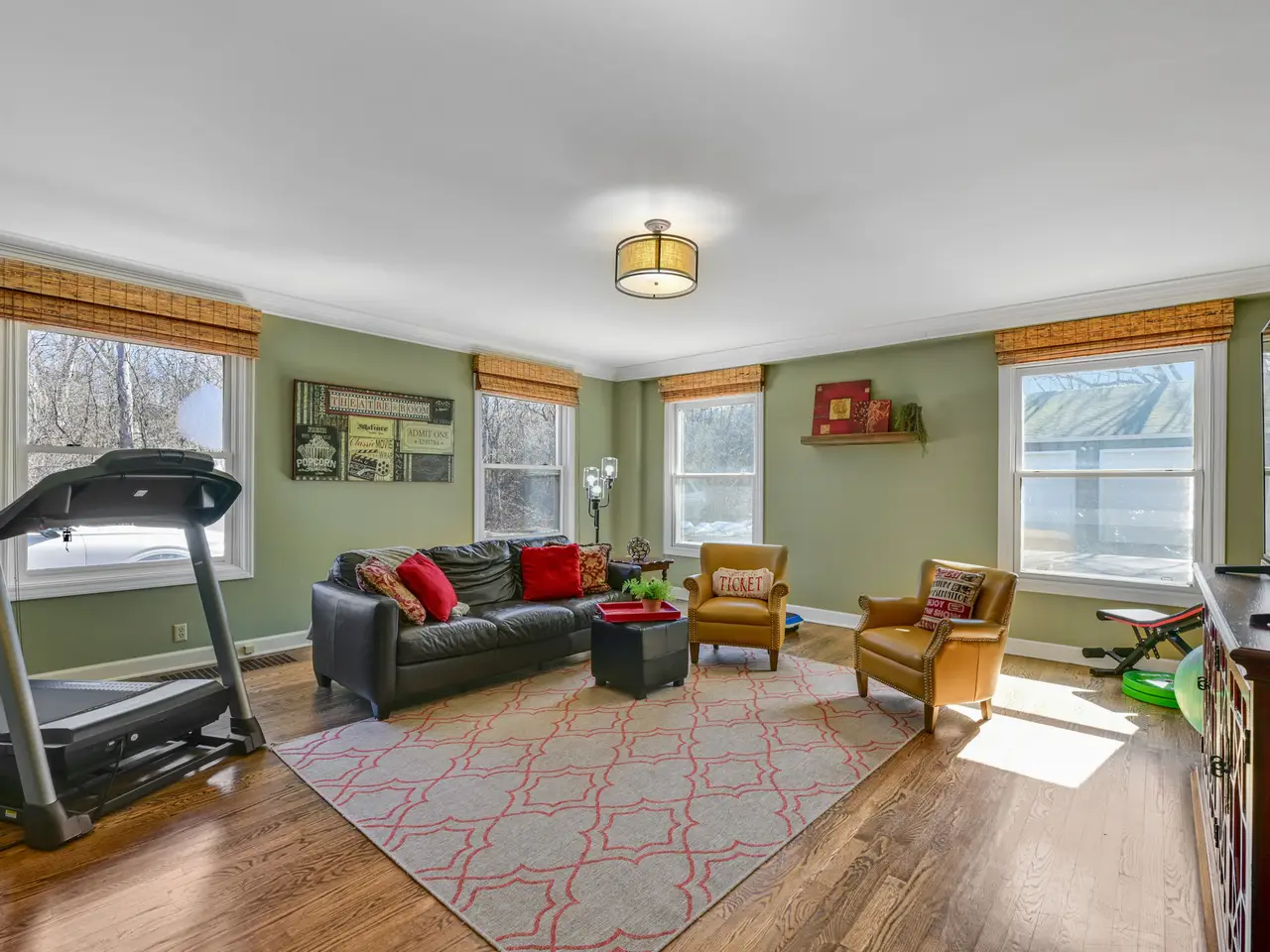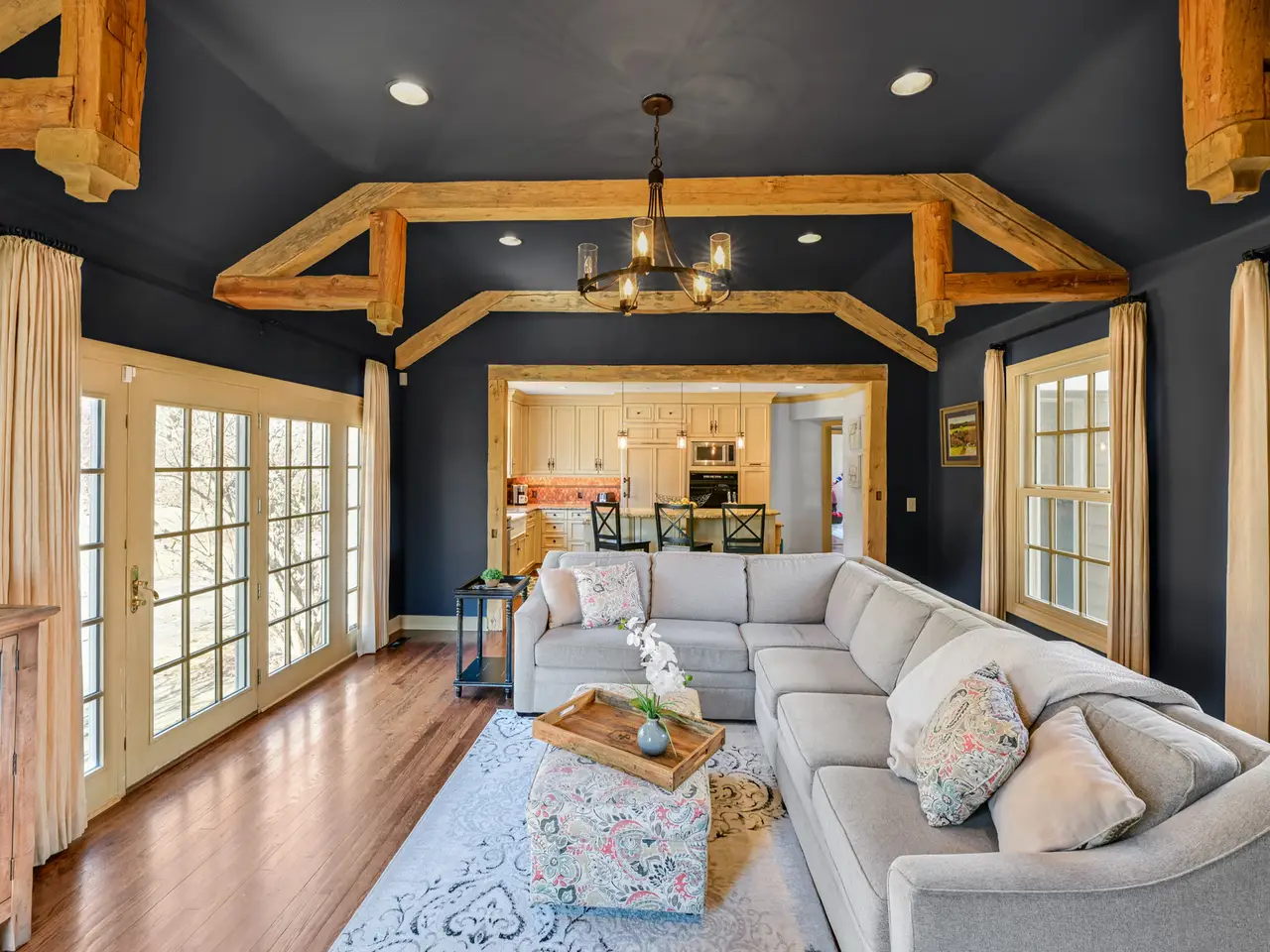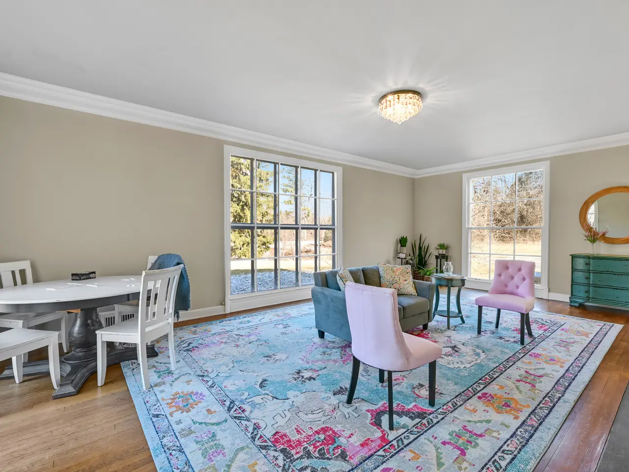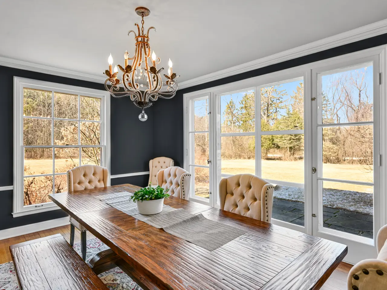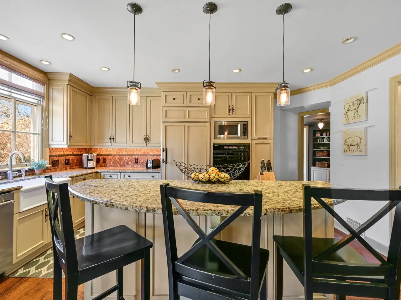 Nestled on over five acres of lush, professionally landscaped grounds, this breathtaking estate, designed by renowned architect Van Alyea, exudes timeless elegance and sophistication. From the moment you arrive, a meticulously crafted covered entry welcomes you into an impressive circular foyer, setting the stage for the grandeur that lies within. Every inch of this home is adorned with exquisite details, including elegant crown moldings, wood-burning fireplaces, built-in bookcases, and a stunning Butler's pantry. Expansive windows bathe the interiors in natural light while offering picturesque views of the serene landscape. The spacious eat-in kitchen, equipped with high-end appliances, seamlessly connects to the inviting family room, where a cozy fireplace creates the perfect gathering space. A patio door leads to a generous bluestone patio, ideal for outdoor entertaining. Designed for both comfort and functionality, the home features a game room, media room, formal dining and living rooms, and a thoughtfully designed family room-each space curated for relaxation and effortless hosting. The unique laundry room doubles as a craft space, lined with bookshelves to enhance its versatility. With two luxurious en suites and both attached and detached garages, this exceptional residence provides ample accommodations for family and guests. The expansive property offers both privacy and room to explore, blending architectural brilliance with the natural beauty of its surroundings, including a secluded wooded lot. Extensive list of updates. An extraordinary opportunity to own a piece of architectural history in one of the area's most prestigious locations, this estate is truly one of a kind.
