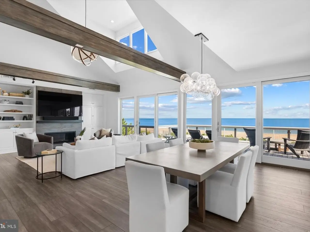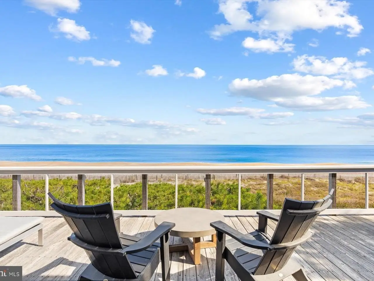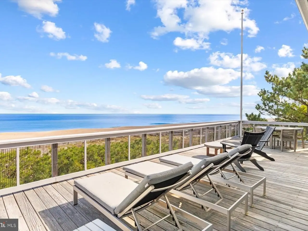 Incredible Oceanfront retreat with 150 feet of sweeping beachfront. This home is situated on one of the largest oceanfront parcels on the Delaware Coast. Recently updated, this home perfectly blends timeless architecture with sophisticated coastal style. Soaring ceilings with exposed beams, crisp white walls, and rich dark floors create the perfect backdrop for the brilliant blue ocean that is seen through nearly every glass door and window of the home. Designed for easy gatherings with family and friends both inside and out, the open-concept main level showcases breathtaking ocean views from the living, dining, and kitchen areas, which lead to the oceanside screened porch and deck. The main level also features an expansive primary suite where you can watch the sunrise through oversized glass doors. The custom walk-in closet with built-in cabinetry leads to a luxurious spa-like bath complete with a jetted soaking tub and a walk-in tiled shower. Nearby, a media room can also be used for additional sleeping space or converted to a bedroom with a beautiful, adjacent full bathroom. Take the elevator or stairs to the upper level, where you'll find four additional rooms and two full baths. Two bedrooms are oceanfront, each with its own private balcony. On the lower level, you'll find an exercise room, a bedroom currently used as a den, and a full bath. There's also a spacious laundry room with a sink, two outdoor showers, and an oversized garage with ample storage - most importantly, the private walkway leading directly to the beach. Located within a sought-after community offering ocean and bay access, tennis courts, and a marina, this remarkable home is a perfect balance of recreation and relaxation.