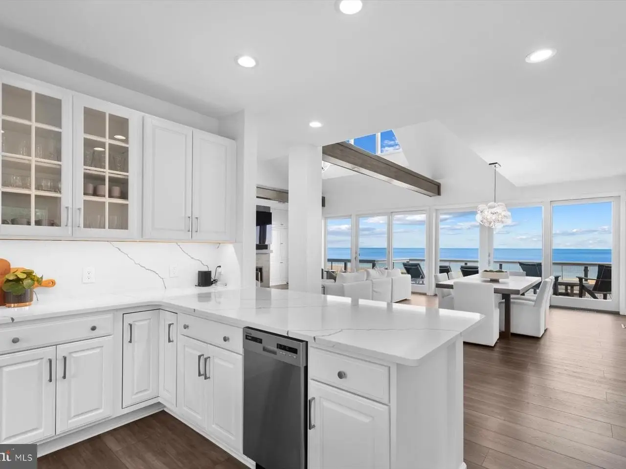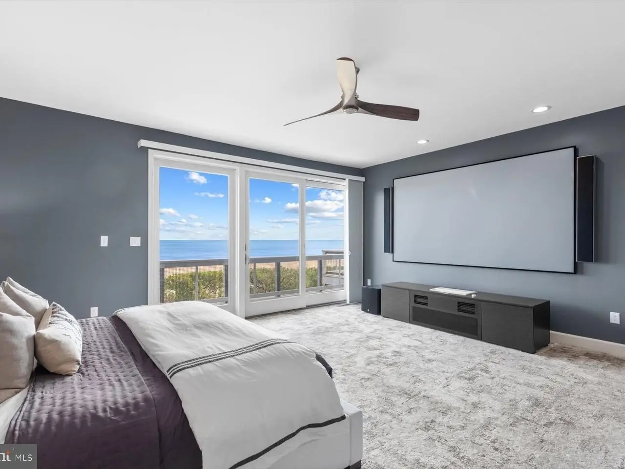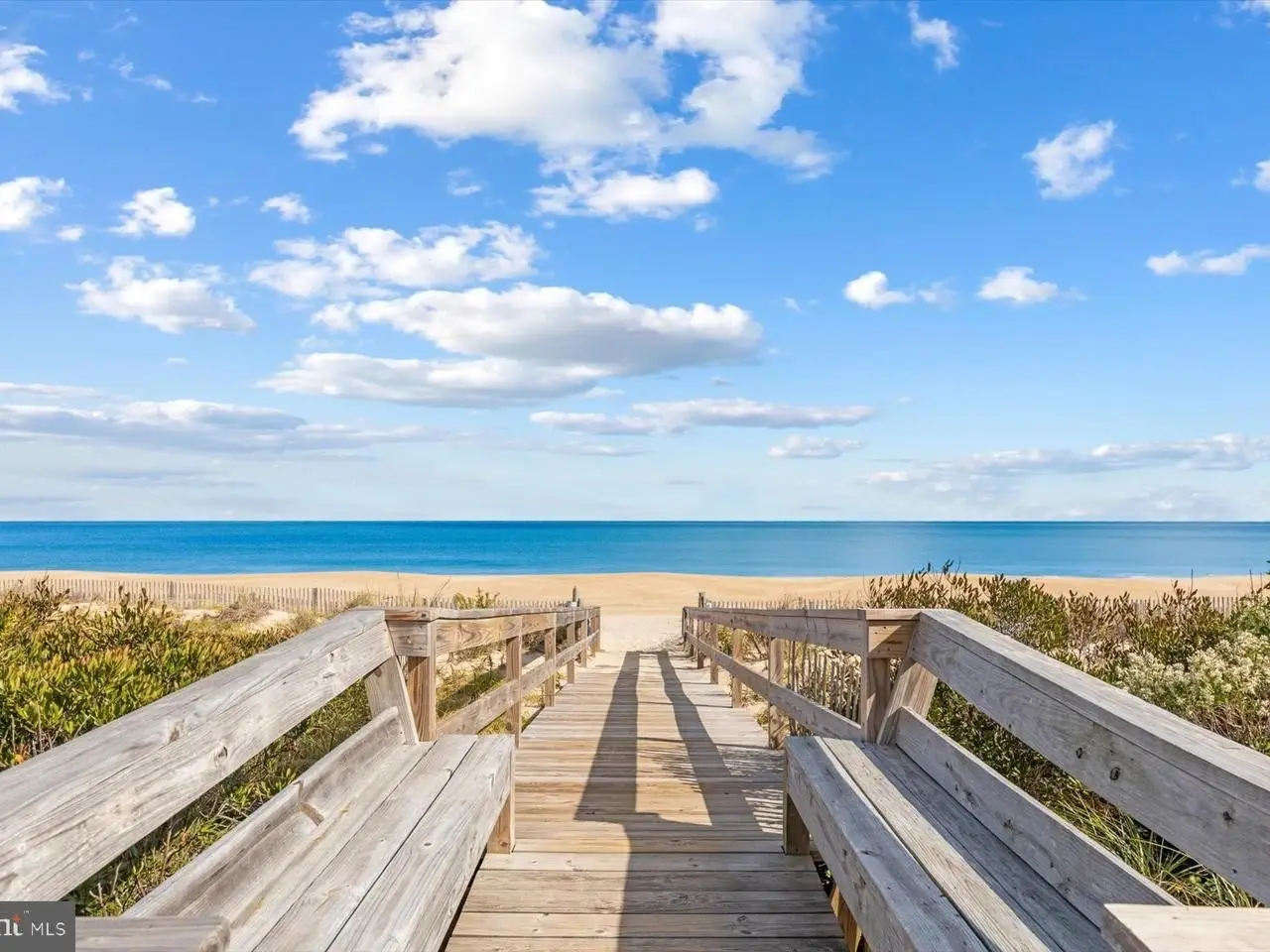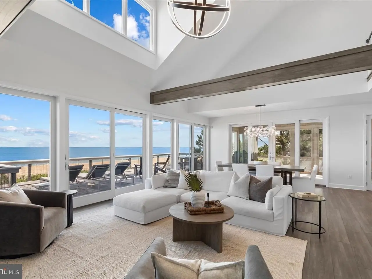Incredible Oceanfront retreat with 150 feet of sweeping beachfront. This home is situated on one of the largest oceanfront parcels on the Delaware Coast. Recently updated, this home perfectly blends timeless architecture with sophisticated coastal style. Soaring ceilings with exposed beams, crisp white walls, and rich dark floors create the perfect backdrop for the brilliant blue ocean that is seen through nearly every glass door and window of the home. Designed for easy gatherings with family and friends both inside and out, the open-concept main level showcases breathtaking ocean views from the living, dining, and kitchen areas, which lead to the oceanside screened porch and deck. The main level also features an expansive primary suite where you can watch the sunrise through oversized glass doors. The custom walk-in closet with built-in cabinetry leads to a luxurious spa-like bath complete with a jetted soaking tub and a walk-in tiled shower. Nearby, a media room can also be used for additional sleeping space or converted to a bedroom with a beautiful, adjacent full bathroom. Take the elevator or stairs to the upper level, where you'll find four additional rooms and two full baths. Two bedrooms are oceanfront, each with its own private balcony. On the lower level, you'll find an exercise room, a bedroom currently used as a den, and a full bath. There's also a spacious laundry room with a sink, two outdoor showers, and an oversized garage with ample storage - most importantly, the private walkway leading directly to the beach. Located within a sought-after community offering ocean and bay access, tennis courts, and a marina, this remarkable home is a perfect balance of recreation and relaxation.