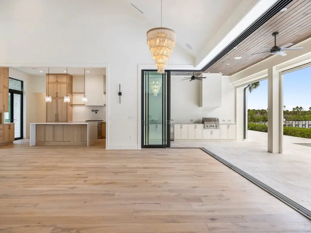 Riverfront Estate sanctuary; your private resort. Elegant luxury meets effortless Florida living. New custom masterpiece boasts 300 feet of direct riverfront on over an acre, a 180-foot dock & boat lift, beckons magical morning fishing & sunset cruises only steps from home! 4,270 sq ft, 4/5 1/2, 3+ car garage, open concept, soaring ceilings, exposed wood beams, 10-ft impact sliders, indoors flow seamlessly outside to a resort-style lanai, pool & spa. 3 fireplaces, state-of-the-art features, and timeless craftsmanshipan experience too extraordinary to describe, yet impossible to forget.