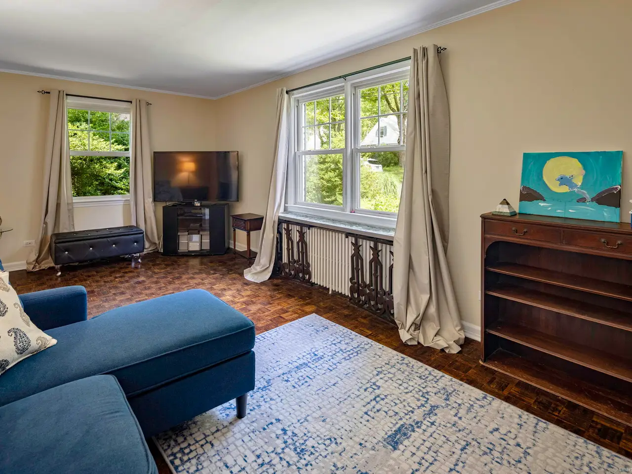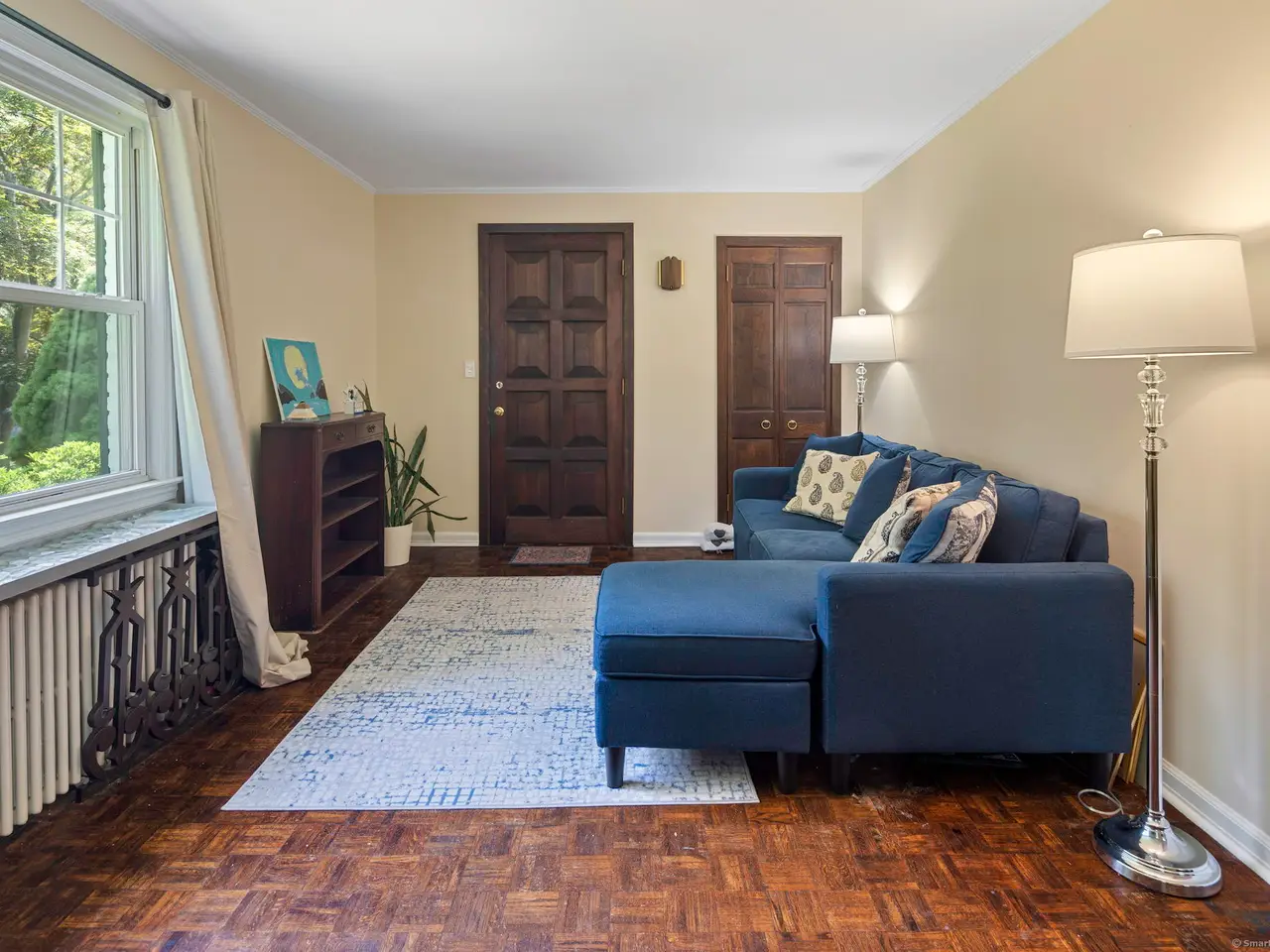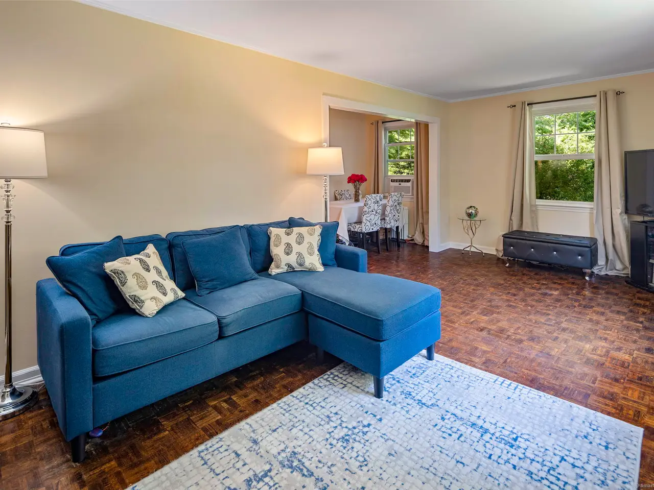 This charming Old Greenwich home in the highly sought-after North Mianus/ Eastern school district is the perfect starter or the best condo alternative. A picturesque setting, this single-family dwelling comes with low property taxes, low maintenance responsibilities and costs. The first floor offers comfortable living and family room spaces, a newer kitchen with quartz countertop and stainless steel appliances, along with 1 bedroom and a new hall bath. The 2nd floor consists of 2 bedrooms (one with spacious cedar closet) and another newer full bath. The private backyard with a bluestone patio provides a serene outdoor environment, surrounded by mature trees and plantings. Many updates throughout the house; all public utilities; home is in R-7 zoning and can be expanded. The location is wonderful as it is quiet and convenient to all that Greenwich has to offer.
