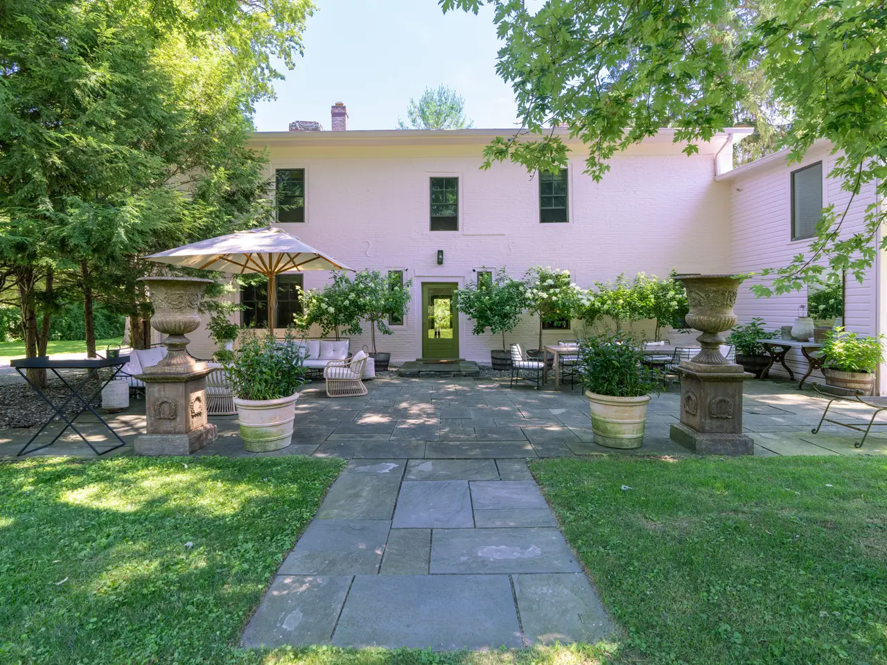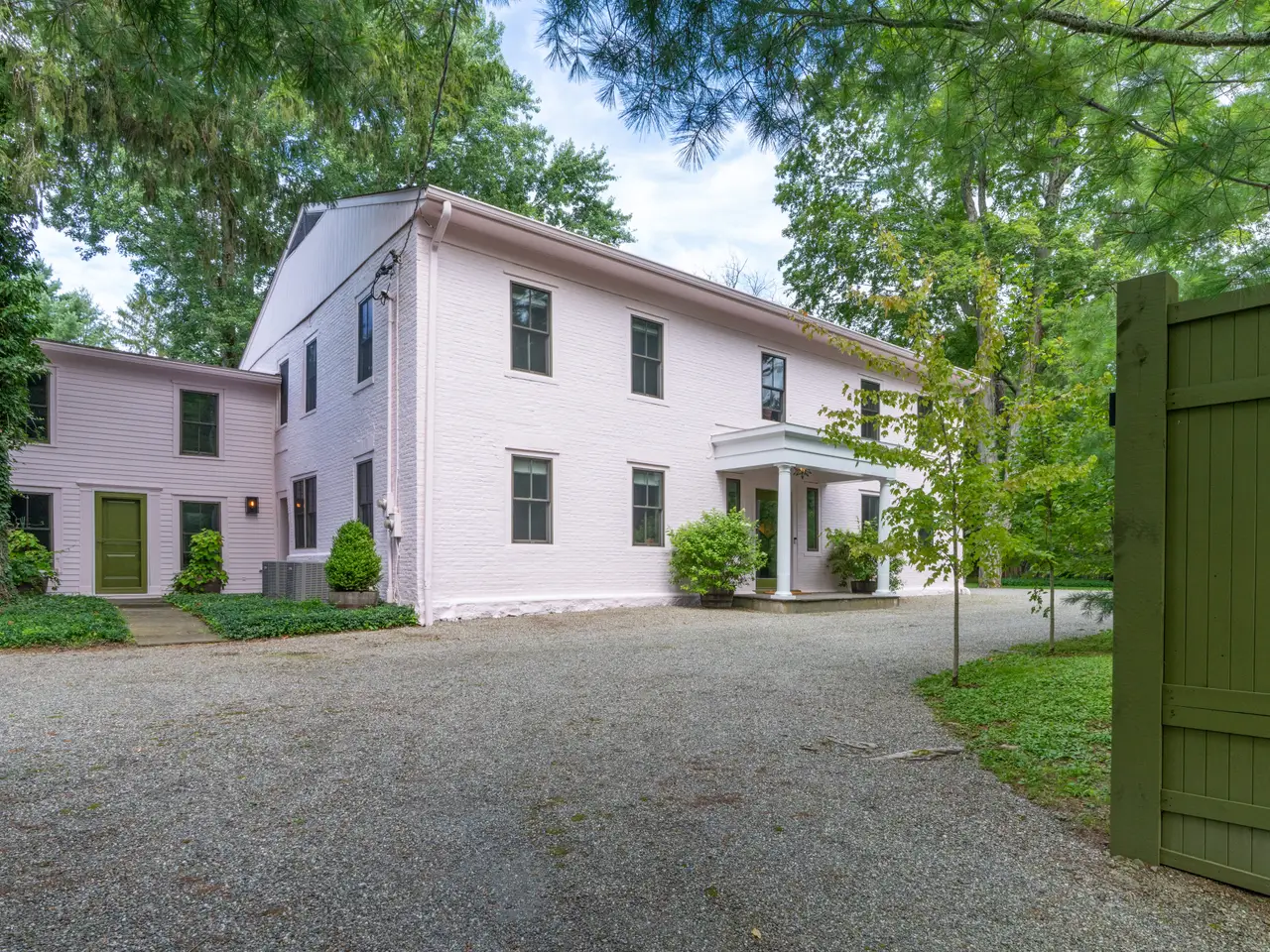 Nestled in the quaint hamlet of Clinton Corners, this rare and tasteful 18th-century Georgian stone house offers classic proportions and timeless charm on beautifully established, landscaped grounds. The home seamlessly blends original architectural details including preserved woodwork, deep sill windows, six fireplaces, refinished floors, and classic Georgian symmetry with modern updates such as central air, new windows, and a dramatic wall of windows overlooking the terrace. A 10-foot-wide hallway runs the length of both floors, with Dutch doors at either end, leading to well-appointed rooms including a formal living room, dining room, TV/family room, and a large kitchen all with fireplaces plus a full bathroom on the main level. The attached cottage adds functionality with a mudroom/laundry area, second kitchen, sunroom, studio space, and an additional bedroom and bathroom on the upper level. In the main house, the second floor features four spacious bedrooms and two full bathrooms. Surrounded by mature trees, high fencing, and rolling countryside, this meticulously maintained property is just 10 minutes from Millbrook, 20 minutes from Rhinebeck, and close to all that the Hudson Valley has to offer making it the perfect full-time residence or idyllic weekend retreat.