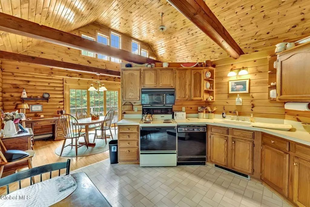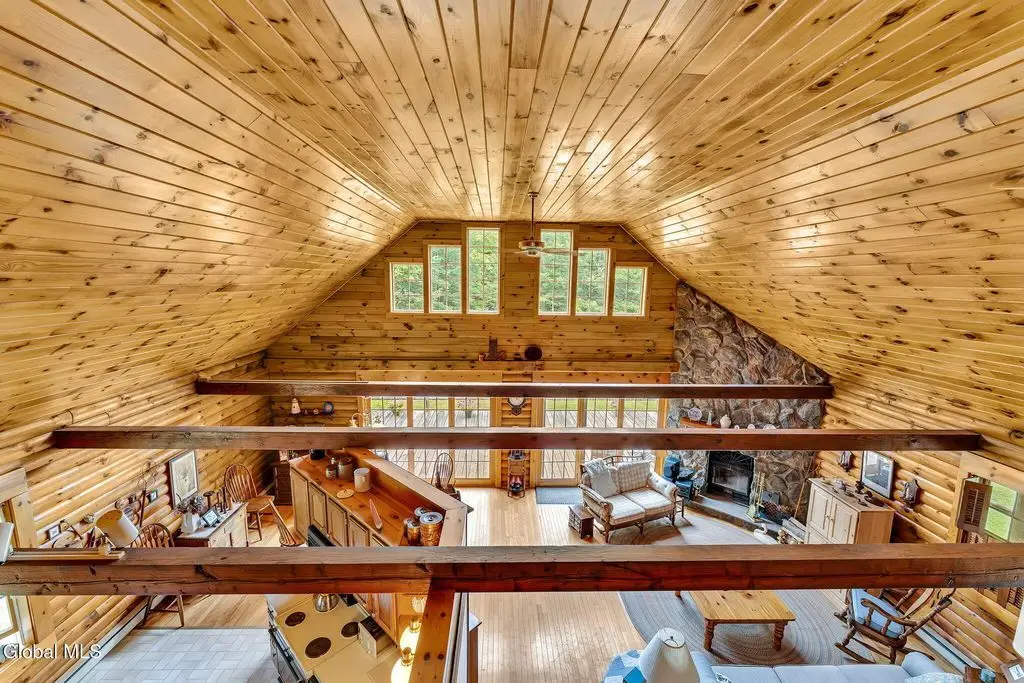 UNIQUE PRIVATE SECLUDED, these TWO BEAVER MOUNTAIN LOG HOMES have been a fulltime family residence for years. On 50 acres, they have individual systems for septic, well, and underground electric. Main house is approx 3796 SF. Spacious first floor includes living room/library, a formal dining room, the eat in kitchen, half bath, and small office. Also off the kitchen is a laundry/ mud room with ingress/egress from outside. Continuing to the opposite end is the large family room. Upstairs is a large master suite with ensuite bath and 3 more bedroom and a full bath. The second log is appox 2432 SF. The main floor is comprised of an open concept cathedral ceiling living room/dining room with stone fireplace (wood) and sliders leading out to the deck. 2.5 hours from NYC and an hour from Albany