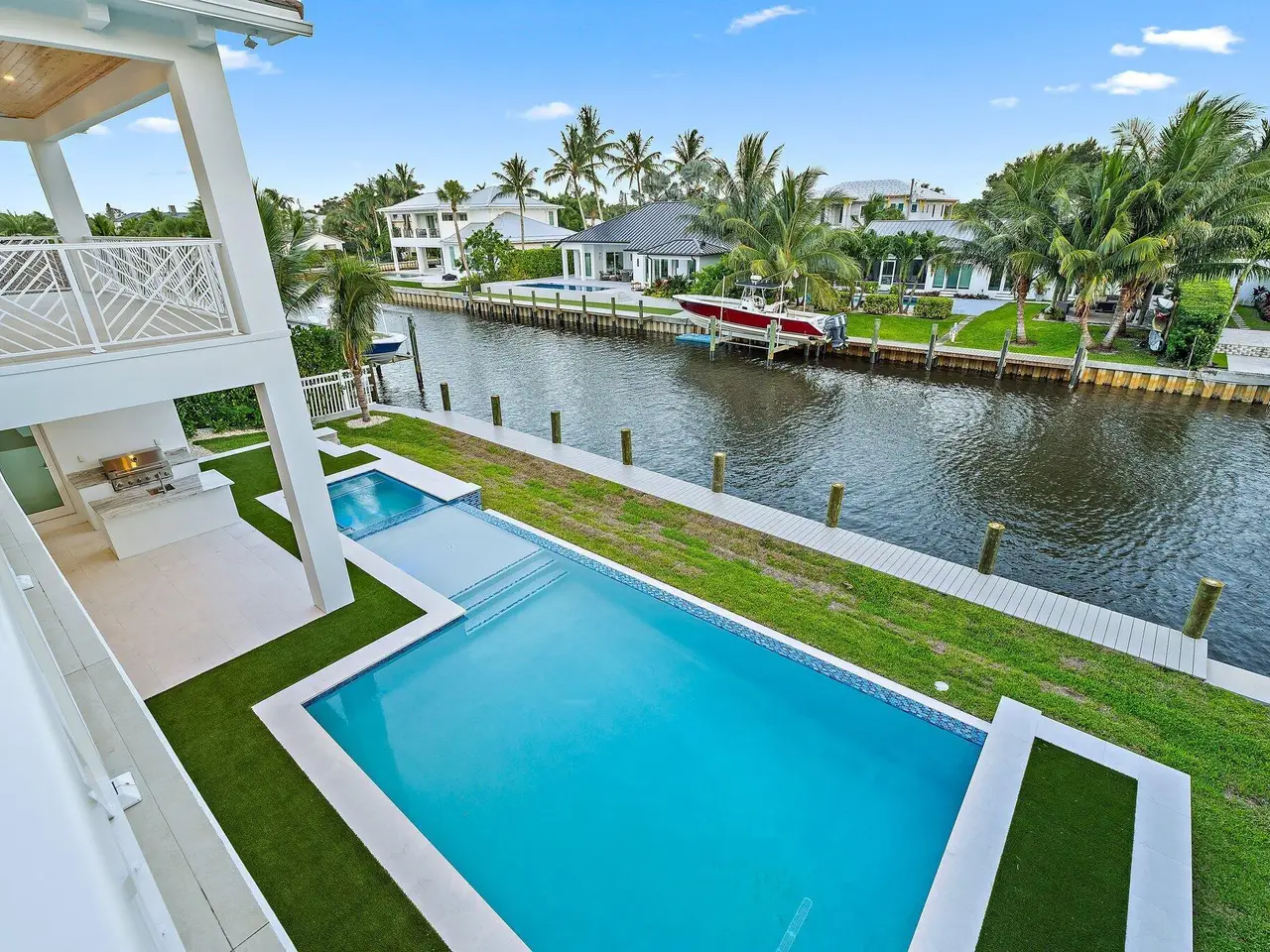 Experience luxury coastal living in this brand new, breathtaking waterfront home, thoughtfully designed to capture sweeping water views from every room. With an ideal location in Tequesta being a short boat ride to the inlet and quick golf cart ride to two golf clubs. Home is over 5,000 living sqft 4 bedroom and 5 bath with infinity edge pool brand new seawall dock and three car garage.