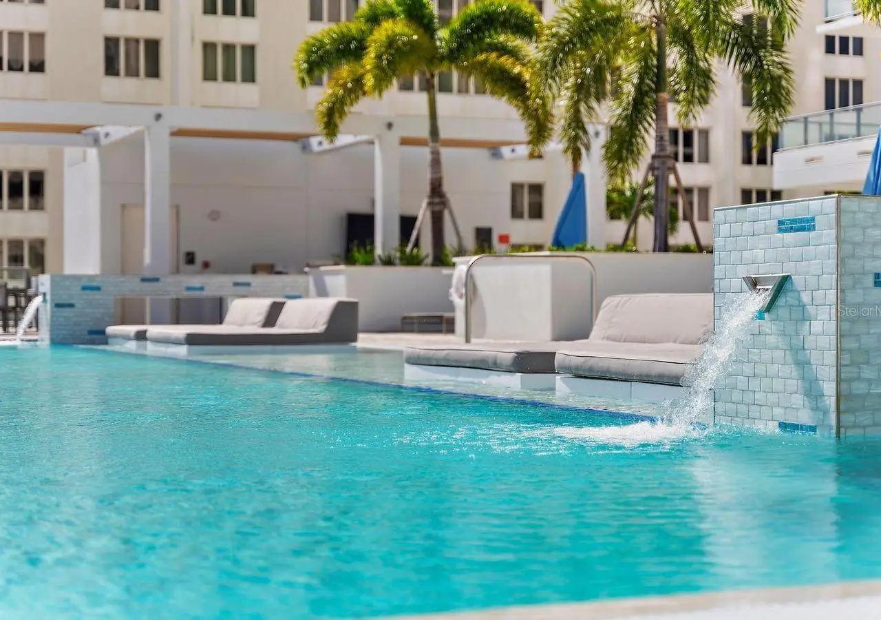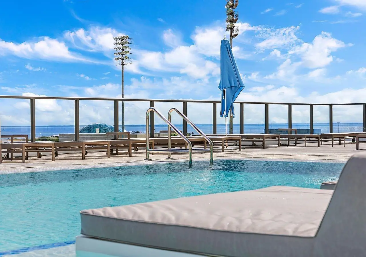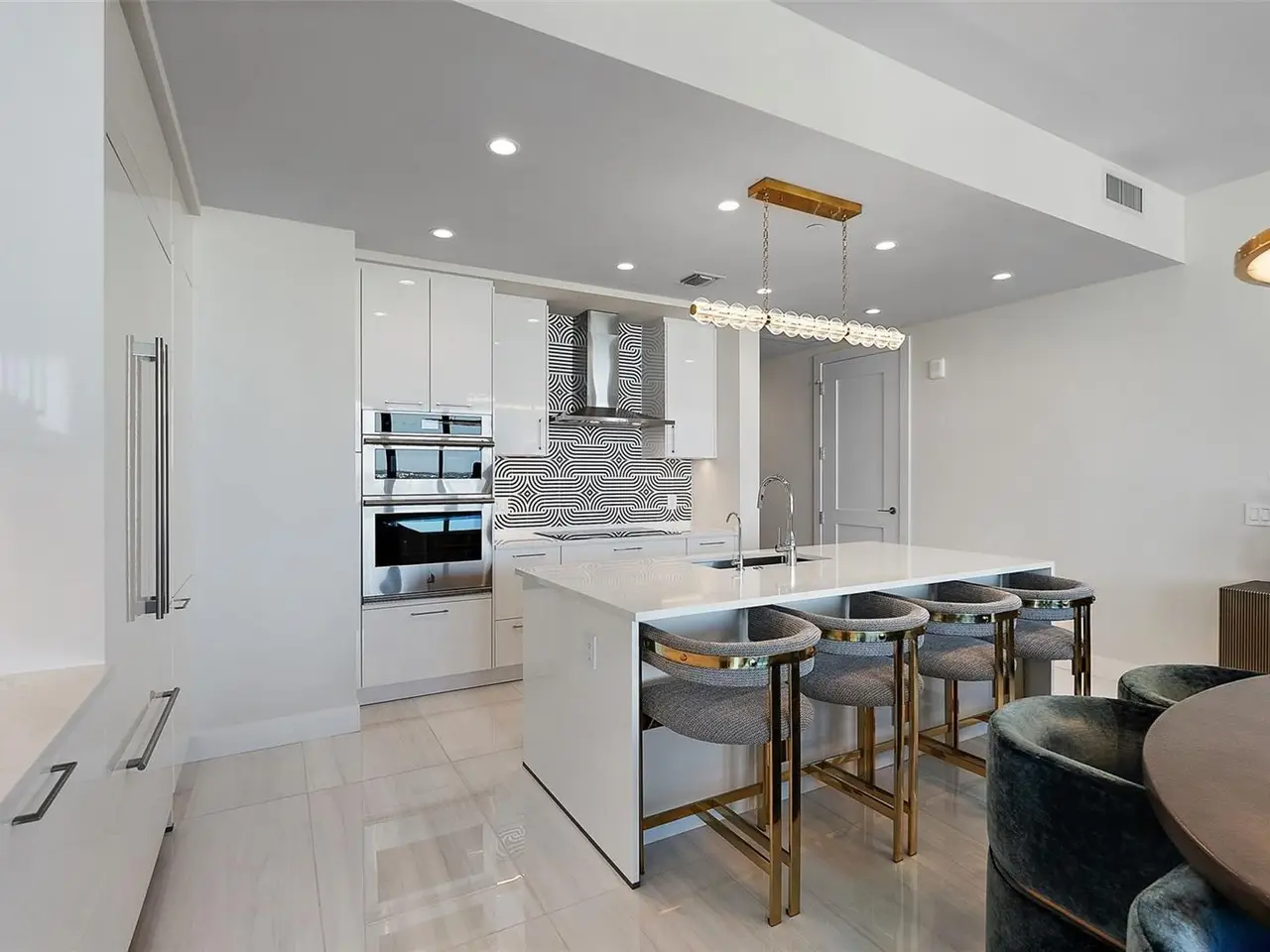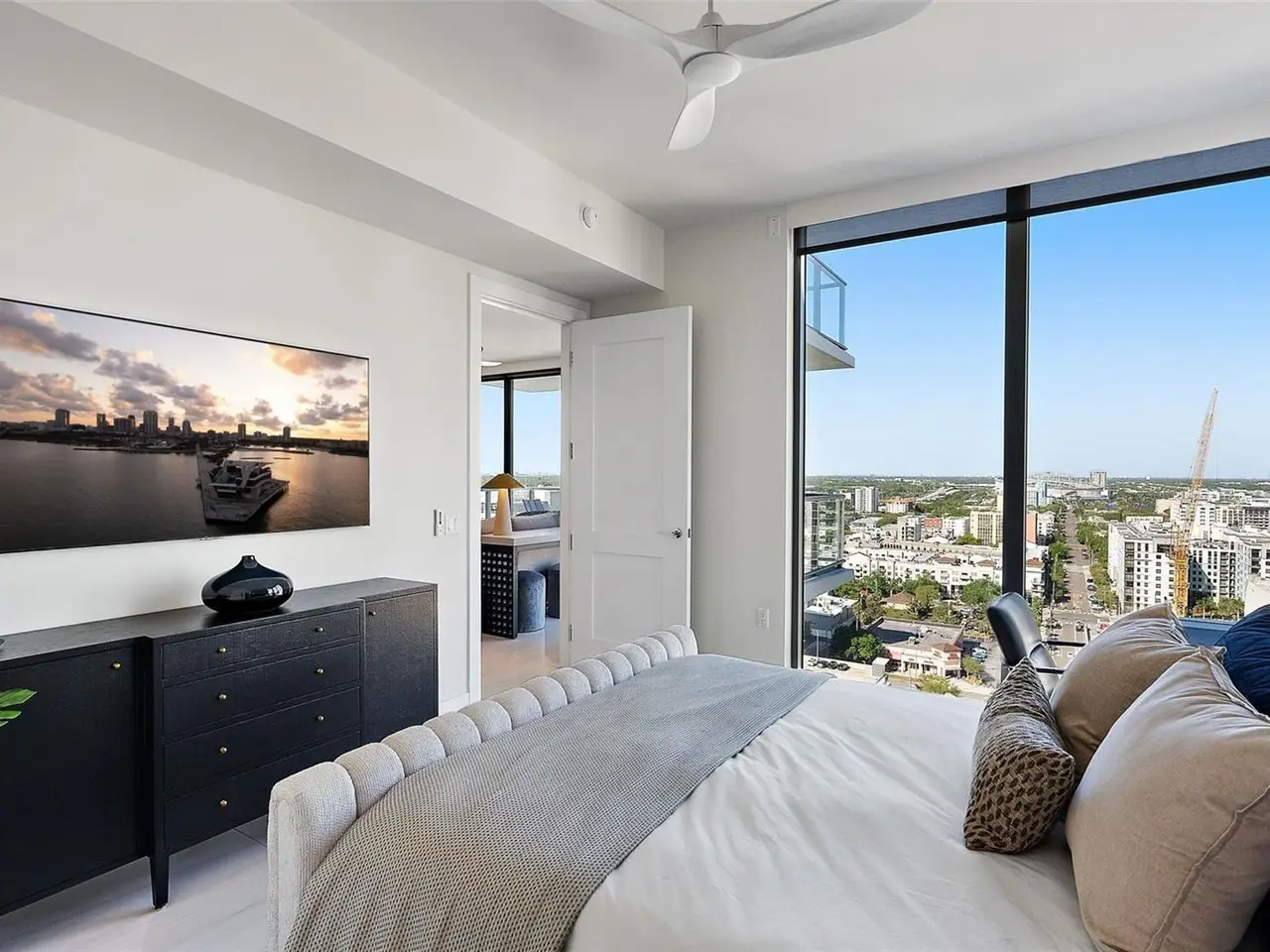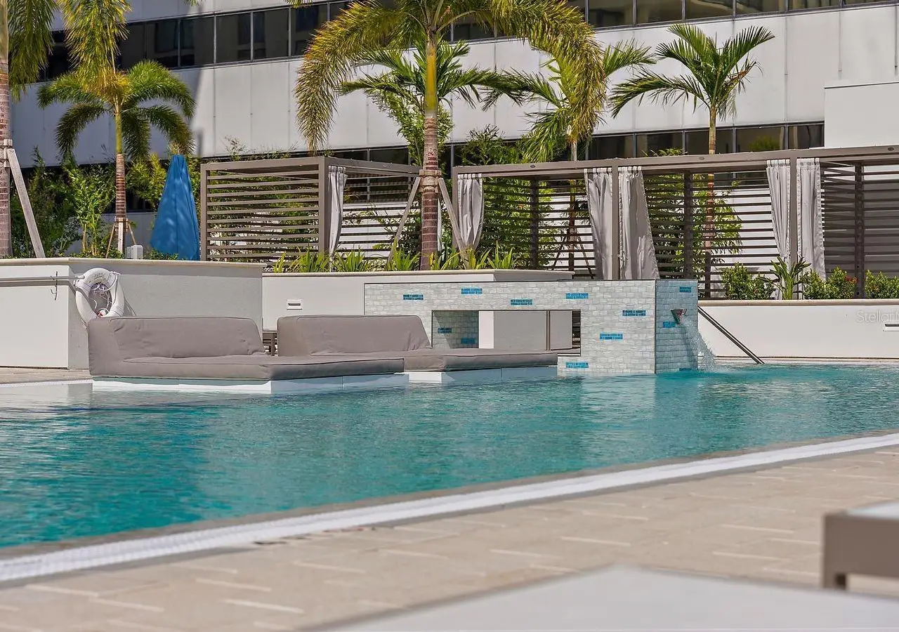 Step into a world of unparalleled luxury and refined design in this newly constructed two-bedroom plus den, two-and-a-half-bath condo at Saltaire. Offering an impressive 1,663 square feet of interior space and a nearly 200-square-foot balcony, this home is the perfect blend of elegance and modern sophistication. With sweeping south-facing views that span from Tampa Bay to the east and the Gulf to the west, you'll enjoy breathtaking vistas from sunrise to sunset. Curated by the acclaimed local design team at Bee Studio Design, this residence features custom finishes and the finest attention to detail. The gourmet kitchen is a chef's dream, complete with top-of-the-line appliances, sleek countertops, a custom backsplash, and a wine fridge paired with a stylish bar area for the ultimate entertaining experience. The designer lighting throughout the home enhances every space, casting a warm glow that complements the chic modern aesthetic. The spacious, airy layout flows seamlessly into the living and dining areas, perfect for both relaxation and entertaining. The versatile den offers endless possibilities, from a home office to a cozy reading nook or media room. Each of the spacious bedrooms is a private retreat, complete with generous walk-in closets and luxurious ensuite baths featuring the highest-quality finishes. The master suite is a sanctuary, offering direct access to the expansive balcony and stunning views of the bay. The convenient laundry room is designed for added practicality, making day-to-day living a breeze. This exceptional condo also includes two highly sought-after parking spaces and a climate-controlled storage unit for added convenience and peace of mind. Saltaire's resort-style amenities are second to none. Residents enjoy a stunning seventh-floor pool terrace with panoramic views, a state-of-the-art fitness center, elegant club rooms, and a dog park for your furry companions. With the added security and peace of mind of a builder's warranty, this home offers everything you need to live in absolute comfort and style. Perfectly situated in the heart of downtown St. Petersburg, you'll have immediate access to waterfront parks, upscale dining, high-end shopping, and the vibrant energy of city life. This is the elevated downtown lifestyle you've been waiting for!