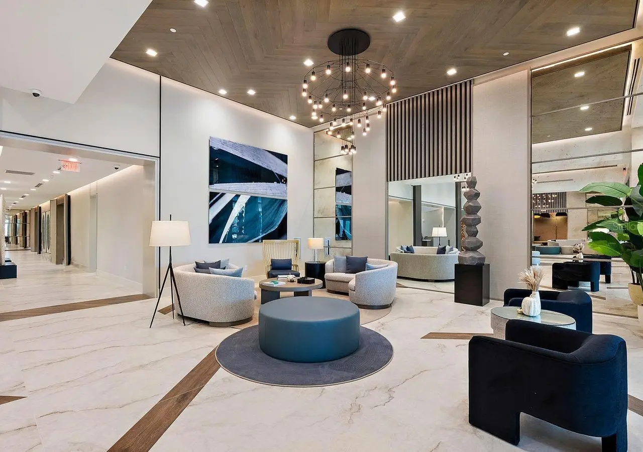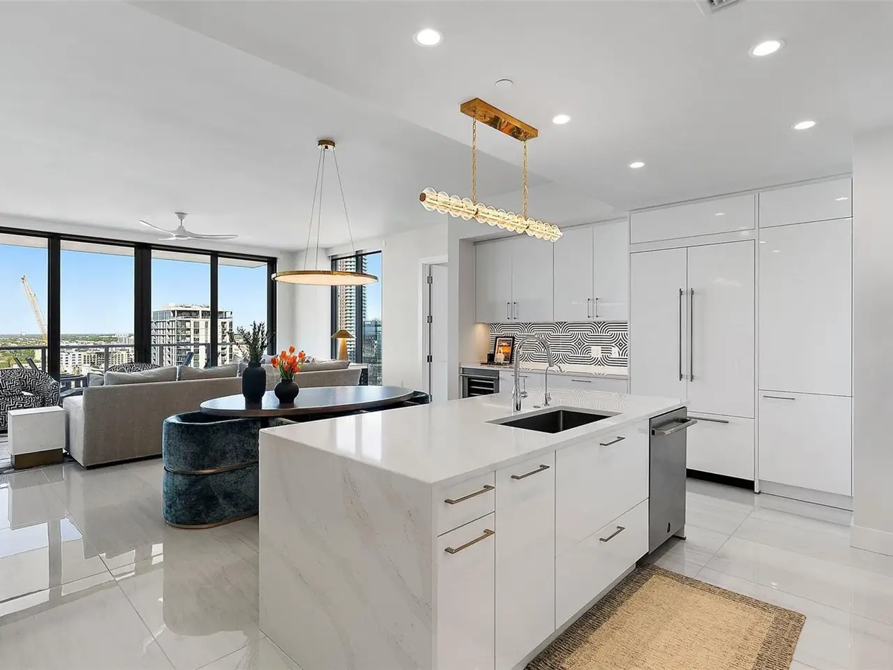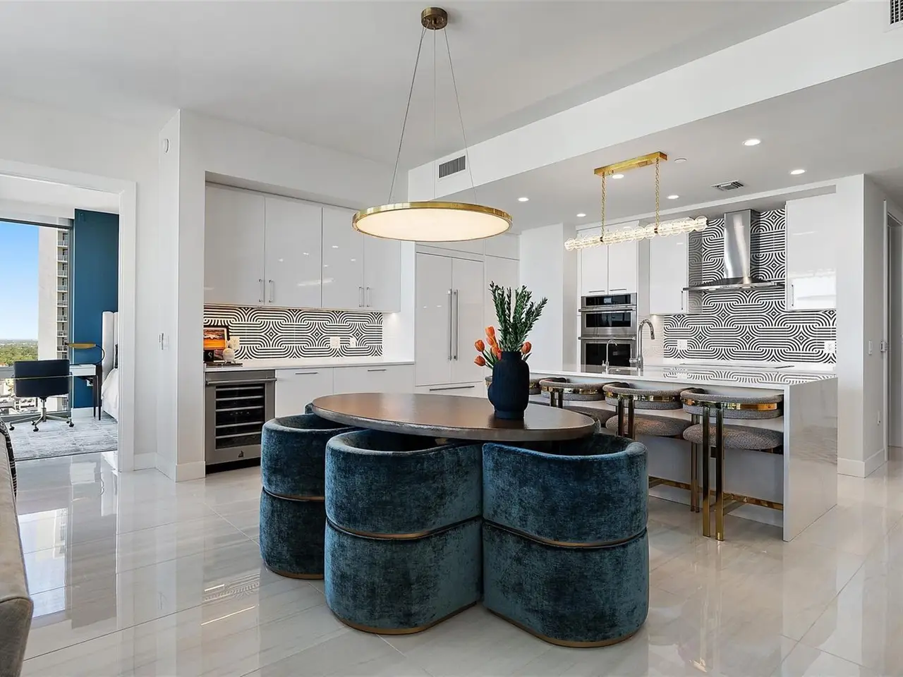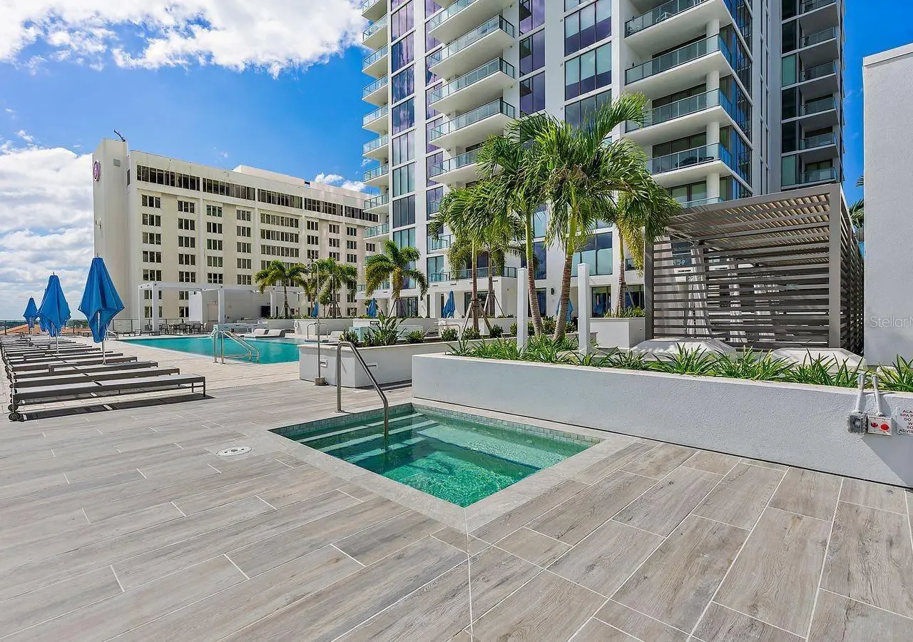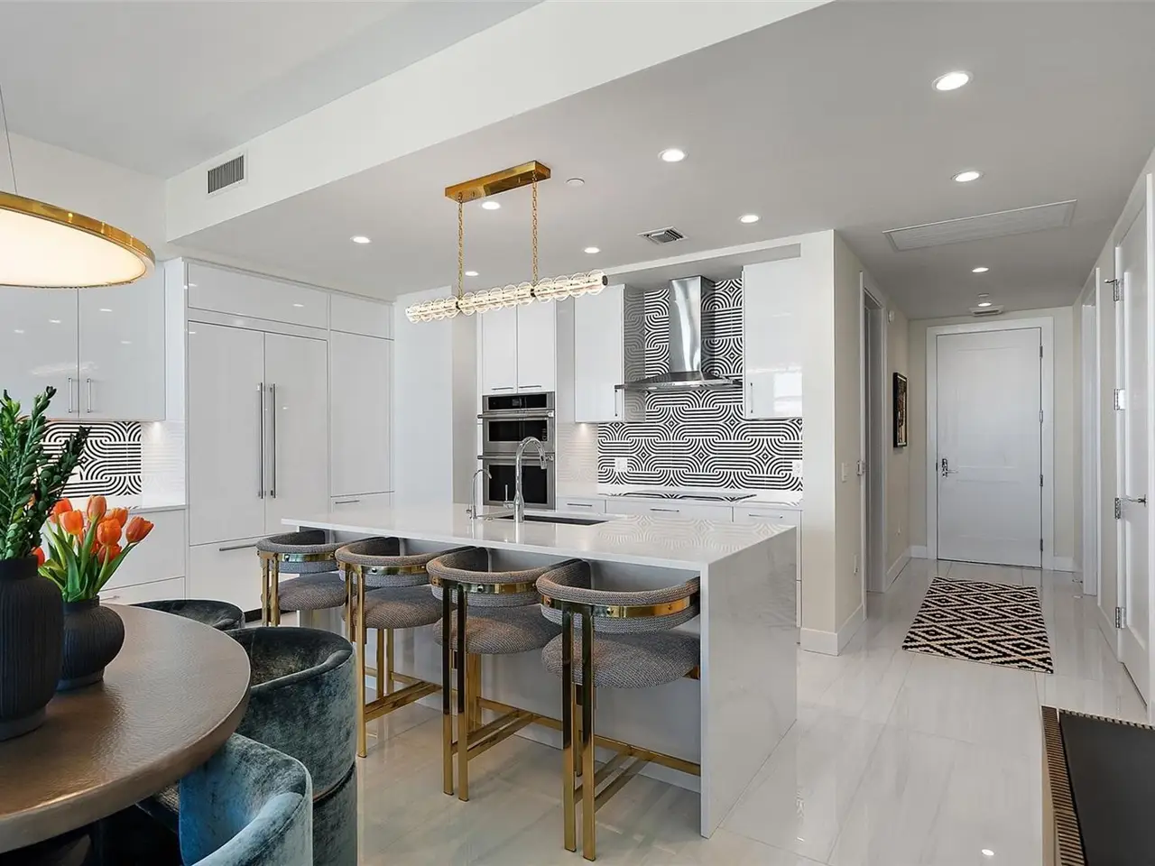 Step into a world of unparalleled luxury and refined design in this newly constructed two-bedroom plus den, two-and-a-half-bath condo at Saltaire. Offering an impressive 1,663 square feet of interior space and a nearly 200-square-foot balcony, this home is the perfect blend of elegance and modern sophistication. With sweeping south-facing views that span from Tampa Bay to the east and the Gulf to the west, you'll enjoy breathtaking vistas from sunrise to sunset. Curated by the acclaimed local design team at Bee Studio Design, this residence features custom finishes and the finest attention to detail. The gourmet kitchen is a chef's dream, complete with top-of-the-line appliances, sleek countertops, a custom backsplash, and a wine fridge paired with a stylish bar area for the ultimate entertaining experience. The designer lighting throughout the home enhances every space, casting a warm glow that complements the chic modern aesthetic. The spacious, airy layout flows seamlessly into the living and dining areas, perfect for both relaxation and entertaining. The versatile den offers endless possibilities, from a home office to a cozy reading nook or media room. Each of the spacious bedrooms is a private retreat, complete with generous walk-in closets and luxurious ensuite baths featuring the highest-quality finishes. The master suite is a sanctuary, offering direct access to the expansive balcony and stunning views of the bay. The convenient laundry room is designed for added practicality, making day-to-day living a breeze. This exceptional condo also includes two highly sought-after parking spaces and a climate-controlled storage unit for added convenience and peace of mind. Saltaire's resort-style amenities are second to none. Residents enjoy a stunning seventh-floor pool terrace with panoramic views, a state-of-the-art fitness center, elegant club rooms, and a dog park for your furry companions. With the added security and peace of mind of a builder's warranty, this home offers everything you need to live in absolute comfort and style. Perfectly situated in the heart of downtown St. Petersburg, you'll have immediate access to waterfront parks, upscale dining, high-end shopping, and the vibrant energy of city life. This is the elevated downtown lifestyle you've been waiting for!