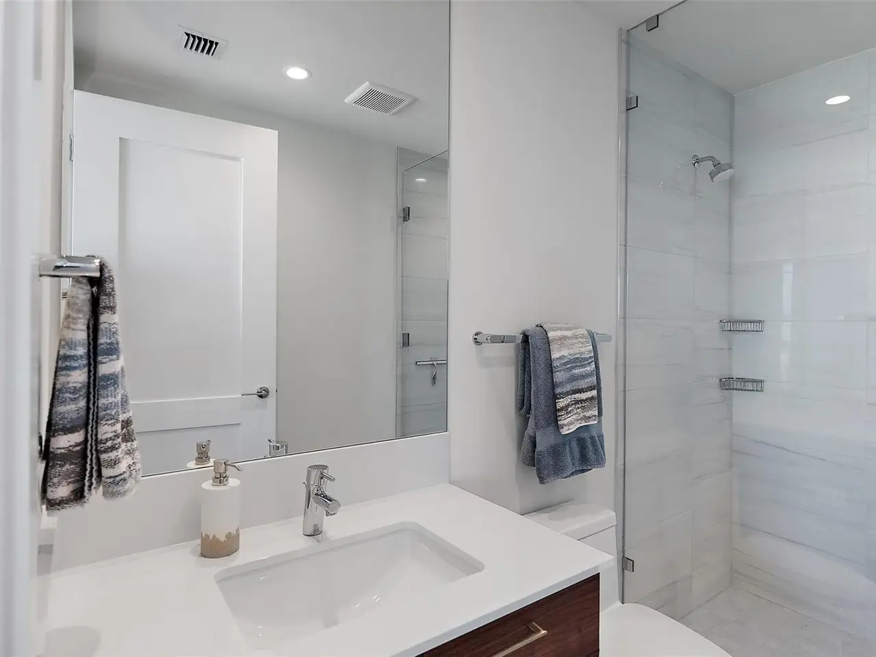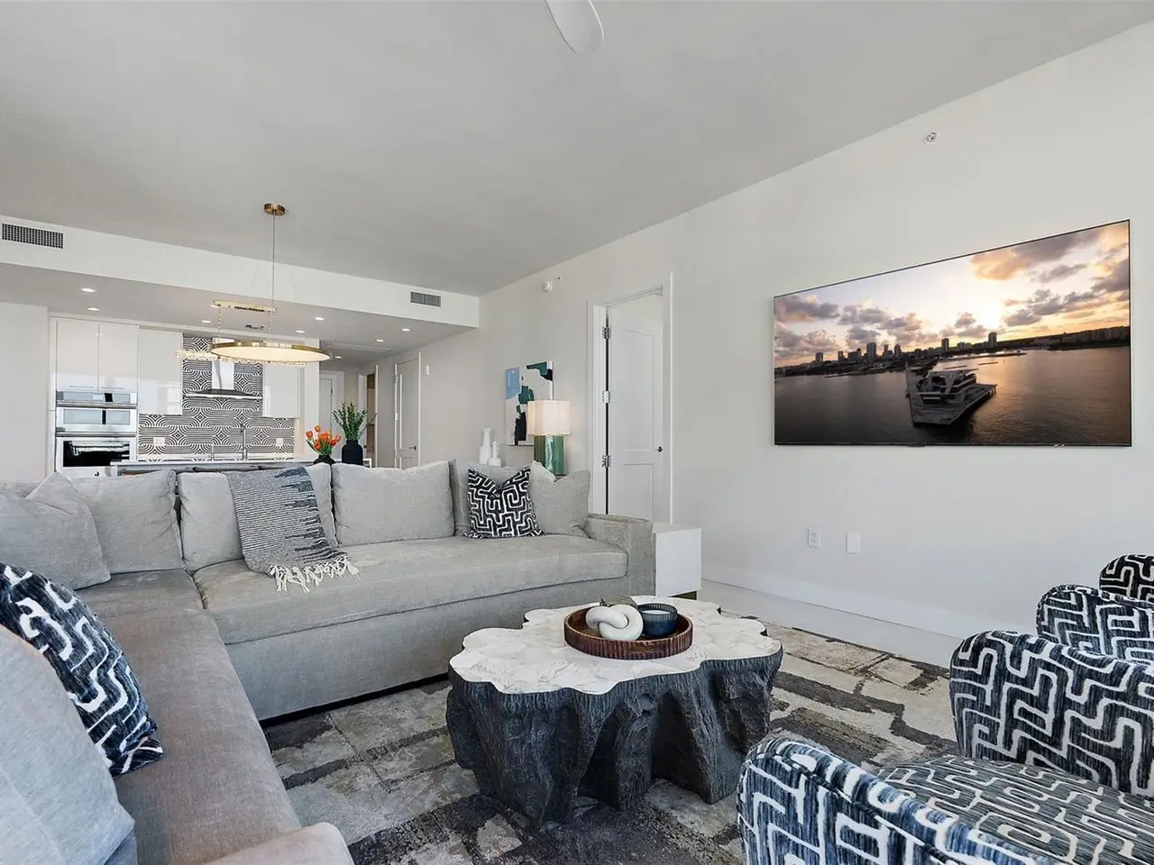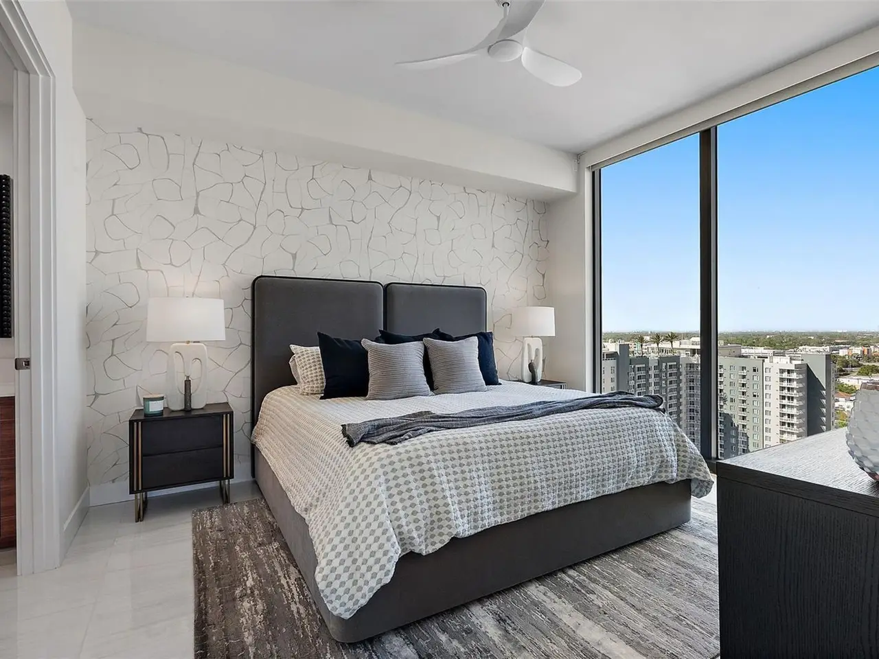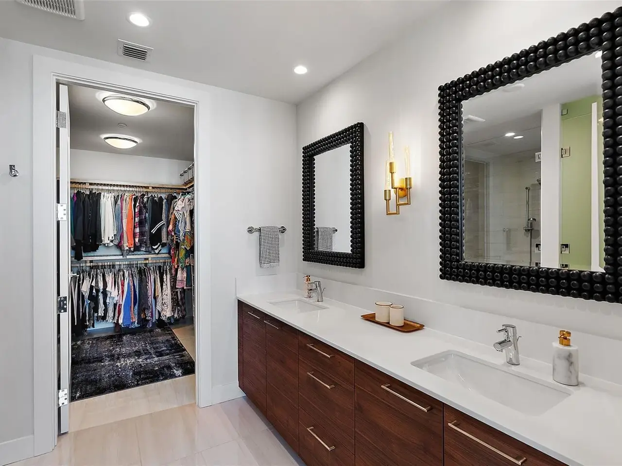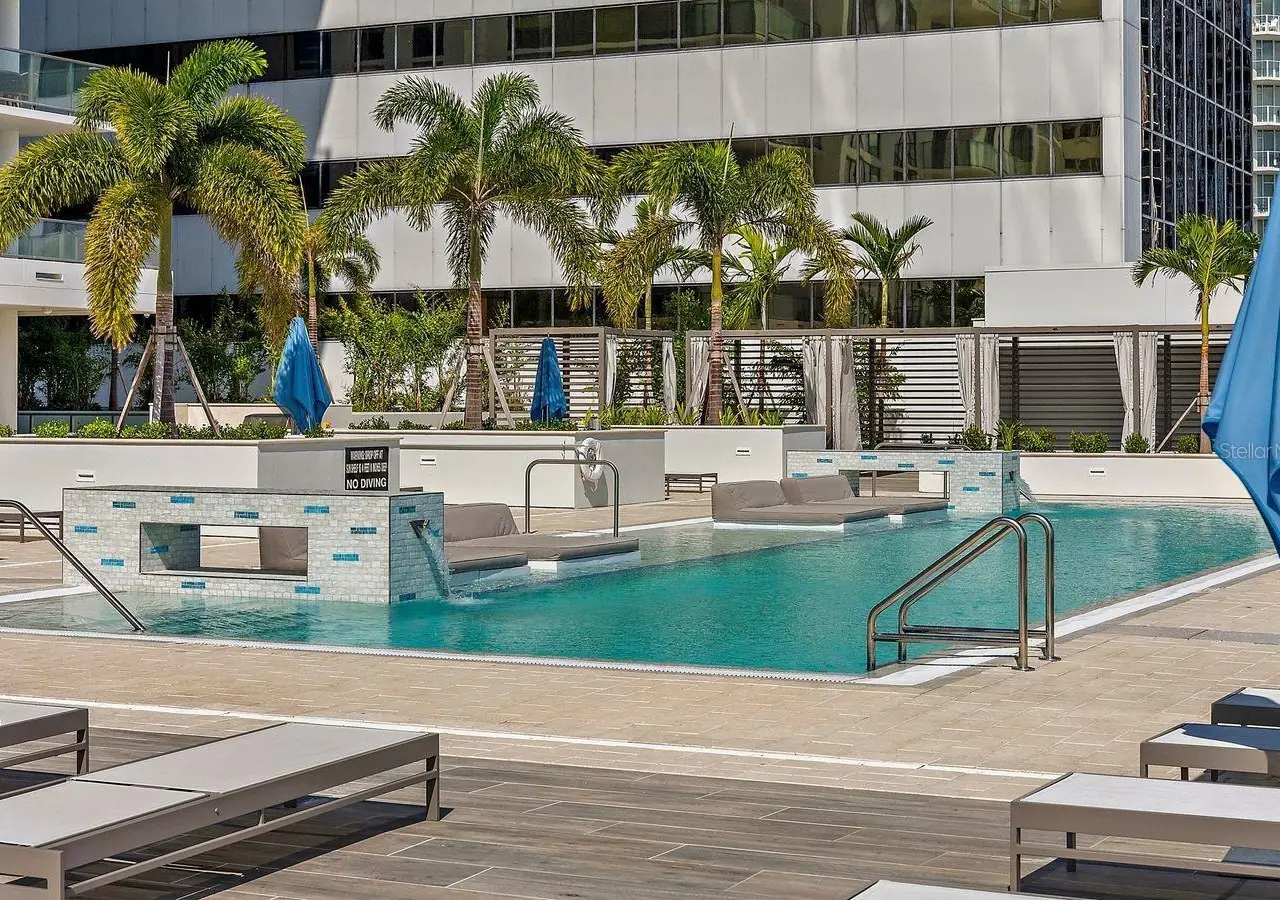 Step into a world of unparalleled luxury and refined design in this newly constructed two-bedroom plus den, two-and-a-half-bath condo at Saltaire. Offering an impressive 1,663 square feet of interior space and a nearly 200-square-foot balcony, this home is the perfect blend of elegance and modern sophistication. With sweeping south-facing views that span from Tampa Bay to the east and the Gulf to the west, you'll enjoy breathtaking vistas from sunrise to sunset. Curated by the acclaimed local design team at Bee Studio Design, this residence features custom finishes and the finest attention to detail. The gourmet kitchen is a chef's dream, complete with top-of-the-line appliances, sleek countertops, a custom backsplash, and a wine fridge paired with a stylish bar area for the ultimate entertaining experience. The designer lighting throughout the home enhances every space, casting a warm glow that complements the chic modern aesthetic. The spacious, airy layout flows seamlessly into the living and dining areas, perfect for both relaxation and entertaining. The versatile den offers endless possibilities, from a home office to a cozy reading nook or media room. Each of the spacious bedrooms is a private retreat, complete with generous walk-in closets and luxurious ensuite baths featuring the highest-quality finishes. The master suite is a sanctuary, offering direct access to the expansive balcony and stunning views of the bay. The convenient laundry room is designed for added practicality, making day-to-day living a breeze. This exceptional condo also includes two highly sought-after parking spaces and a climate-controlled storage unit for added convenience and peace of mind. Saltaire's resort-style amenities are second to none. Residents enjoy a stunning seventh-floor pool terrace with panoramic views, a state-of-the-art fitness center, elegant club rooms, and a dog park for your furry companions. With the added security and peace of mind of a builder's warranty, this home offers everything you need to live in absolute comfort and style. Perfectly situated in the heart of downtown St. Petersburg, you'll have immediate access to waterfront parks, upscale dining, high-end shopping, and the vibrant energy of city life. This is the elevated downtown lifestyle you've been waiting for!