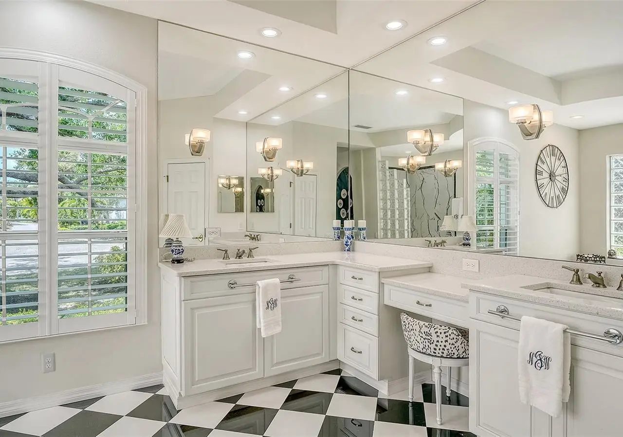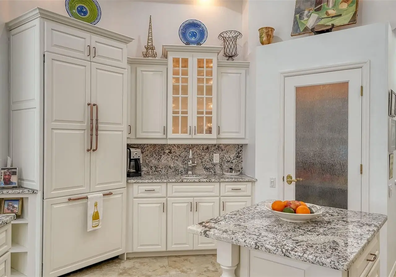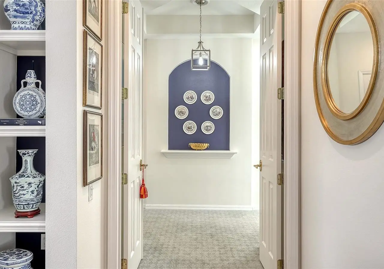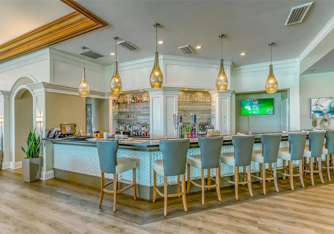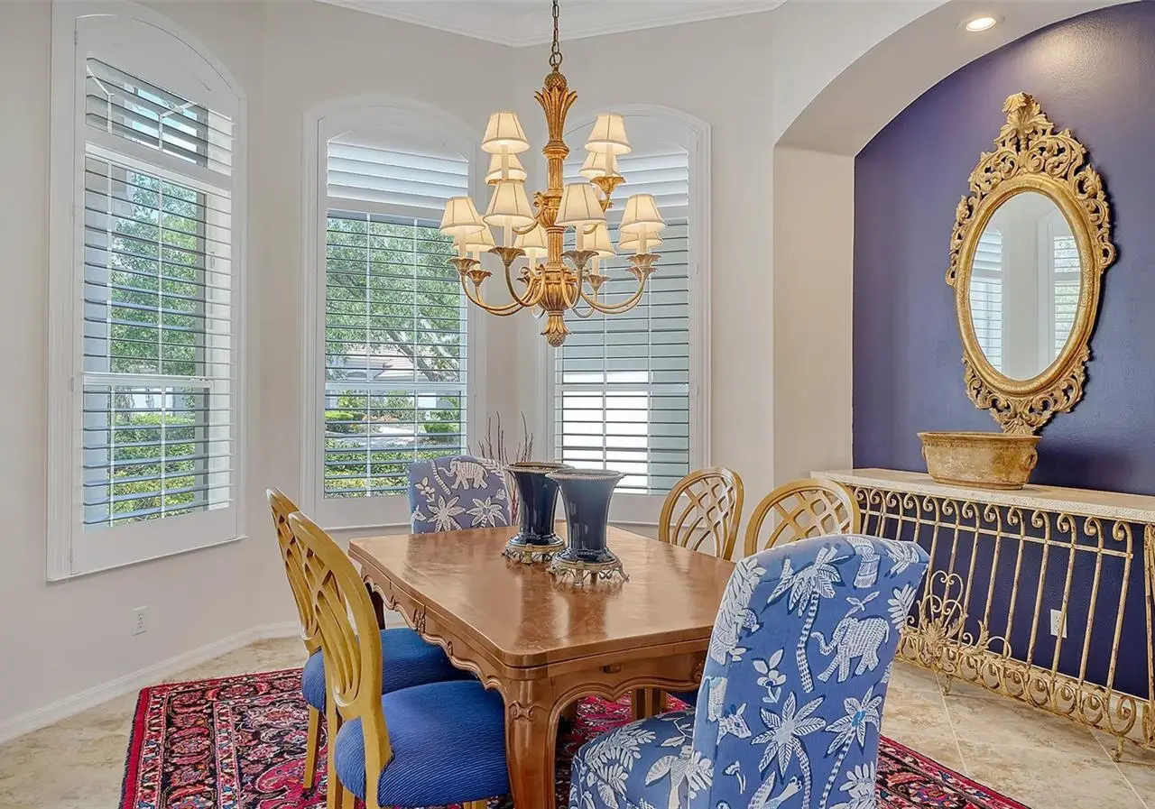 Hyde Park, an enclave of only 12 homes inside the gates of University Park Country Club, sets itself apart for the larger homesites where home sizes vary from 3,000-5,600 sq feet. This home sits on a serene HALF-ACRE and on the water. Slow down and enjoy the drive and lush landscaping throughout the community and arrive in this scenic and charming neighborhood. This home is graced with a beautiful entry of leaded glass doors and custom details throughout. A classic floorplan with an open family room/kitchen that has been updated with timeless finishes. Side entry garage, paver driveway and paved walkway to the entry. (TILE ROOF REPLACED: 2015). Foyer opens to the living and dining room and this home is saturated in natural light with tall windows and sliding glass doors to the pool area. Flooring is 18-inch diagonal tile; soaring ceilings and crown moldings. A feature that sets this welcoming home apart is a floor-to-ceiling striking wall of bookcases enhanced by accent lighting. Fully equipped and well-appointed kitchen; a wet bar and a walk-in pantry. A charming breakfast nook overlooks the pool with an aquarium glass window. Split bedroom plan includes a spacious primary suite with two custom closets, a stunning renovated bathroom with dual granite vanities, walk-in shower, marble flooring, and a private water closet. Two additional bedrooms plus a versatile fourth bedroom with direct pool access can serve as an office, study or additional living space. The backyard and pool area features an expansive paver lanai, two covered seating areas and room for an outdoor kitchen (natural gas hook-up). The pool overlooks the water and the natural beauty surrounding this home is simply relaxing. Residents of University Park Country Club have access to 27 holes of championship golf, tennis and pickleball courts, state-of-the-art fitness center, walking trails, and a wide variety of social activities, all within a secure, gated community. Located just minutes from downtown Sarasota, UTC Mall, world-class shopping, dining, beaches, and SRQ International Airport, this home offers the ultimate lifestyle in one of Sarasota's most desirable communities.