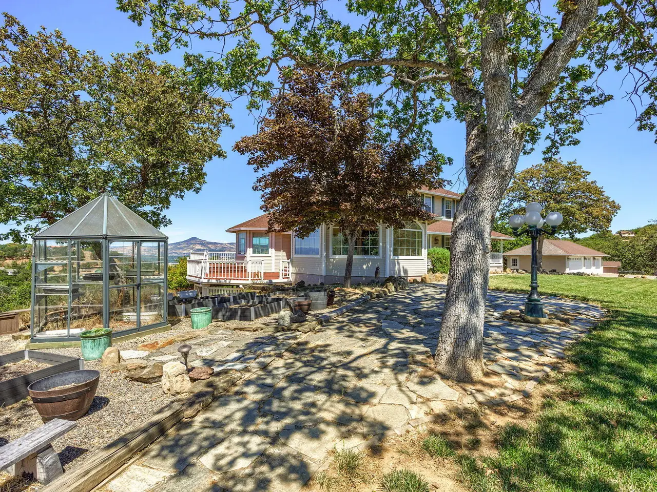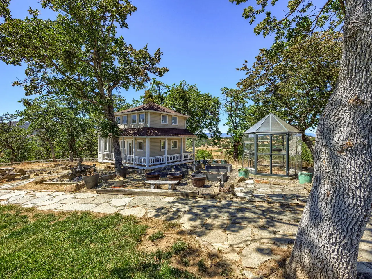 Southern Oregon Dream Ranch! Barn/shop, Playhouse and detached office with loft space, slider and 4-car garage. The home sits up on a knoll that has amazing views of the Rogue Valley, and tons of windows to take in the views. Large sunroom, library with a wood stove and built-ins, wood floors. Kitchen with Cherrywood cabinet with pull outs, slate floor convection oven, 4 door refrigerator, dual fuel oven. Master on the main level, walk-in closet, large shower, sauna, double sinks, French doors to a covered deck. Large family room upstairs with 2 bedrooms and full bathroom with a claw foot tub tile floor and 1/2 bath. Large laundry room with laundry chute and storage. Downstairs would make a great work out room or office with lots of windows and door to outside. Gated entry.