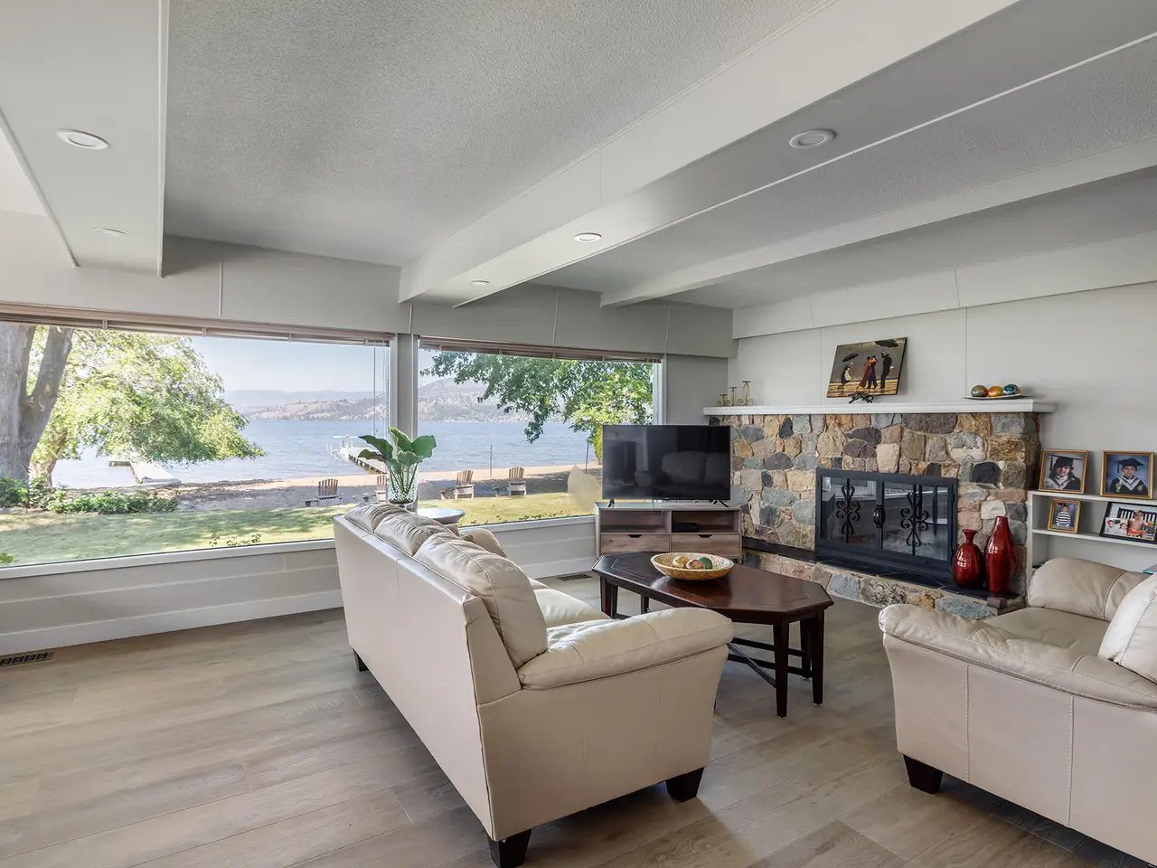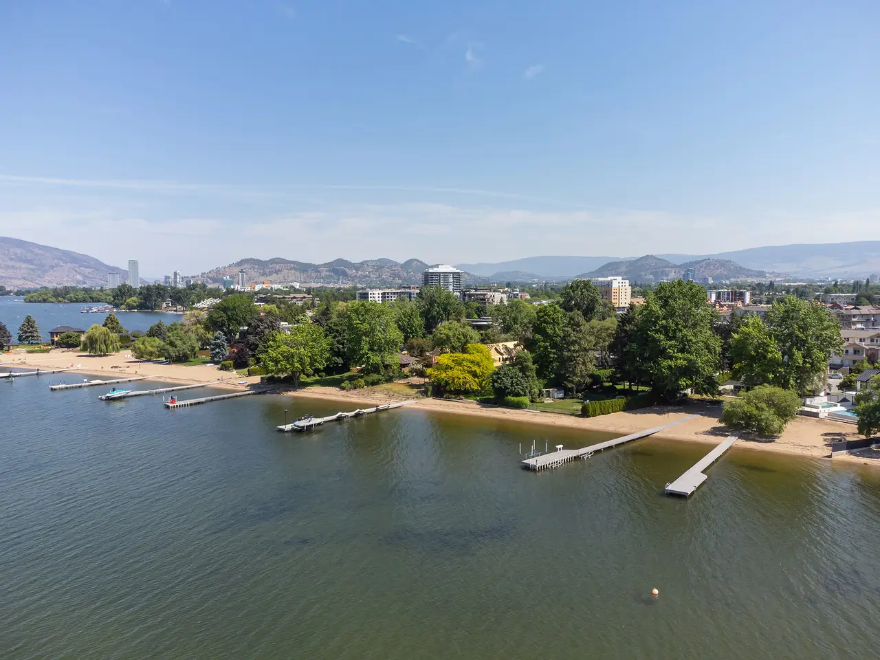 Listed by Unison Jane Hoffman Realty | Prime lakeshore living in Kelowna’s Lower Mission. A rare offering of level lakeshore with spectacular “Hawaiian” golden sand in one of Kelowna’s most coveted neighborhoods. Set on 0.46 acres, this gated estate captures breathtaking lake, mountain, and city views with coveted southwest exposure. Designed for effortless indoor-outdoor living, the generous lakeside patio with a fireplace is perfect for evening entertaining. The spacious living and dining rooms showcase uninterrupted lake views, while a cozy family room offers serene garden vistas. The main level features a luxurious primary bed with ensuite, complemented by 4 additional bedrooms upstairs, ideal for hosting family and friends. Enjoy the best of Okanagan living with a dock featuring composite decking and a boat lift, a 768 sq. ft. detached garage, and RV parking. Mature landscaping, lush gardens, and a private, fenced setting create a true oasis just steps from the vibrant Pandosy Village. An unparalleled opportunity to live the ultimate beach house lifestyle, walkable to shops, dining, schools, and amenities.