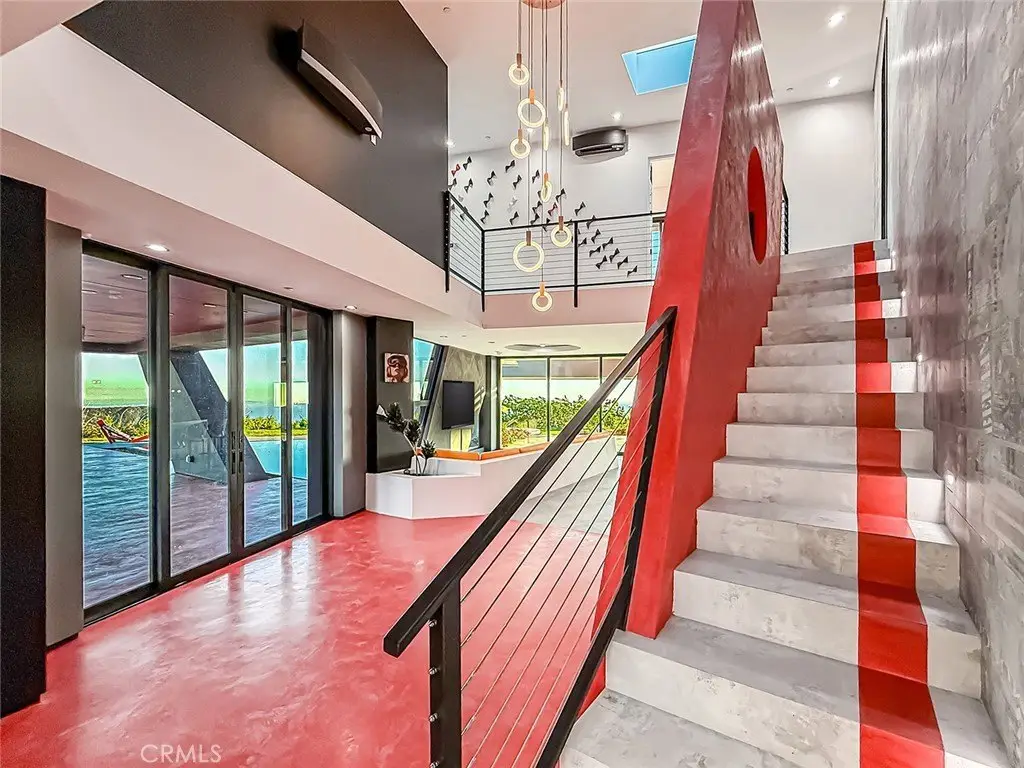 Soaring jetliners & sweeping views spanning Catalina to Santa Monica set the stage at The Aviator—a striking, architecturally significant Malibu escape by renowned designer Amit Apel. Perched at the end of a private road at the top of the world, this bold, modern sanctuary draws inspiration from the grace and precision of flight. A sculptural interplay of steel, crisp architectural lines, and signature circular windows create a sense of movement and lift, giving the residence its unmistakable presence. This one-of-a-kind retreat is equipped with a state-of-the-art Smart Home system that controls lighting, security, pool, and solar system—all automated & effortlessly accessible. Through the glass entry, the home unfolds into a dramatic open-concept living space defined by custom art, rich textures, & dynamic architectural forms. Floor-to-ceiling retractable walls vanish to frame endless ocean, canyon, and skyline views, blurring the line between indoors & out. The sleek European-inspired kitchen features premium stainless steel appliances, a six-burner gas cooktop & spacious center island with a breakfast bar with custom seating. A warm yet sophisticated ambiance flows seamlessly into the dining and family areas, where bold style and comfort unite. The main level also includes a bedroom with a circular window. Ascending the stairs, 2 luxurious primary suites await. The first boasts sweeping ocean & Malibu city vistas and an Art Deco–inspired bath with stunning glass-enclosed shower, soaking tub, dual sinks, & mountain views. The second primary suite mirrors the home’s refined design language, showcasing bold lines and vibrant accents, with panoramic views of Santa Monica and the Pacific. Its spa-like bath offers a deep soaking tub, dual sinks, and custom shower. A third “hidden” room serves perfectly as an office, lounge, or creative studio. The outdoor living spaces are a world unto themselves. A dramatic triangular zero-edge pool and spa appear to float above the horizon. The fully outfitted outdoor kitchen—complete with BBQ, grill, refrigerator & pizza oven—invites unforgettable alfresco dining. Additional highlights include a private putting green, oversized fire pit with flame wall, and an open-air movie screening area for evenings under the stars. Designed for both spectacular entertaining and self-sustaining independence, The Aviator offers the rare ability to live comfortably “off the grid.” This is more than a home—it is a statement of vision.