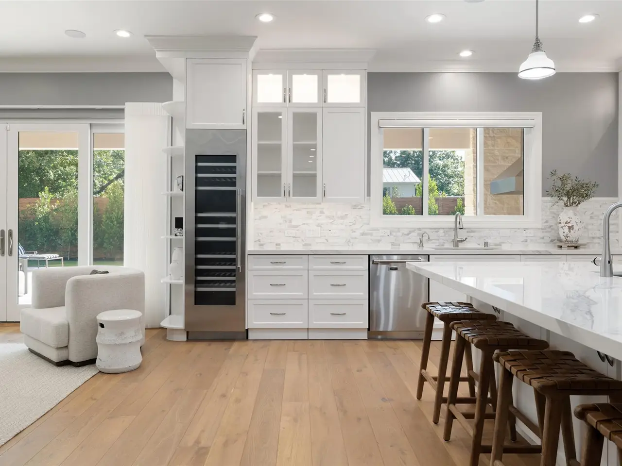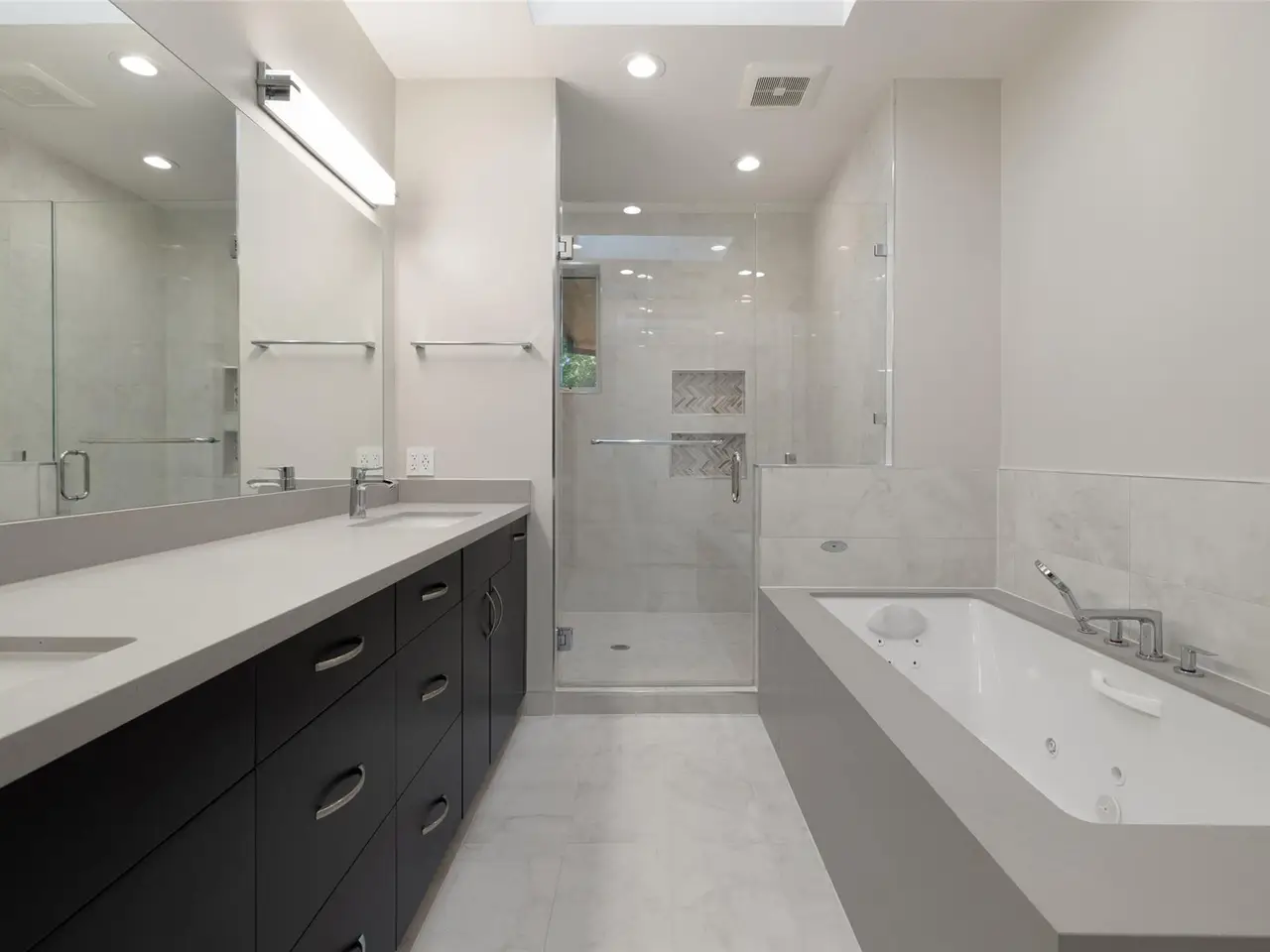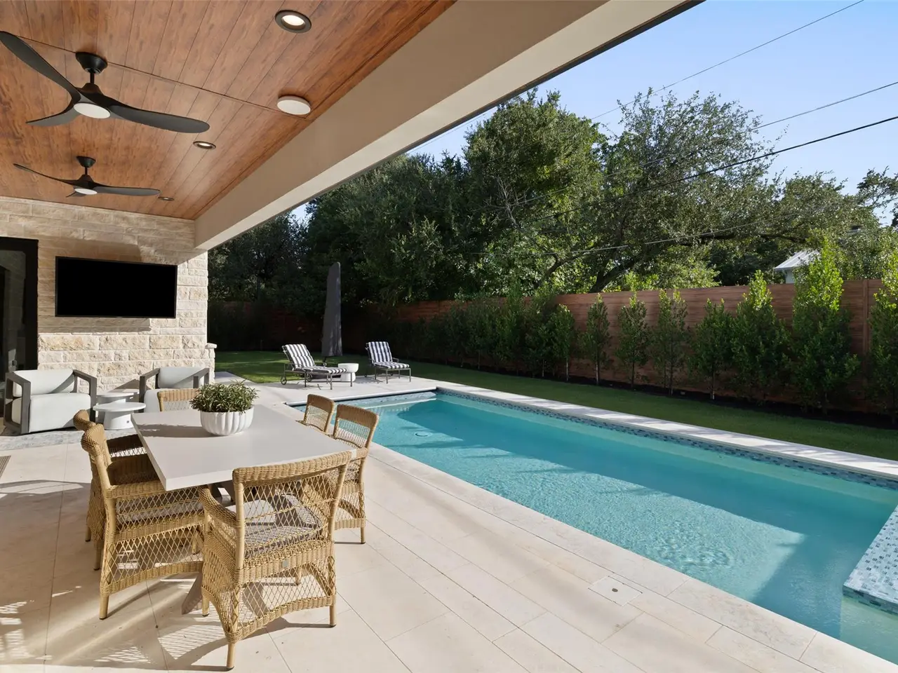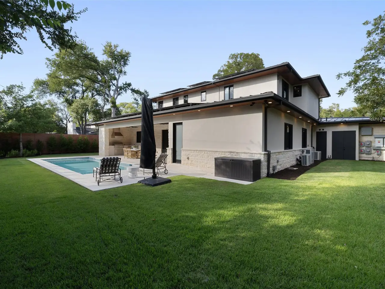 Welcome to 4107 N Hills Drive, a rare find in Northwest Hills. The front facade blends natural materials w/ Hill Country contemporary design, instantly setting it apart & contributing to the neighborhood's evolving character. Thoughtfully designed & completed in 2024 as the owners' forever home, this true custom build pairs timeless craftsmanship w/ modern design & smart technology. With the future in mind, the home is equipped w/ solar panels, multiple EV chargers, & audio visual, lighting, & security--all from your phone or tablet. The open-concept layout features 3 living areas & 2 dedicated offices, creating flexibility for work, play, & entertaining. At the heart of the home, the chef's kitchen showcases an oversized island, Thermador appliances, a 24-bottle wine column, & details like an appliance garage & hidden mixer cabinet. Floor-to-ceiling windows & sliding glass doors in the living room flood the space w/ natural light & connect to the outdoors. Downstairs offers 2 bedrooms, a private office, & open gathering areas anchored by a striking glass-lined staircase. Upstairs, the primary suite is a true retreat w/ dual custom closets & a spa-inspired bath featuring a soaking tub & oversized shower. 2 additional ensuite bedrooms, a teen lounge, & 2nd office complete the upstairs. The backyard is designed as a private oasis w/ a covered porch, outdoor kitchen, sparkling pool, & hot tub. A 3 car air-conditioned garage w/ epoxy floors, custom storage, & multiple EV chargers adds convenience. Solar panels, Tesla Powerwalls, & a full smart-home system enhance efficiency & security. Located in the coveted Northwest Hills neighborhood & walking distance to Doss Elementary & Murchison Middle School, & just minutes from Anderson High. Everyday conveniences, shopping, & dining are nearby, w/ Mopac providing quick access to both Downtown & The Domain. A rare blend of location, lifestyle, and design, 4107 N Hills Drive is truly one of Northwest Hills' finest.