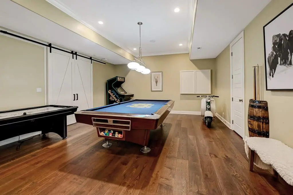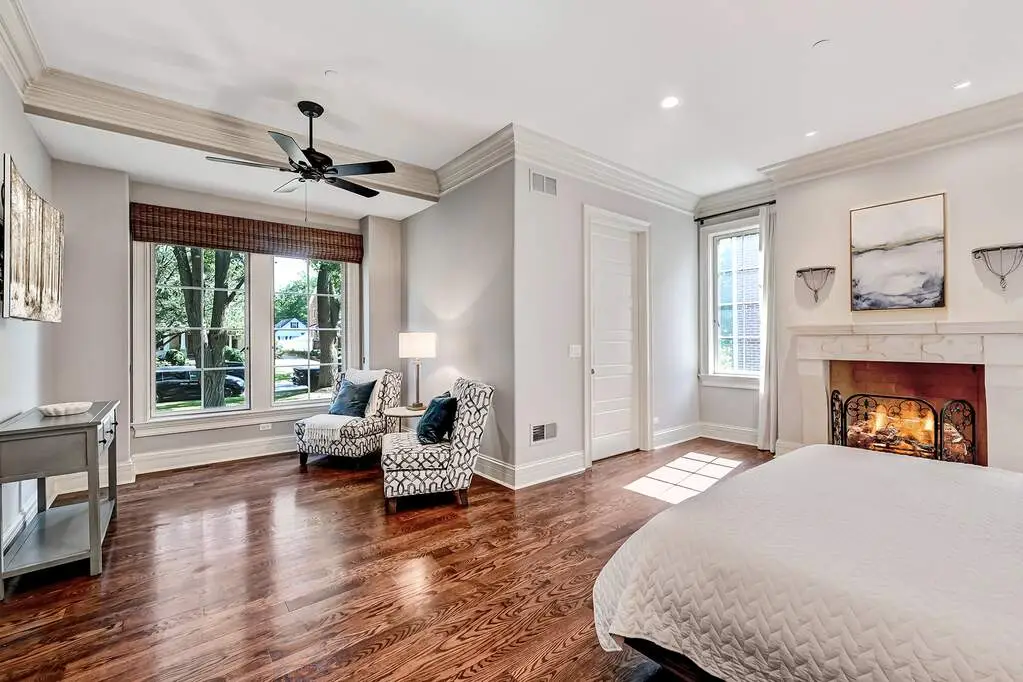 Exuding timeless elegance and masterful craftsmanship, this custom-built home stands proudly on a rare 120-by-187-foot lot in the prestigious Forest Hills neighborhood of Western Springs. Every detail of this 7,798-square-foot home reflects the artistry and precision of bespoke construction-offering a level of quality and character rarely achievable today. Thoughtfully designed for comfortable everyday living and grand-scale entertaining, it blends classic architectural form with sophisticated modern luxury. A dramatic two-story foyer introduces light-filled interiors with soaring ceilings, intricate millwork, and architectural symmetry showcasing the home's custom pedigree. The expansive family room features coffered ceilings, a limestone fireplace, and walls of windows overlooking professionally curated grounds. A seamless transition leads to the formal dining room with French doors opening to a bluestone terrace-perfect for indoor-outdoor gatherings. The designer kitchen is a true statement in craftsmanship and function. Anchored by a reclaimed-brick fireplace, it features an oversized island with honed stone countertops, Wolf range, double ovens, artisan tile backsplash, and handcrafted cabinetry-details that reflect the bespoke nature of this residence. A vaulted breakfast room offers the perfect place for family dinners by the stone fireplace. A private office framed by French doors, and a first-floor bedroom suite with a fireplace, a walk-in closet with laundry, and a full bath complete the main level. Upstairs, the grand primary suite is a peaceful retreat featuring a private balcony, two walk-in closets, a spa bathroom with heated floors, dual vanities, a freestanding soaking tub, and a glass-enclosed shower. Three additional bedroom suites, each beautifully designed, share access to a versatile flex space with a winding staircase that leads to a whimsical upper-level retreat, ideal for reading, playing, or creative activities. The primary laundry room is also located here. The finished lower level is an entertainer's dream. It features a full sports court, a stone fireplace, a large family and gaming area, a large bedroom with a full bath, and plenty of storage, including a wine room. Outdoors, resort-style living unfolds across a custom stone patio with covered outdoor kitchen, gas fire pit, and lush, irrigated landscaping. An attached one-car garage with mobility lift complements the heated detached three-car garage with upper-level flex space. Meticulously maintained, this home integrates 400-amp service, dual-zoned HVAC, a whole-house generator, sprinkler, and security systems. This is a once-in-a-lifetime opportunity to own a curated, timeless home in a true walk-to-town, train, and school location.