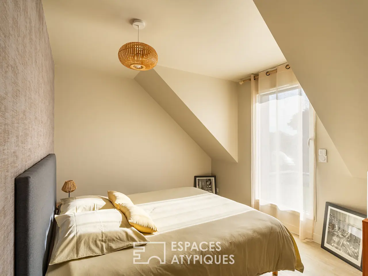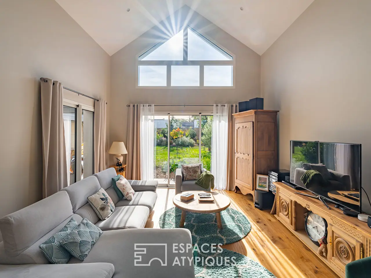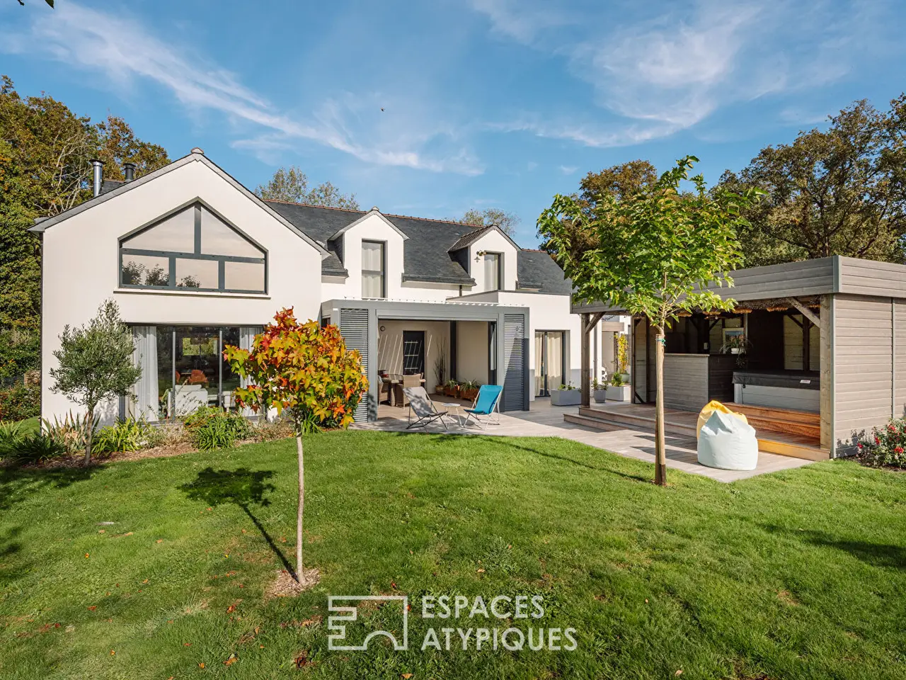 EXCLUSIVE TO ESPACES ATYPIQUES: Discover this magnificent, fully renovated contemporary home of approximately 160m², situated in a peaceful setting in Saint-Armel on the shores of the Gulf of Morbihan, close to coastal paths and the town center. Just 15 minutes from Vannes and 10 minutes from Sarzeau, this property combines modern comfort with proximity to shops. From the moment you enter, you will be captivated by the natural light that floods this living space. The ground floor comprises a spacious entrance hall, a fitted and equipped kitchen, and a large living/dining room with a cathedral ceiling, ideal for entertaining family and friends. A master suite completes this level for single-level living. Upstairs, you will find two bedrooms, a bathroom with shower and bathtub, as well as a mezzanine overlooking the living room, bringing a warm atmosphere to this house. Outside, this property offers a bioclimatic pergola, perfect for enjoying the soft light in the evening. The landscaped and wooded garden is a true haven of peace, including a summer kitchen and a jacuzzi area for moments of privileged relaxation. A garage accessible from the pantry, outbuildings, and a greenhouse complete this property. An ideal place to combine comfort, serenity, and convenience. ENERGY RATING: A / CLIMATE RATING: A Estimated average annual energy costs for standard use: €364 for 2019. Information on the risks to which this property is exposed is available on the Georisques website: www.georisques.gouv.fr. Denise Muteau RSAC Vannes 503 556 045 Contact: +33 6 12 71 52 43 REF. 561EAM Additional Information* 6 rooms* 3 bedrooms* Floor: 1* Land area: 890 m2* Property tax: €1,247 Energy Performance Certificates EPC: 343 kWhEP/m2.year* A 450 GHG: 19 kg eqCO2/m2.year* A 80 Agency Fees Fees are inclusive of VAT and payable by the seller Mediator Franchise-Consumer Mediation www.mediation-franchise.com 29 Boulevard de Courcelles 75008 Paris Information on the risks to which this property is exposed is available on the Georisques website: www.georisques.gouv.fr