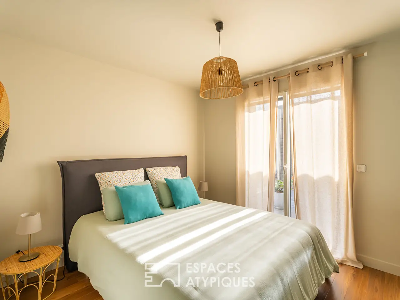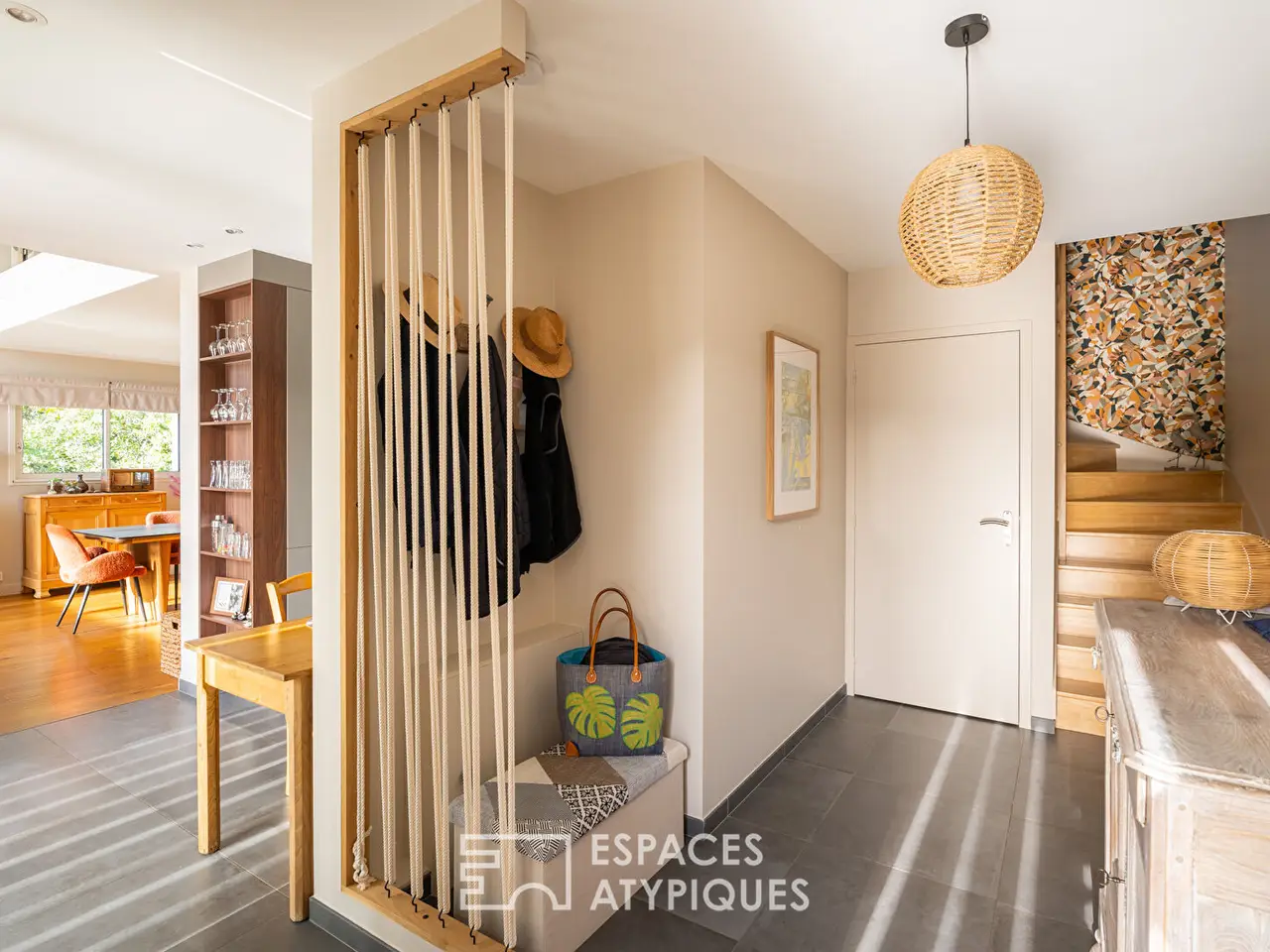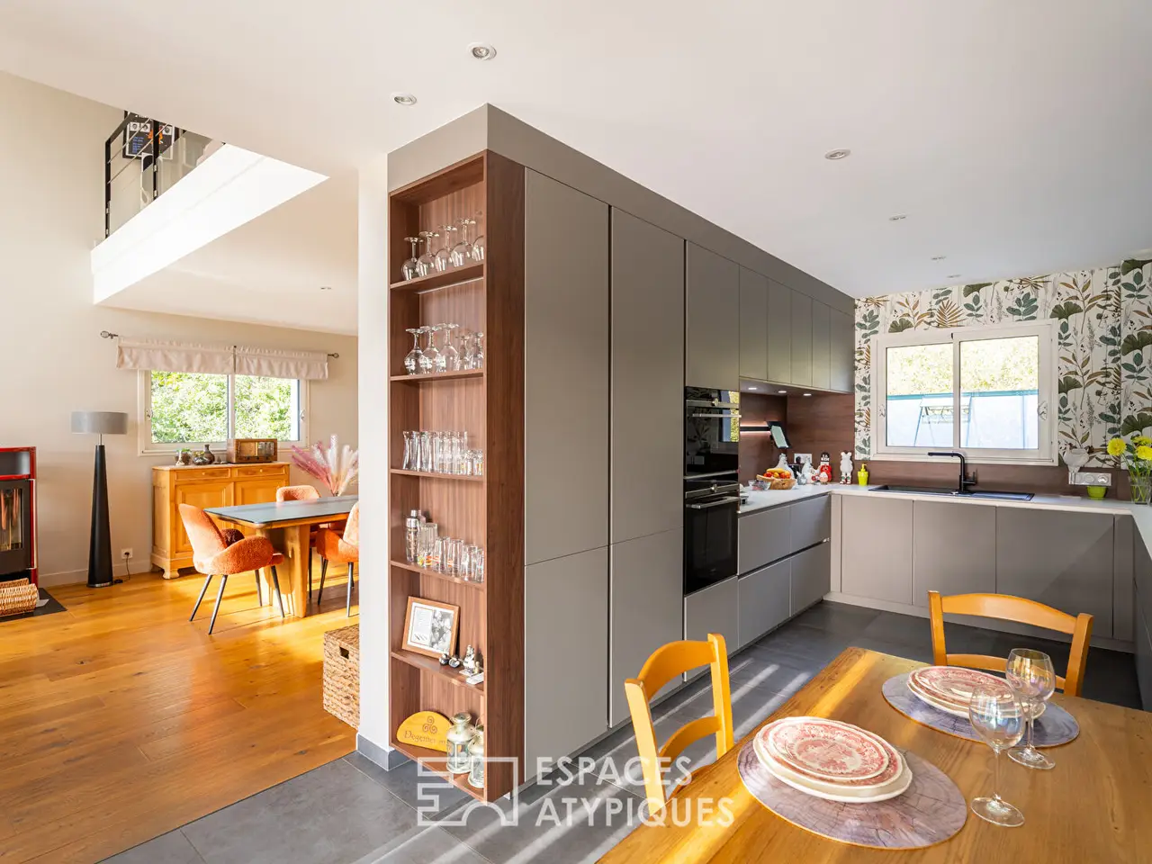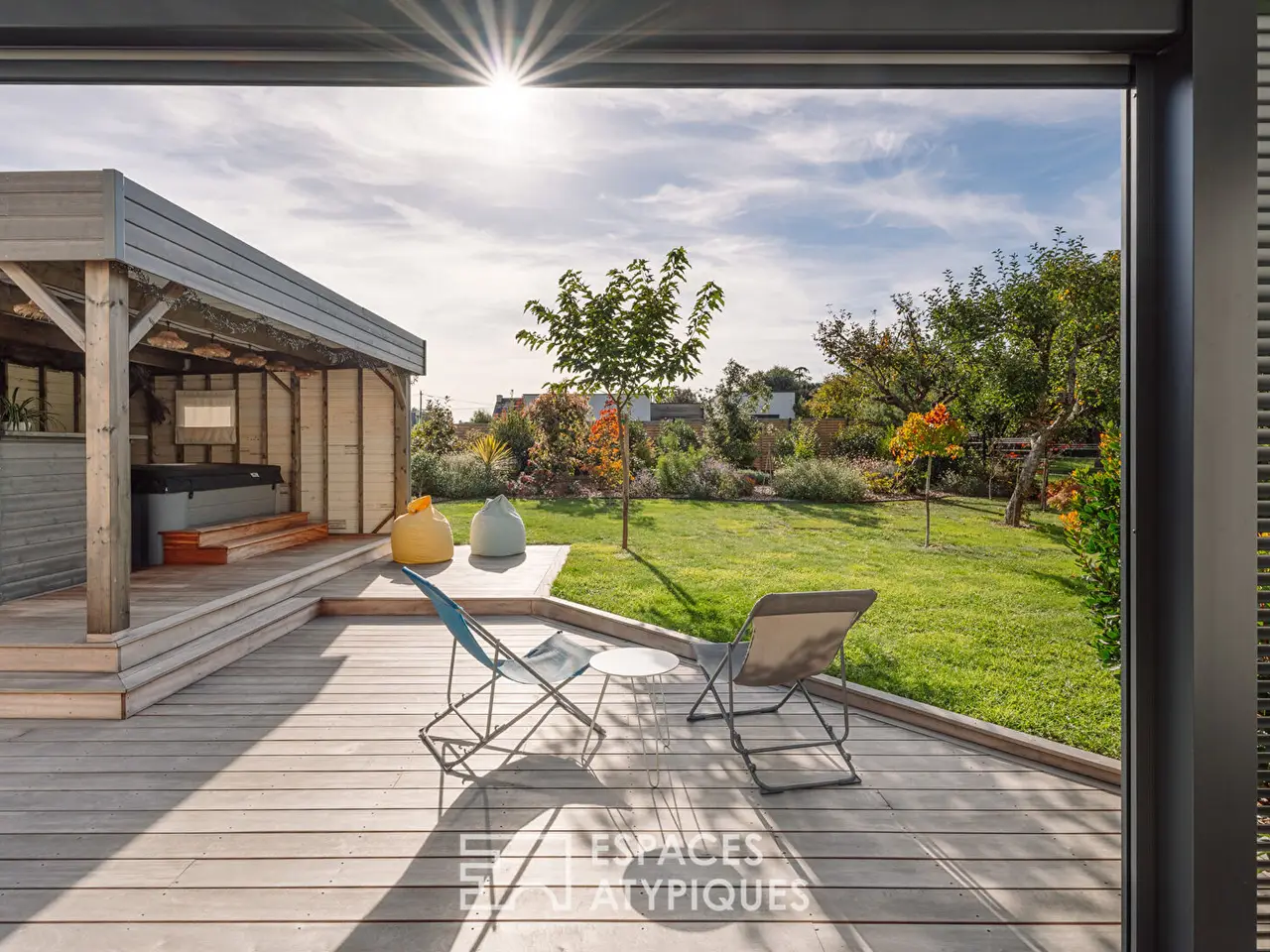 EXCLUSIVE TO ESPACES ATYPIQUES: Discover this magnificent, fully renovated contemporary home of approximately 160m², situated in a peaceful setting in Saint-Armel on the shores of the Gulf of Morbihan, close to coastal paths and the town center. Just 15 minutes from Vannes and 10 minutes from Sarzeau, this property combines modern comfort with proximity to shops. From the moment you enter, you will be captivated by the natural light that floods this living space. The ground floor comprises a spacious entrance hall, a fitted and equipped kitchen, and a large living/dining room with a cathedral ceiling, ideal for entertaining family and friends. A master suite completes this level for single-level living. Upstairs, you will find two bedrooms, a bathroom with shower and bathtub, as well as a mezzanine overlooking the living room, bringing a warm atmosphere to this house. Outside, this property offers a bioclimatic pergola, perfect for enjoying the soft light in the evening. The landscaped and wooded garden is a true haven of peace, including a summer kitchen and a jacuzzi area for moments of privileged relaxation. A garage accessible from the pantry, outbuildings, and a greenhouse complete this property. An ideal place to combine comfort, serenity, and convenience. ENERGY RATING: A / CLIMATE RATING: A Estimated average annual energy costs for standard use: €364 for 2019. Information on the risks to which this property is exposed is available on the Georisques website: www.georisques.gouv.fr. Denise Muteau RSAC Vannes 503 556 045 Contact: +33 6 12 71 52 43 REF. 561EAM Additional Information* 6 rooms* 3 bedrooms* Floor: 1* Land area: 890 m2* Property tax: €1,247 Energy Performance Certificates EPC: 343 kWhEP/m2.year* A 450 GHG: 19 kg eqCO2/m2.year* A 80 Agency Fees Fees are inclusive of VAT and payable by the seller Mediator Franchise-Consumer Mediation www.mediation-franchise.com 29 Boulevard de Courcelles 75008 Paris Information on the risks to which this property is exposed is available on the Georisques website: www.georisques.gouv.fr