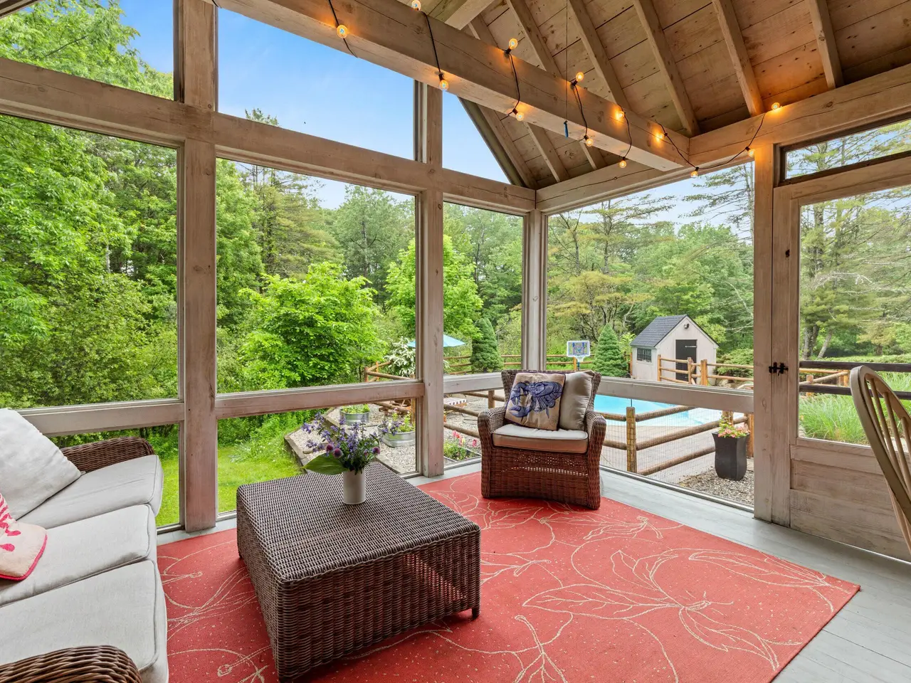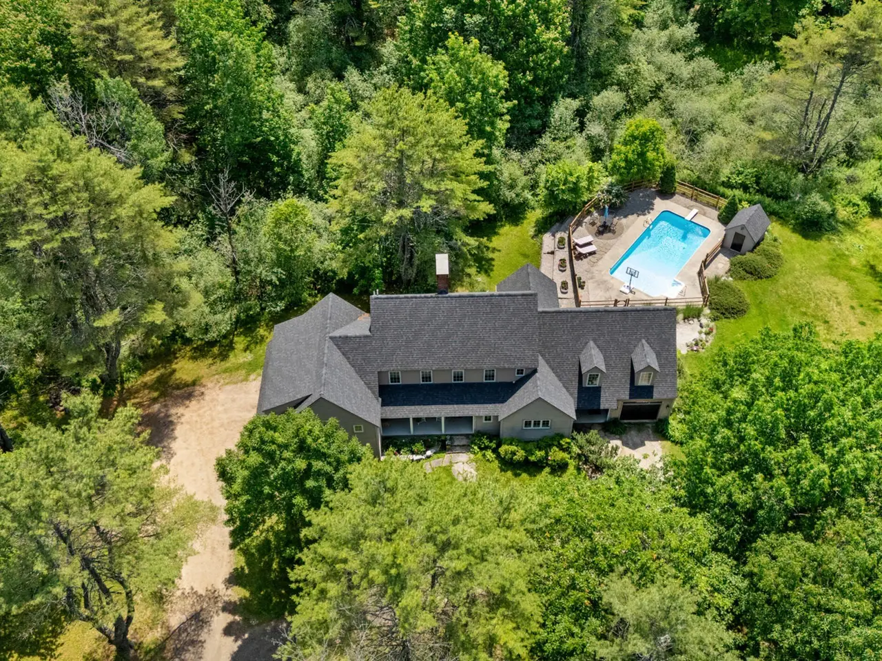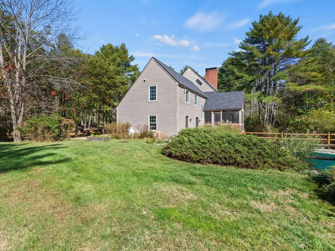 Nestled on 9.21 acres of wooded land, this beautiful property offers the perfect blend of privacy, comfort, and convenience - just a few minutes drive to Yarmouth Village and steps to Pratt's Brook Park, with its 220 acres and six miles of walking and cross-country skiing trails. A winding 600-foot driveway leads you from Ledge Road to a meticulously maintained farmhouse, architecturally designed and built in 2000. Encompassing over 3,800 square feet across three levels, this home provides generous living spaces and indoor parking for three vehicles. The first floor welcomes you with a relaxed, open-concept layout featuring a large kitchen with a center island and walk-in pantry, adjoining a spacious dining area and cozy family room with a wood stove. Just beyond, a screened three-season porch overlooks the backyard and the heated, in-ground pool-perfect for entertaining or quiet summer evenings. A separate living room with a wood-burning fireplace, mudroom entry, and half bath complete the main level. Upstairs, you'll find four spacious bedrooms, including a serene primary suite with a walk-in closet, renovated master bath, and a private adjoining office. Two additional fully updated bathrooms serve the other bedrooms, offering comfort and modern convenience for family or guests. The lower level consists of 550 square feet of finished gym/playroom and a full, separate workshop. The home also includes a central air conditioning system. An adjacent 3.12-acre parcel is also available for purchase at a reduced rate to the buyer of this property, providing the opportunity to expand or develop one or two additional lots. Located in the desirable Ledge Road neighborhood, this home offers a rare combination of seclusion, natural beauty, and community, just minutes from Yarmouth's award-winning public schools and charming village amenities.