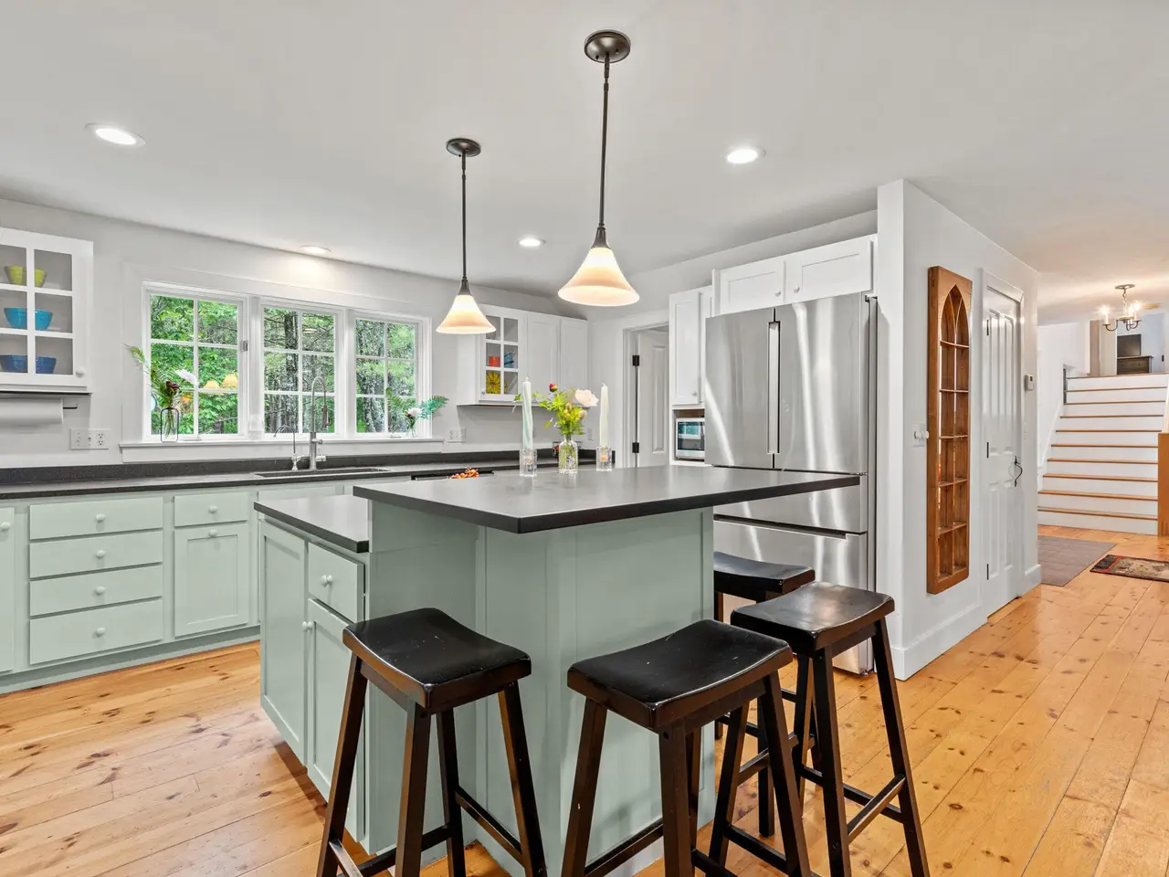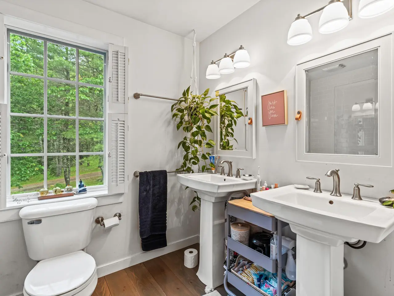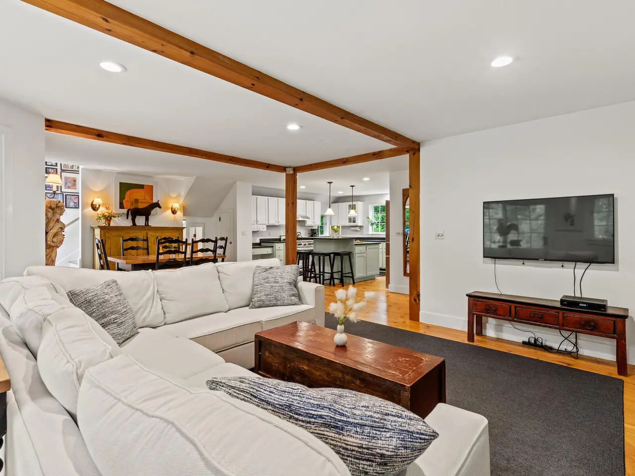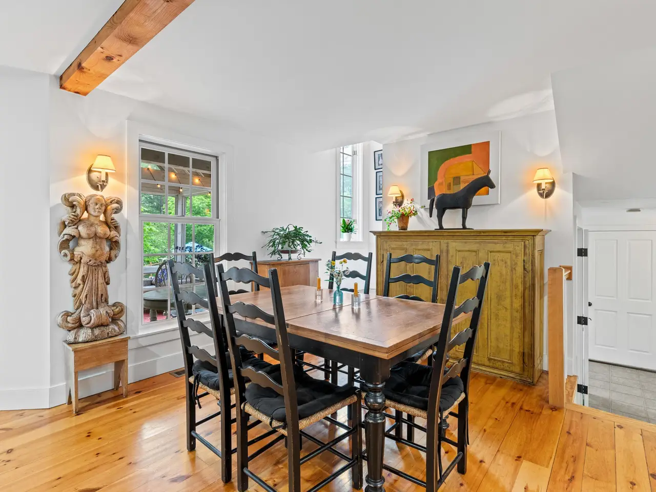 Nestled on 9.21 acres of wooded land, this beautiful property offers the perfect blend of privacy, comfort, and convenience - just a few minutes drive to Yarmouth Village and steps to Pratt's Brook Park, with its 220 acres and six miles of walking and cross-country skiing trails. A winding 600-foot driveway leads you from Ledge Road to a meticulously maintained farmhouse, architecturally designed and built in 2000. Encompassing over 3,800 square feet across three levels, this home provides generous living spaces and indoor parking for three vehicles. The first floor welcomes you with a relaxed, open-concept layout featuring a large kitchen with a center island and walk-in pantry, adjoining a spacious dining area and cozy family room with a wood stove. Just beyond, a screened three-season porch overlooks the backyard and the heated, in-ground pool-perfect for entertaining or quiet summer evenings. A separate living room with a wood-burning fireplace, mudroom entry, and half bath complete the main level. Upstairs, you'll find four spacious bedrooms, including a serene primary suite with a walk-in closet, renovated master bath, and a private adjoining office. Two additional fully updated bathrooms serve the other bedrooms, offering comfort and modern convenience for family or guests. The lower level consists of 550 square feet of finished gym/playroom and a full, separate workshop. The home also includes a central air conditioning system. An adjacent 3.12-acre parcel is also available for purchase at a reduced rate to the buyer of this property, providing the opportunity to expand or develop one or two additional lots. Located in the desirable Ledge Road neighborhood, this home offers a rare combination of seclusion, natural beauty, and community, just minutes from Yarmouth's award-winning public schools and charming village amenities.