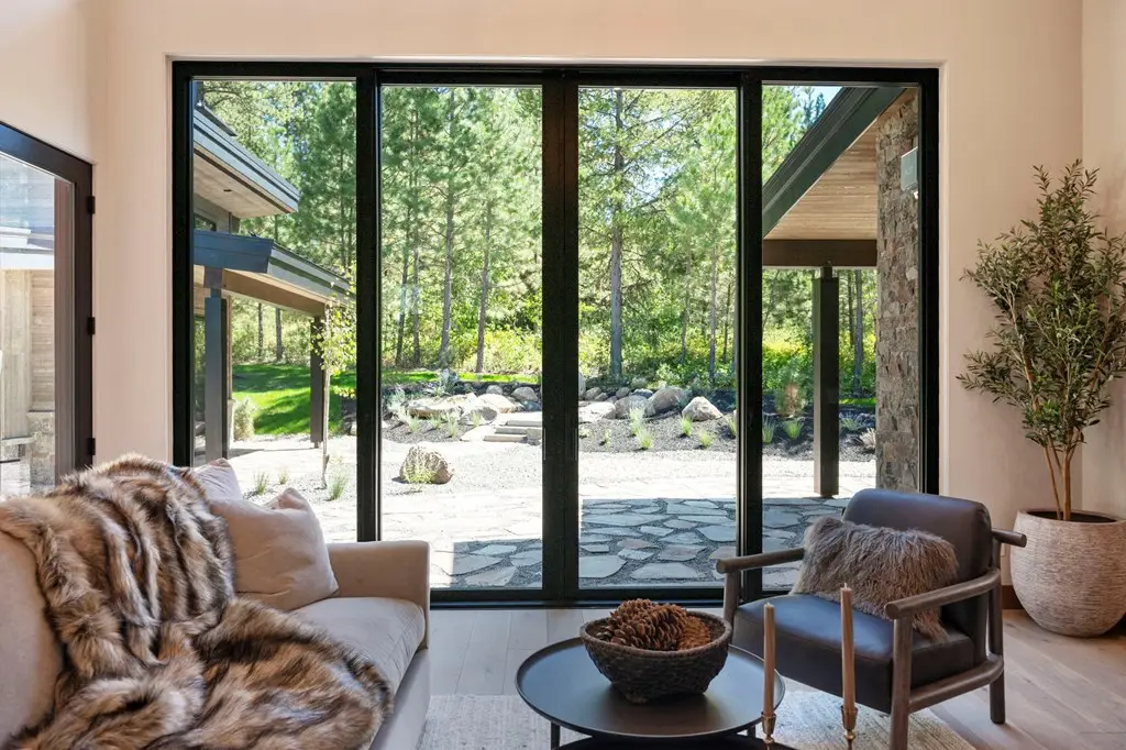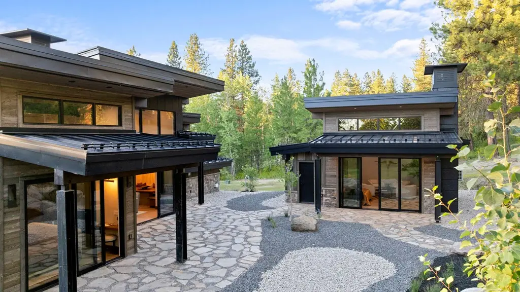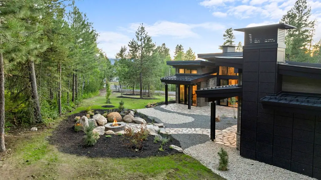 Discover the perfect blend of contemporary design and rustic elegance in this stunning three-bedroom, three-bath mountain modern retreat designed by J Truex and built by Mountain Elements. Set behind a private gated entrance on over four acres, this home offers privacy, sophistication, and every high-end detail you could dream of. The exterior showcases beautiful Montana Timber siding, welcoming you into a space defined by craftsmanship and comfort. Inside, custom rift white oak cabinetry, Monarch Plan European oak flooring, and natural soapstone countertops create a warm yet refined atmosphere. The chef’s kitchen flows seamlessly into open living spaces, highlighted by three propane fireplaces and one wood-burning fireplace for cozy evenings. A separate guest house offers flexibility for guests or multigenerational living, while the two-car garage provides ample storage for vehicles and outdoor gear. Step outside to a magical backyard, complete with a fire pit—perfect for enjoying Idaho's starlit nights. Furniture is thoughtfully included, making this truly a move-in-ready opportunity to embrace the mountain lifestyle in unmatched style.